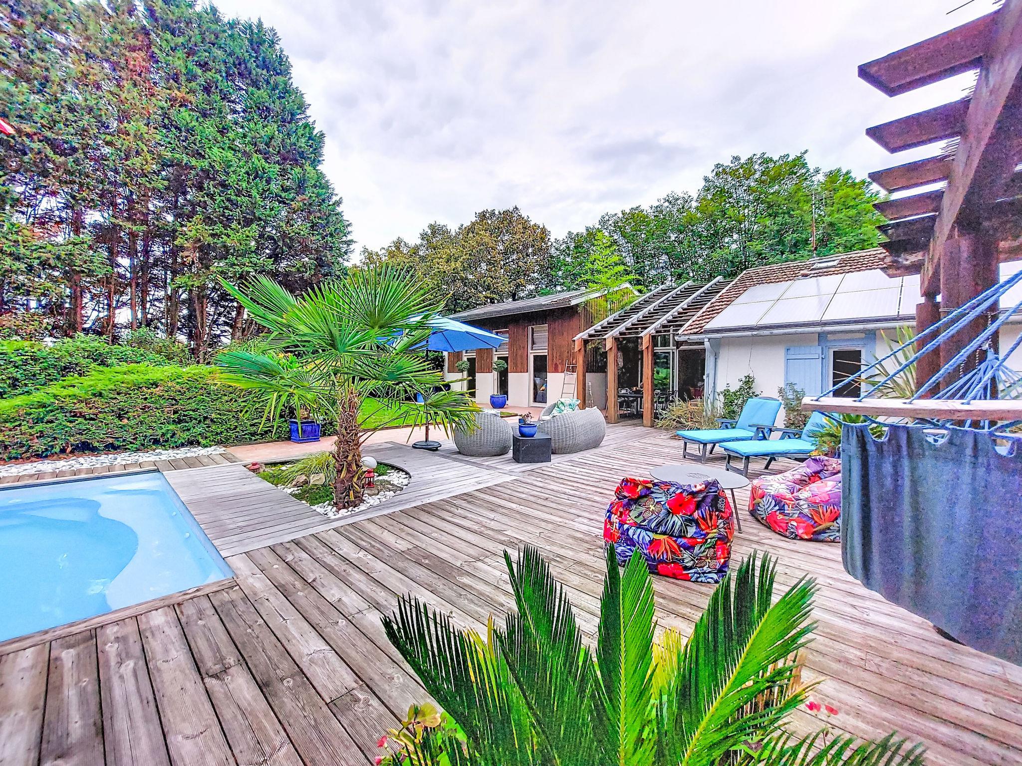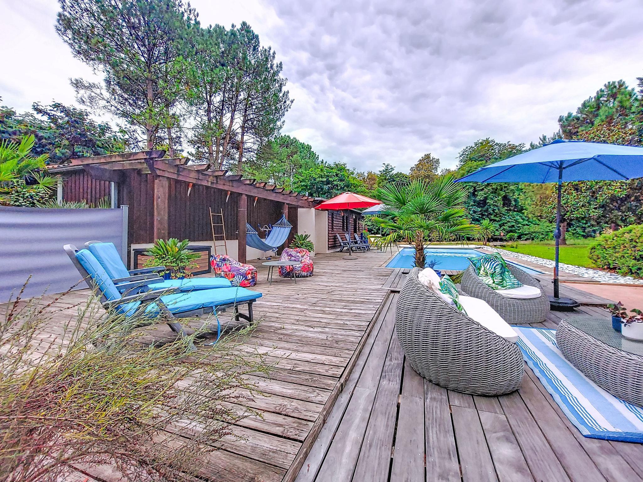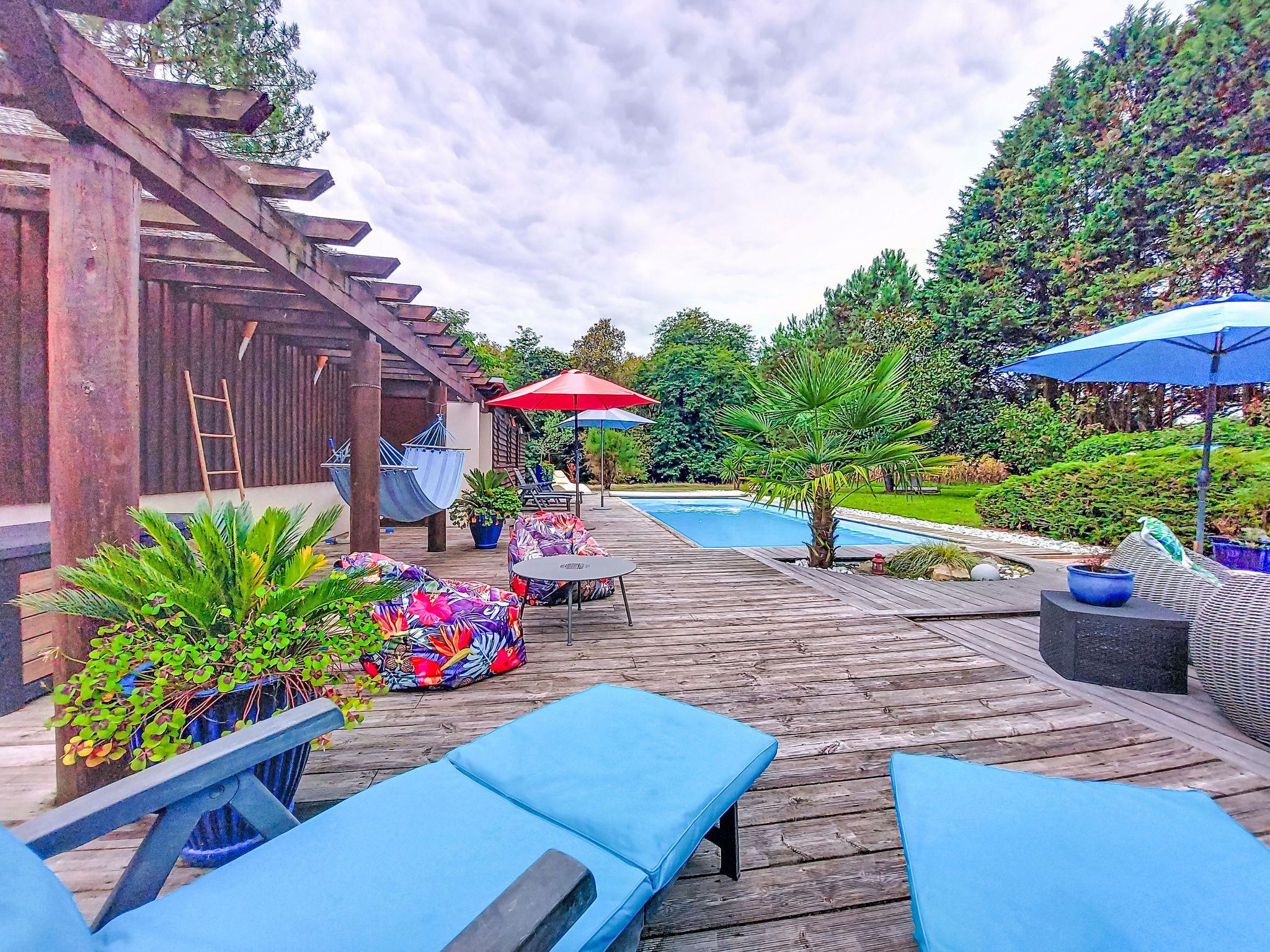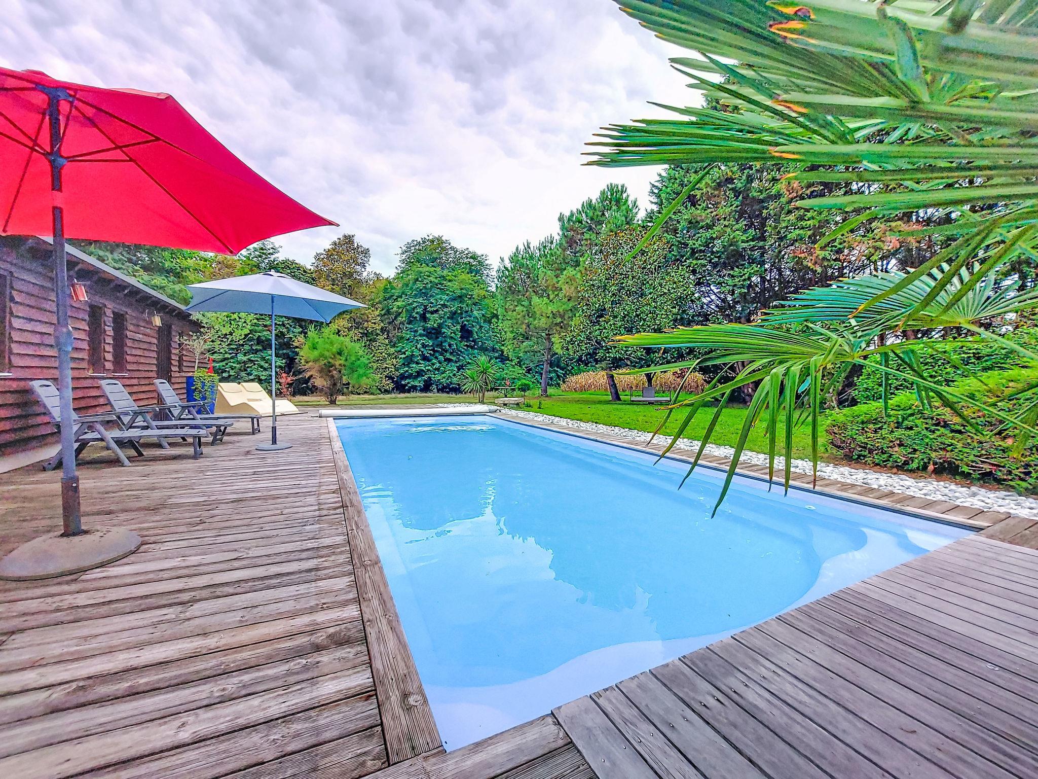 Beautiful single-family house "Le Préau", surrounded by trees and fields. In the hamlet Le Petit Then 2 km from the centre of Saint Vincent-de-Paul, 6 km from the centre of Saint Paul-les-Dax, 8 km from the centre of Dax, 38 km from the sea, 38 km from the beach. Private: natural state property 1'500 m2, swimming pool angular (10 x 4 m, depth 100 - 180 cm, seasonal availability: 28.Jun. - 31.Aug.) with alarm system and salt-electrolysis pool-cleaning system. Outdoor shower, terrace, garden furniture, parking (for 2 cars) at the house on the premises. Shop 1 km, grocery 2 km, supermarket 8 km, bus stop "St Vincent de Paul - Gordes" 500 m, sandy beach "Messanges / Vieux-Boucau" 40 km.