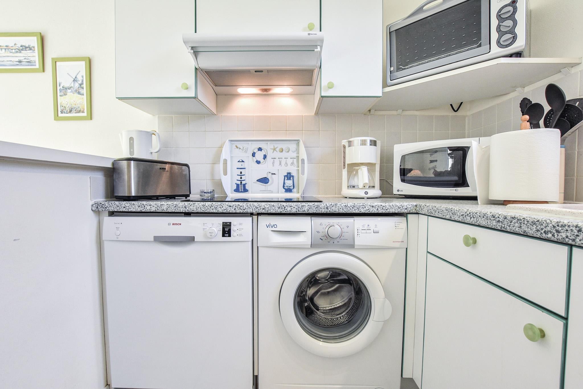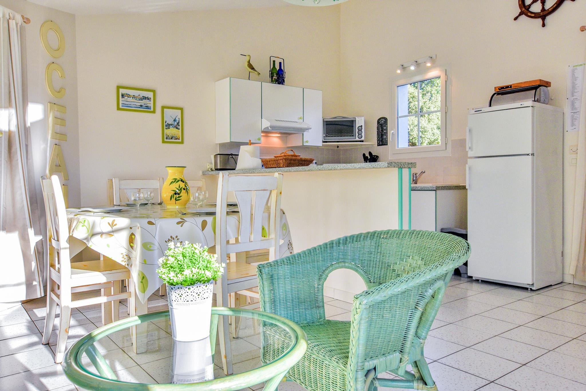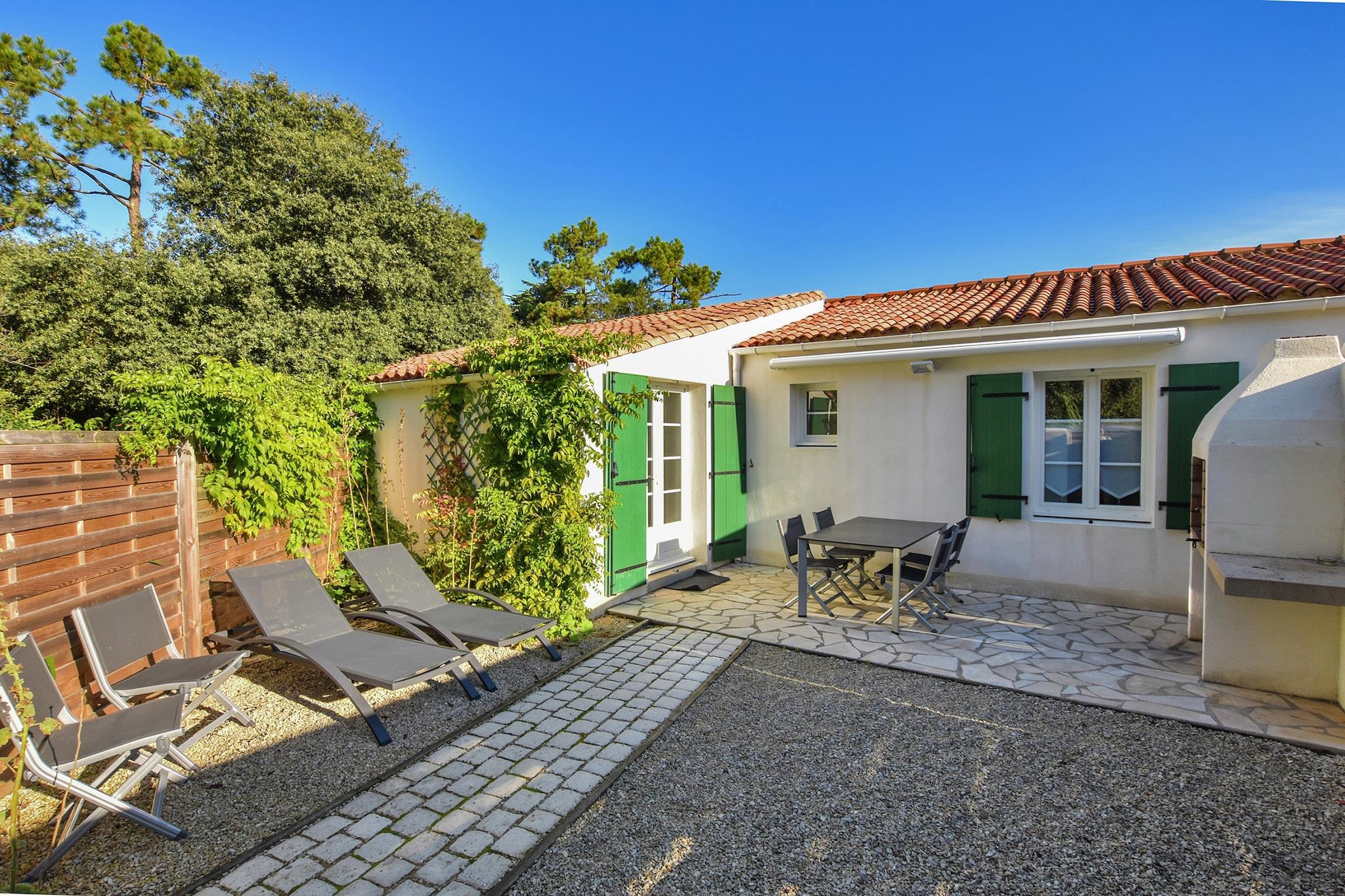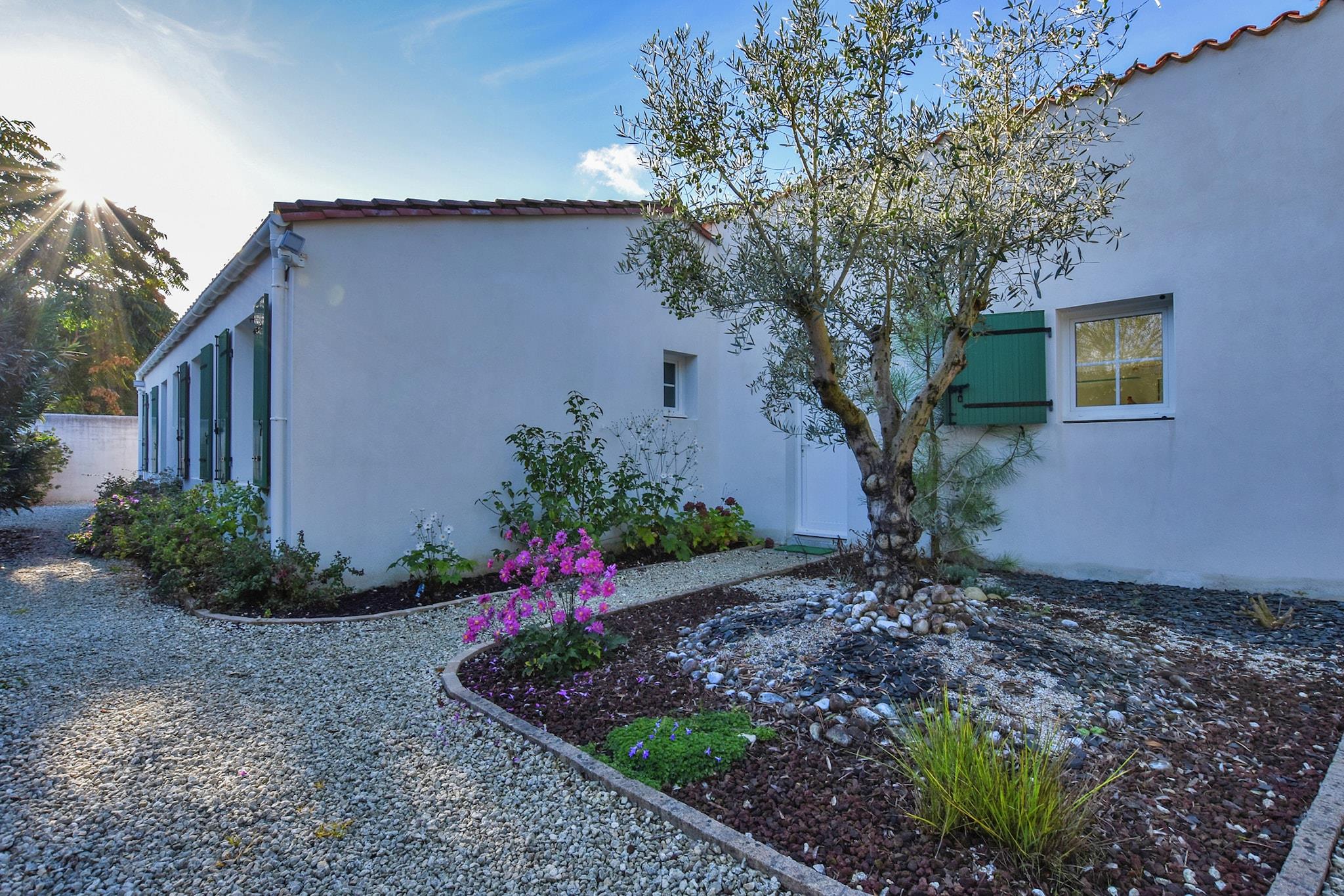 Drømmer du om at tilbringe din ferie på en fransk ø? L 'Île-de-Ré, der er tilgængelig med bro, er stedet for dig. Dette feriehus ligger i nærheden af Sainte-Marie-de-Ré, kun 300 m fra stranden og havet. Indkvarteringen er på et niveau og vinduerne og grønne skodder er i regionens karakteristiske stil. Hvis du har børn, kan du lade dem lege i legepladsen, der er specielt designet til dem og tilgængelig ved en port fra din terrasse. Lejeprisen er todelt, men takket være hegnet, det giver fuldstændig privatlivets fred. Øen er et sandt paradis for cyklister, de kan krydse hele længden og bredden af det langs cykelstier. Stranden har en strand med livreddere kun 2 km væk på cykel. Den befæstede by Saint -Martin-de-Ré (8 km) har en citadel og en lille havn med fantastisk mad og restauranter. Østersne er et must! Den historiske havneby La Rochelle (13 km) er let tilgængeligt med bil. den gamle havn og besøge tårnet Saint Nicolas fra det 14. århundrede du vil også finde det største akvarium i Europa. Les Baleines (24 km) og dets fyr er placeret på øens vestligste punkt. Derfra har du en fantastisk udsigt over Atlanterhavet. Den gamle søby Rochefort (ca. 50 km) er også værd at besøge. Der kan du beundre skibet Hermione, en berømt gengivelse af General Lafayette fregat. Igen med bil kan du også besøge Marais Poitevin Regional Natural Park (33 km).