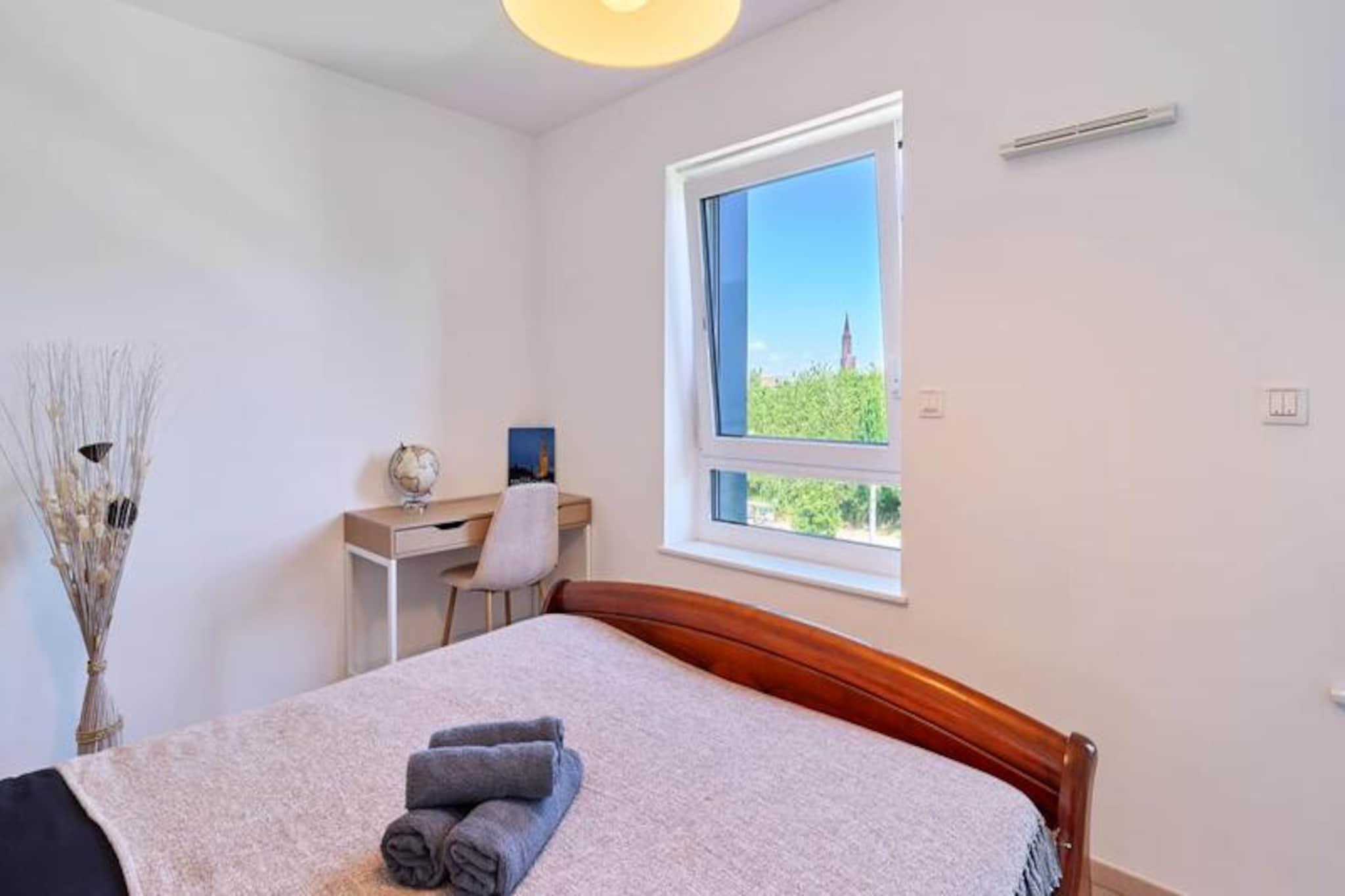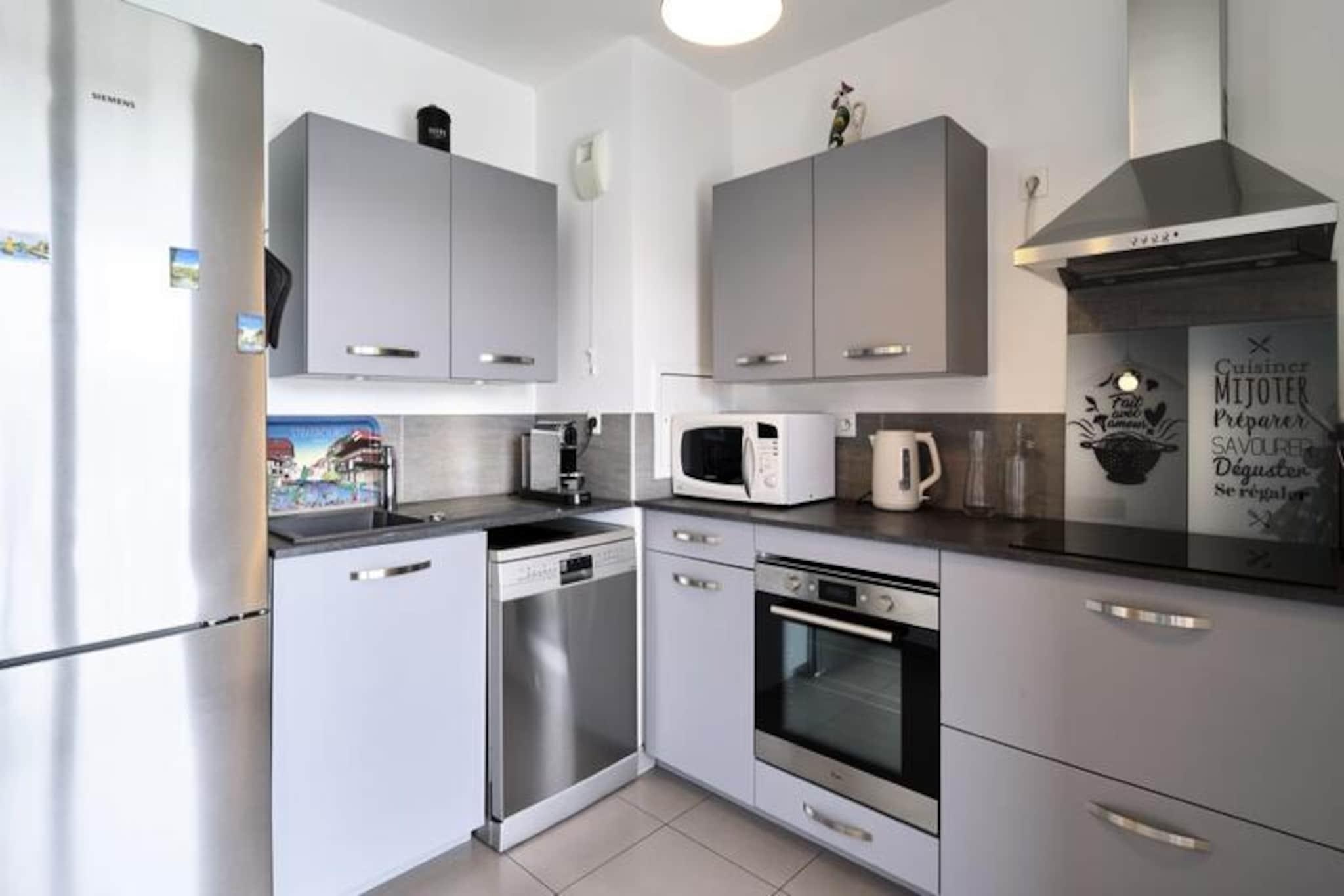 I hjertet af Strasbourgs rolige Neudorf-distrikt tilbyder denne elegante lejlighed med 2 soveværelser en harmonisk blanding af moderne komfort og urban bekvemmelighed. Beliggende på 4. sal med elevatoradgang er dette lyse og rummelige tilflugtssted perfekt til par, familier eller forretningsrejsende, der søger en fredelig, men alligevel forbundet base. Fra det øjeblik du træder ind, vil du blive mødt af en lys stue, der åbner ud til en charmerende balkon, perfekt til at nyde din morgenkaffe, mens du beundrer den uhindrede udsigt over Strasbourgs ikoniske katedral. Lejligheden har et fuldt udstyret moderne køkken, ideelt til at tilberede måltider med friske ingredienser fra nærliggende markeder. Begge soveværelser er omhyggeligt designet med rigelig opbevaringsplads, arbejdsområder og adgang til en anden balkon, der tilbyder et roligt sted at slappe af efter en dag med udforskning. Et veludstyret badeværelse med vaskemaskine bidrager til bekvemmeligheden og sikrer et komfortabelt og selvforsynende ophold. Højhastigheds-Wi-Fi og sengetøj i hotelkvalitet forbedrer den samlede oplevelse og gør det til et sandt hjem væk fra hjemmet. Denne lejlighed ligger kun 15 minutters gang fra byens centrum og den majestætiske katedral og tilbyder nem adgang til Strasbourgs pulserende kulturelle og kulinariske scene. Den nærliggende sporvogn og butikker sikrer, at alt hvad du behøver er inden for rækkevidde, mens Rhinens maleriske bredder inviterer dig til afslappende gåture eller cykelture. Uanset om du er her for en romantisk ferie, en familieferie eller en produktiv forretningsrejse, tilbyder denne lejlighed den perfekte kombination af ro og tilgængelighed. Book dit ophold i dag, og lad Strasbourgs charme og komforten i denne dejlige lejlighed skabe uforglemmelige minder.