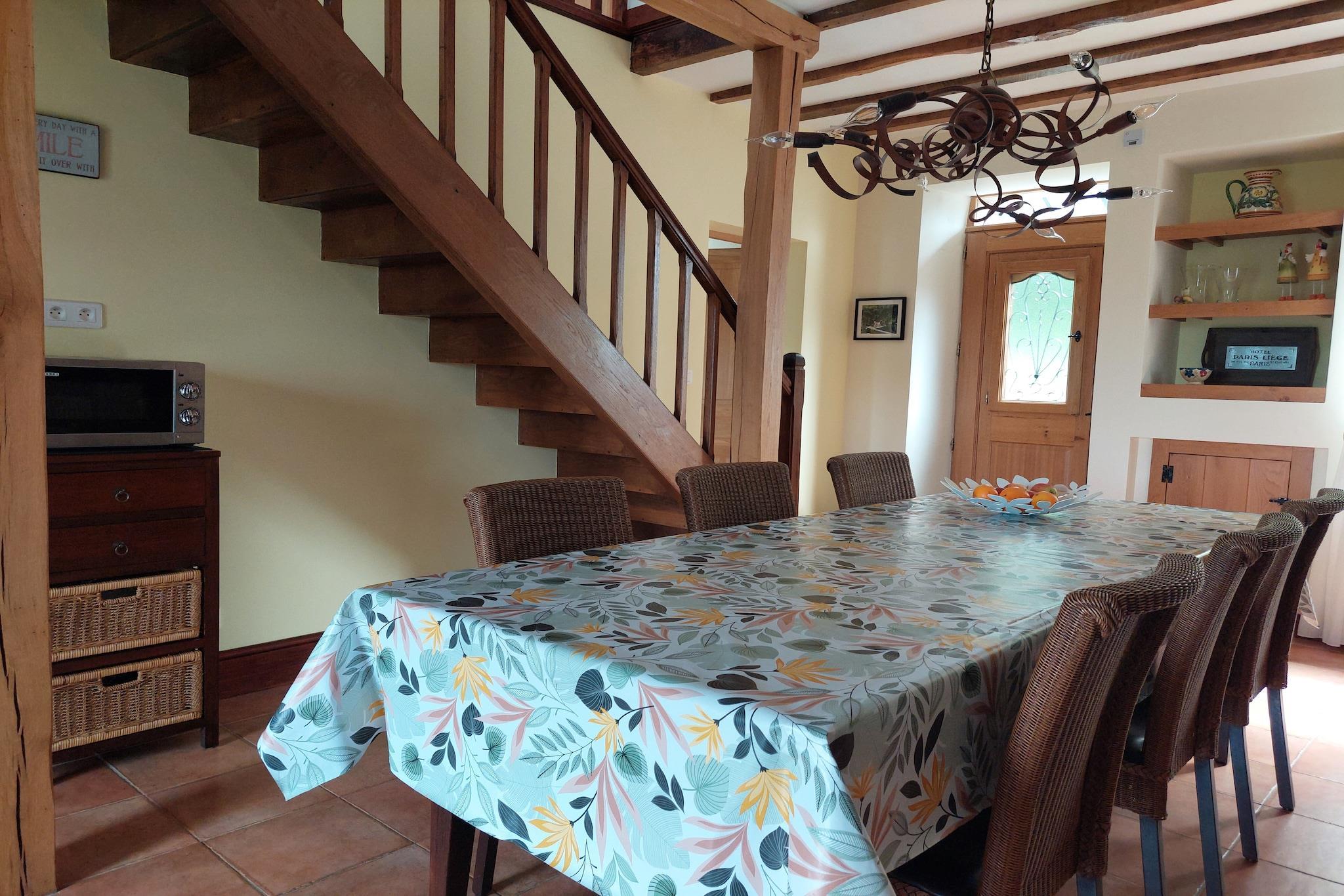 Roligt, privat sommerhus Dette smukke fritliggende feriehus i Sussac er blevet nænsomt renoveret, med synlige bjælker og originale gulve, der tilføjer autentisk karakter. Beliggende på en rummelig 6000 m² grund for enden af ??en stille blind vej, tilbyder det fuldstændig privatliv og ro. Ideel til en familie eller gruppe på seks, du kan slappe af, mens du beundrer en fantastisk udsigt over de omkringliggende skove, bakker og en glitrende saltvandspool fra terrasserne. Natur og lokale attraktioner Friluftsentusiaster vil sætte pris på den nærliggende "Circuit de Bonneval" vandrerute og den ekspansive Lac de Vassivière, 30 km væk - et paradis for vandelskere, der tilbyder strande, fiskeri, vandski og bådudlejning. For familiehygge er der en minigolfbane i Sussac (1 km), en rideskole i Linards (12 km) og en zoologisk have i Vigen (38 km). Væsentlige faciliteter såsom bageri, bank og købmand ligger kun 6 km væk i Châteauneuf, med et pulserende marked i Eymoutiers 14 km væk. Komfort og bekvemmelighed Indenfor inviterer det veludstyrede køkken dig til at tilberede lækre måltider, mens komfortable soveværelser lover afslappende nætter. Den historiske by Limoges, 40 km væk, byder på charmerende gader, shoppingmuligheder, museer - inklusive det berømte porcelænsmuseum - og en golfbane i nærheden. Dette hjem kombinerer virkelig komfort, natur og kultur for et mindeværdigt ophold.