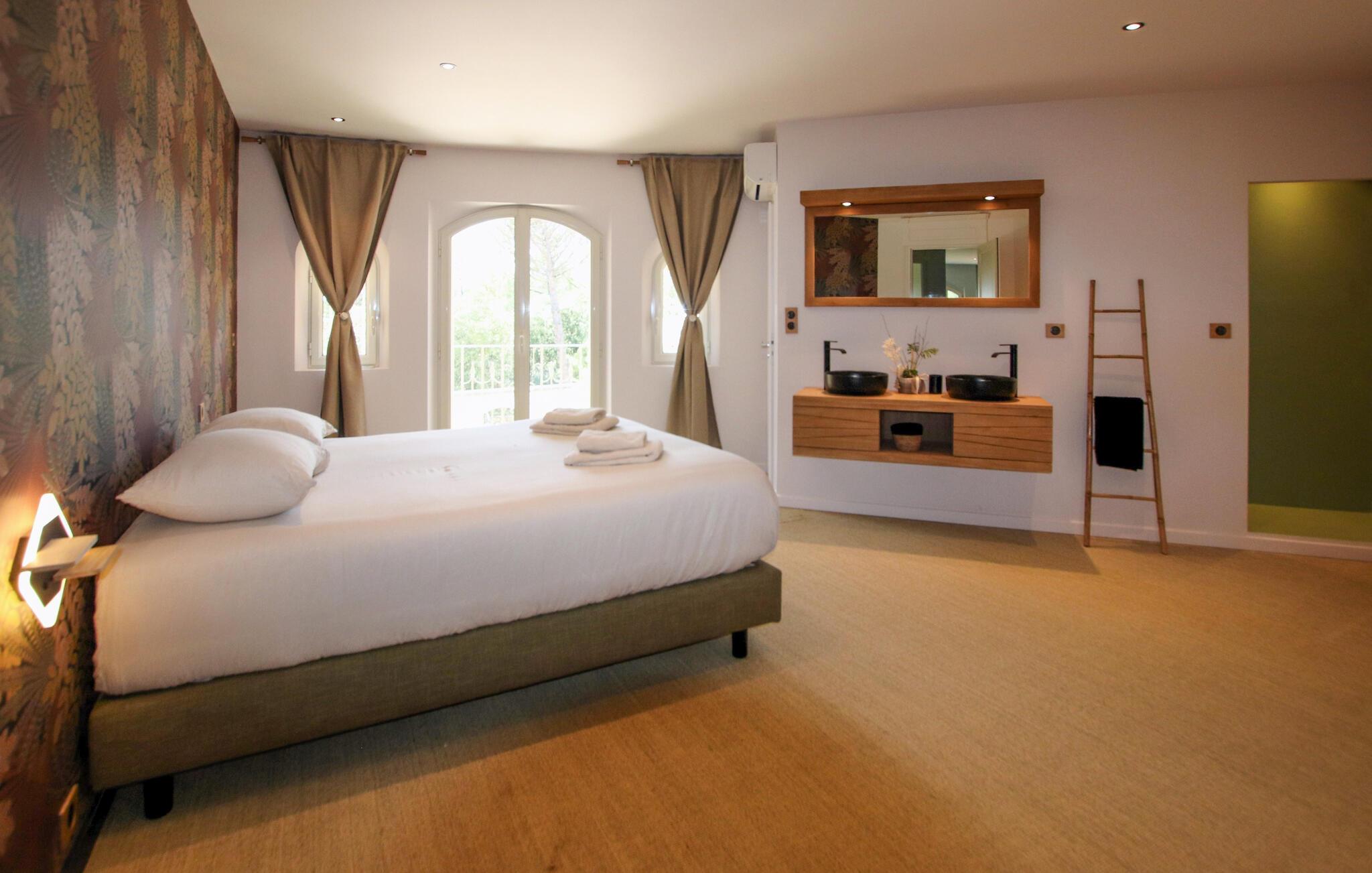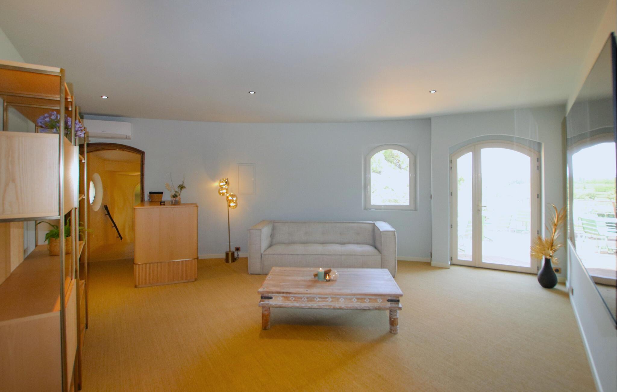 Denne luksuriøse og børnevenlige villa er omgivet af natur og tilbyder rigelig plads til længe ventede familiesammenkomster eller en dejlig ferie med vennerne. Her kan I trylle kulinariske lækkerier frem, nyde hyggelige måltider og slappe af med hyggelige filmaftener eller stimulerende samtaler i en stilfuld atmosfære med møbler af høj kvalitet og behagelig belysning.