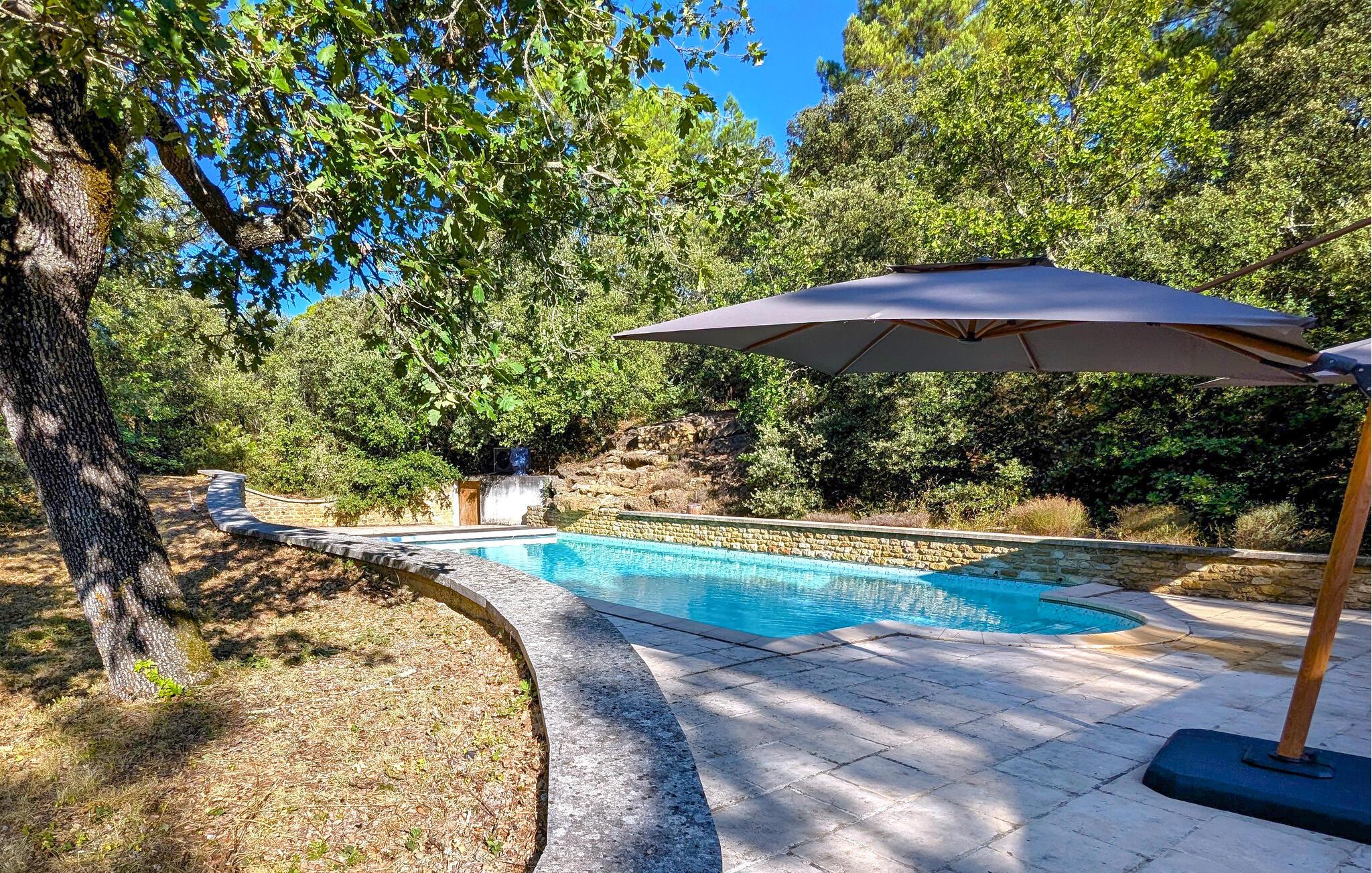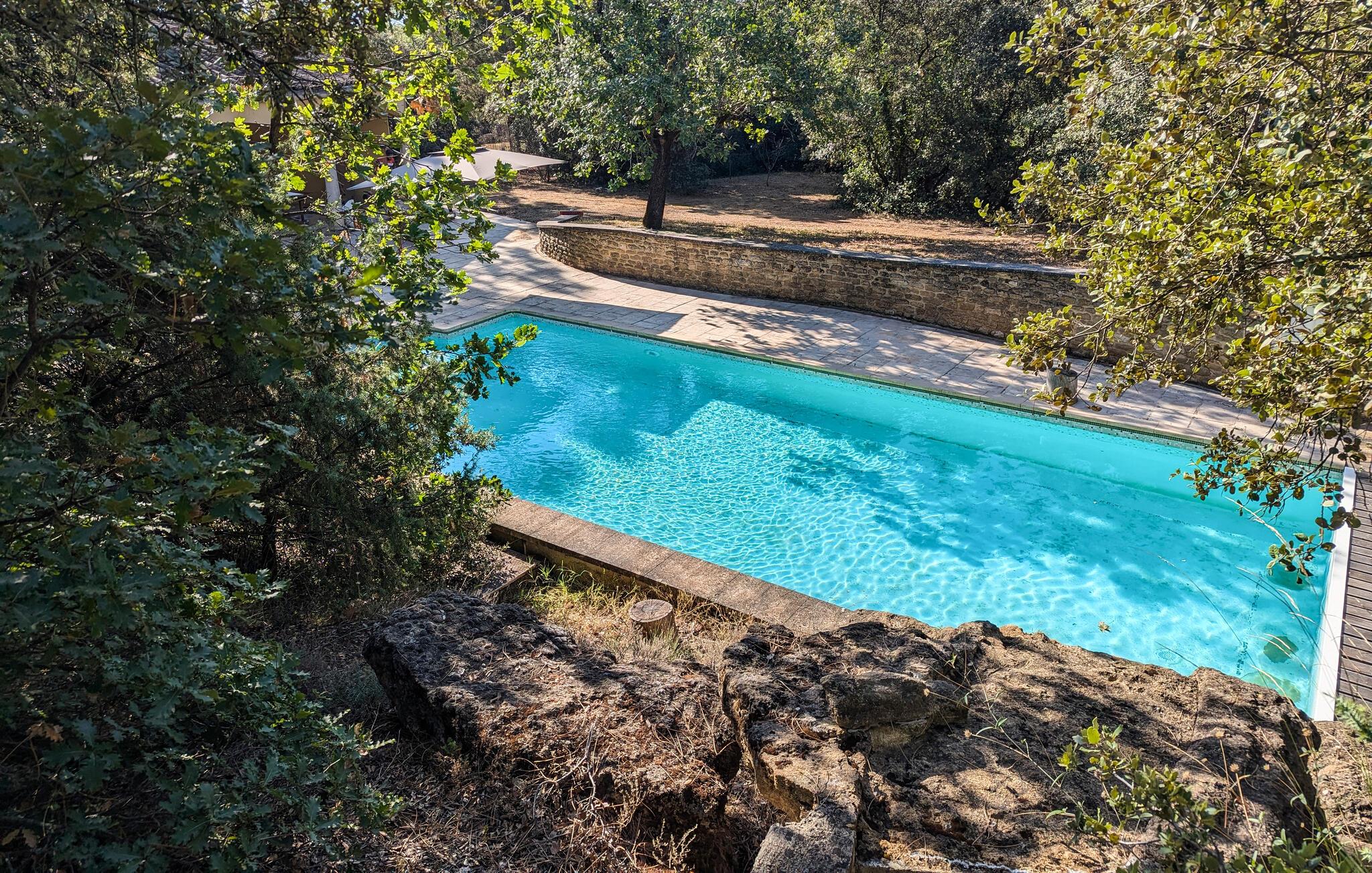 Udeområdet lader heller ikke noget tilbage at ønske. Snup en frisk dukkert i den afsidesliggende pool, lad udsigten feje over bakkerne, vinmarkerne og lavendelmarkerne fra den panoramiske terrasse, og server jer selv delikatesser på de forskellige skyggefulde træterrasser. Glæd jer til charmerende udendørsaktiviteter, vær vært for hyggelige grillmiddage eller havefester under stjernehimlen.