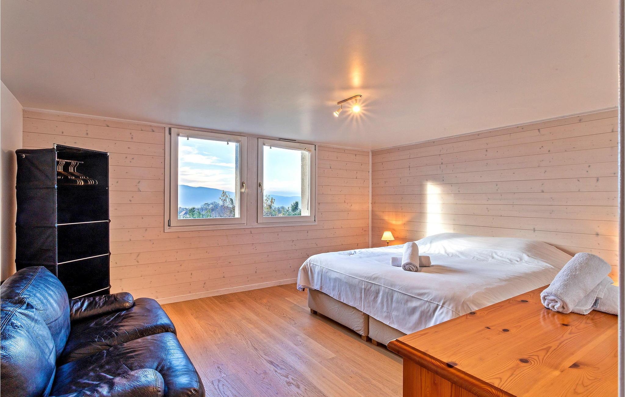 Ferievillaen i Talloires nær Annecy-søen tilbyder komfortabel indkvartering. Beliggende på en stor grund, er det et ideelt sted for naturentusiaster og paragliding aficionados. Nærheden til Angon-vandfaldene, Col de la Forclaz, Annecy-søen og Talloires' strande øger dens tiltrækningskraft. I stueetagen har villaen en garage til en bil, et soveværelse, et brusebad og et vaskerum udstyret med væsentlige apparater. Indgangen til stuen fører til et hyggeligt opholdsområde med pejs, spiseplads med udgang til terrasse og et fuldt udstyret køkken. Der er også et yderligere soveværelse med tre enkeltsenge, et separat brusebad og et toilet på denne etage. På første sal finder du 3 velindrettede soveværelser, som hver byder på naturskøn udsigt over bjergene fra deres respektive balkoner. Derudover er der et fælles badeværelse og et separat toilet til rådighed på dette niveau. Udendørs kan villaen prale af en stor grund med en rummelig terrasse med en betagende udsigt over dalen og bjergene. Den private poolgarage til en bil, parkering til to biler og en privat swimmingpool på 12m x 4m pool med sikkerhedsafdækning. Havemøbler og en grill supplerer uderummet. Huset ligger op ad bakke mod Col de la Forclaz: ideel beliggenhed i starten af mange vandreture eller mountainbiketure. Der er gratis shuttlebus på plads hele sommeren for at gå ned til stranden. Alle lokale butikker er i Talloires eller Menthon Saint-Bernard omkring 6 km væk. Bemærk at nødvendigt sneudstyr er nødvendigt under vinterophold.
