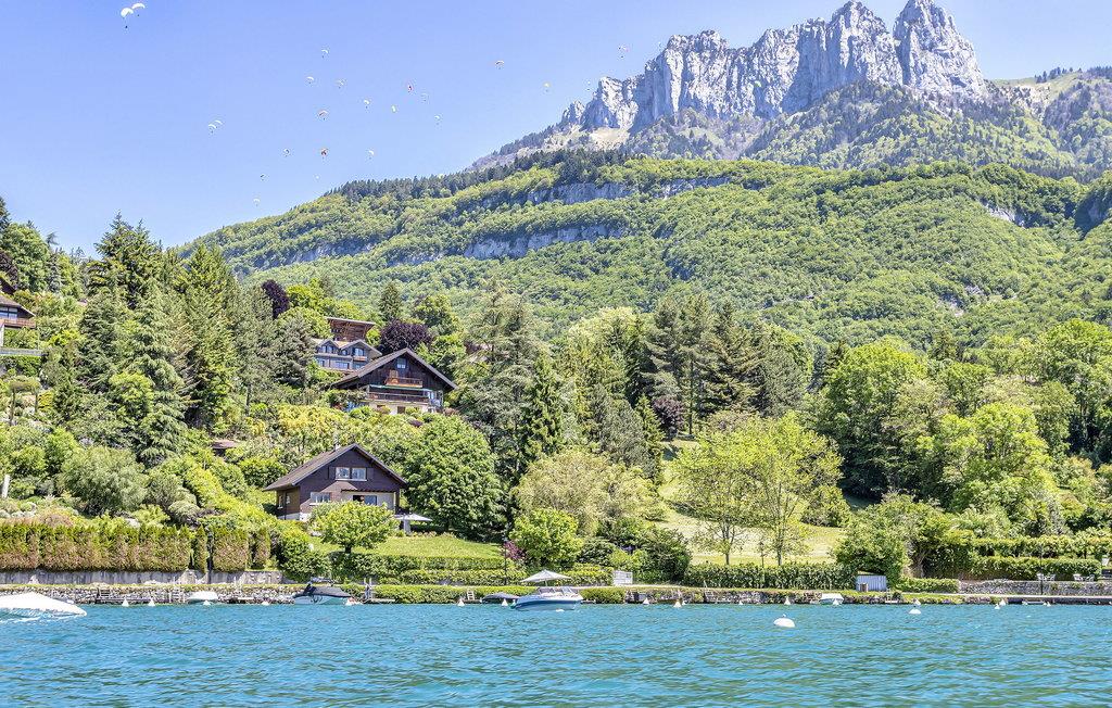 Beliggende i hjertet af Talloires-bugten tilbyder dette familieorienterede feriehus en betagende panoramaudsigt over Annecy-søen, der strækker sig fra Talloires-bugten til Duingt-slottet. Denne rummelige bolig har en stueetage med en stue og soveværelse med en fantastisk udsigt over søen og adgang til haven, et brusebad, et vaskerum og en stor udendørs terrasse ud mod søen. Første sal består af et opholdsområde med udsigt over søen, et separat veludstyret køkken og to soveværelser med enestående udsigt over søen og haven samt et fælles badeværelse. Loftetagen er vært for yderligere soveværelser, som hver giver komfortable møbler og forskellige udsigter over omgivelserne, ledsaget af et praktisk brusebad. Udenfor har ejendommen en fuldt lukket have, herunder en stor grusterrasse ved søen, græsplæner, en skovklædt sektion og udendørsmøbler. Parkeringsplads til fire biler er tilgængelig. Bemærk venligst, at sneudstyr er en nødvendighed i vintermånederne, og børn skal altid være under opsyn på grund af ejendommens beliggenhed ved søen. Huset er beliggende i hjertet af Talloires-bugten ved Annecy-søen, ideelt placeret til at drage fordel af de berømte restauranter i Talloires-bugten samt til udøvelse af adskillige sportslige eller kulturelle aktiviteter. Nautiske aktiviteter er lige uden for døren til huset på Cercle Nautique de Talloires: sejlads, roning, padleudlejning, kajakker og i bugten til vandski og vandcyklerudlejning. Alle lokale butikker i Talloires er omkring 700 m væk, herunder et bageri, en købmand og restauranter. Fordyb dig i skønheden ved Talloires-bugten og Annecy-søen fra dette charmerende familieferiehus, der lover et uforglemmeligt ophold midt i maleriske omgivelser.