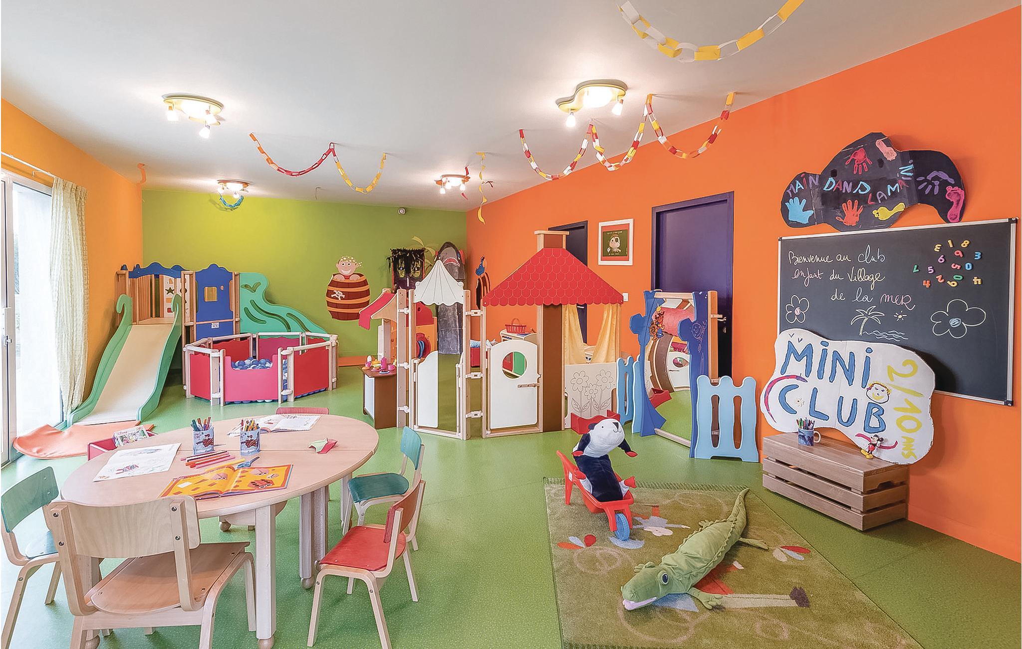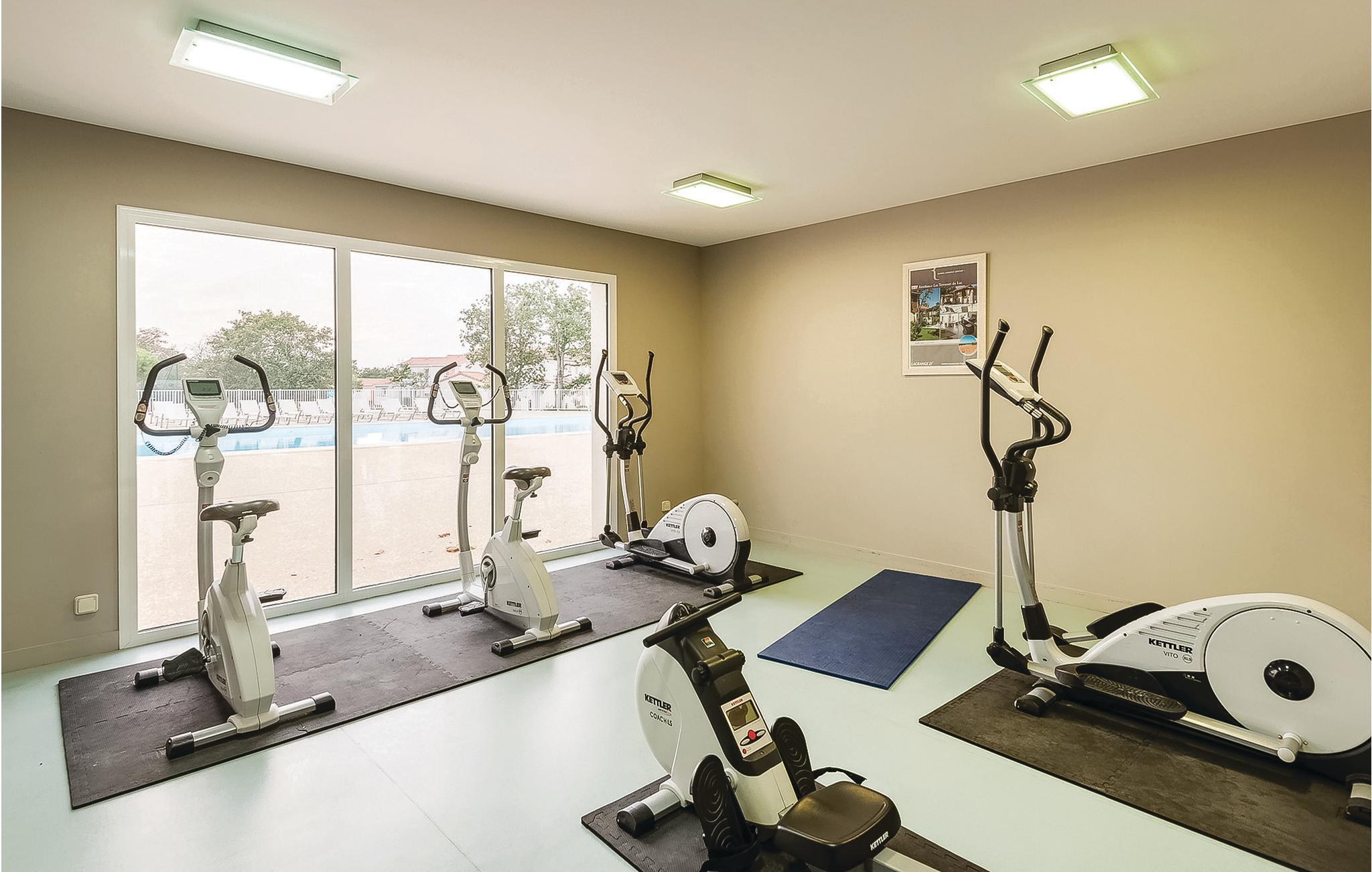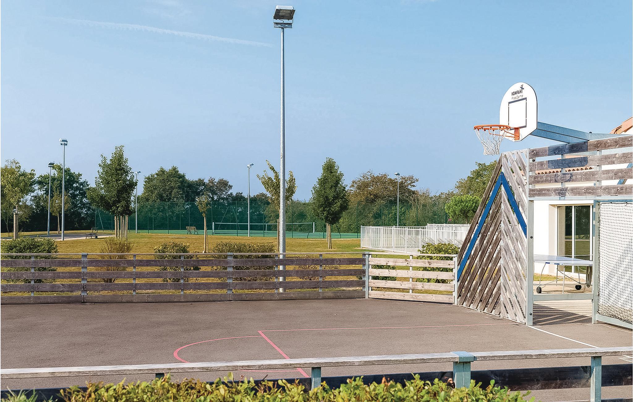 Dette kompleks består af hundrede rækkehuse, som er fordelt på syv områder. Efter morgenmaden kan I snuppe en frisk dukkert i den opvarmede udendørs pool og benytte saunaen og hammam, som er gratis en gang om ugen. I kan også træne på ferien og bruge fitnessrummet samt hygge jer med et spil tennis, bordtennis eller fodbold. Har I cyklerne med, er der også opbevaringsplads til dem.