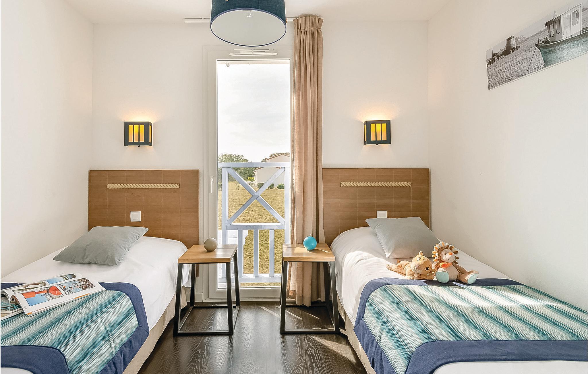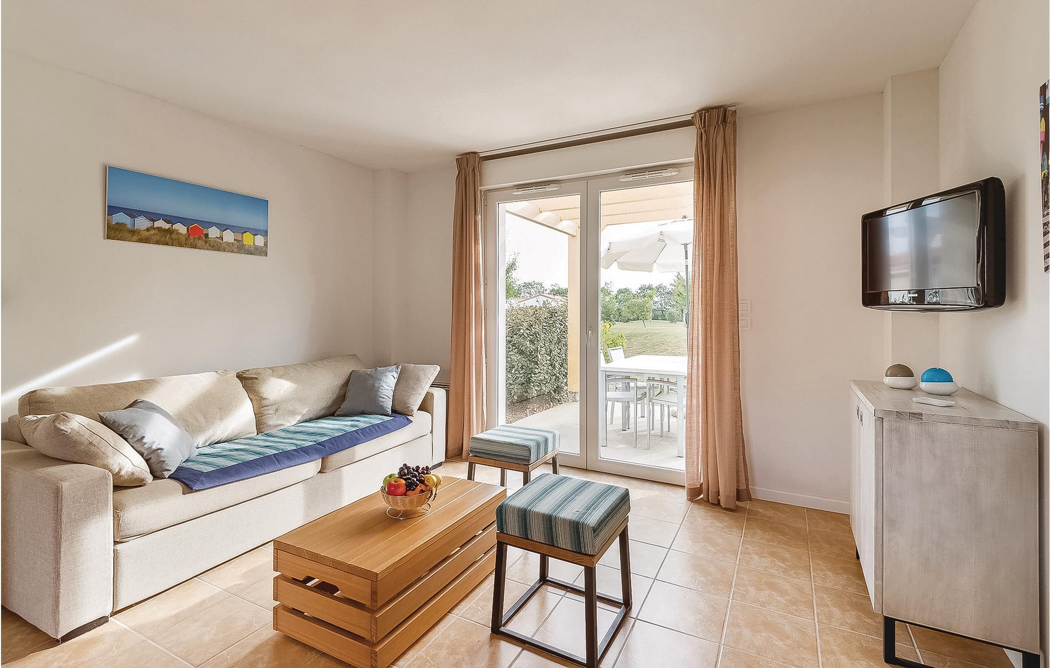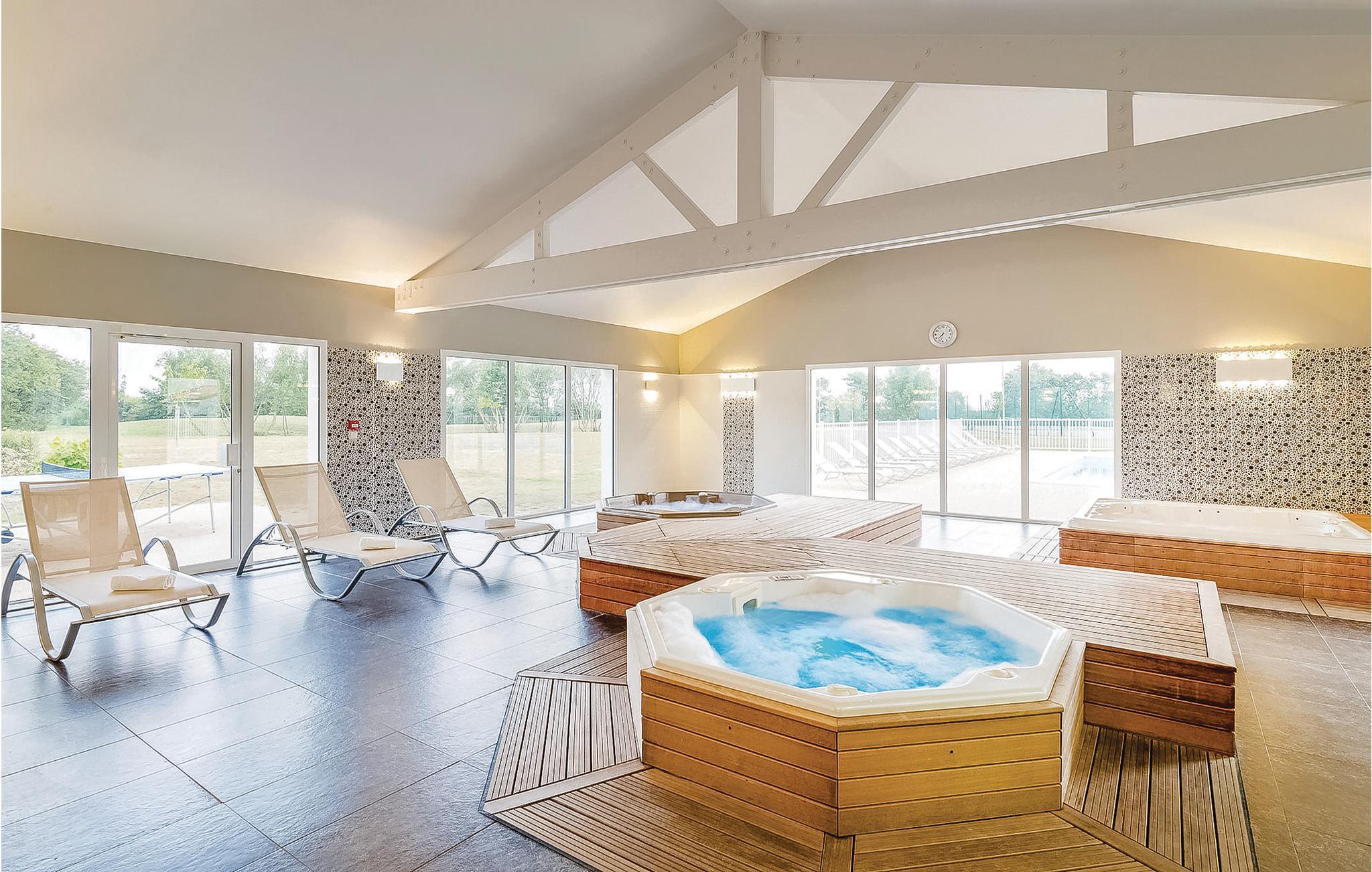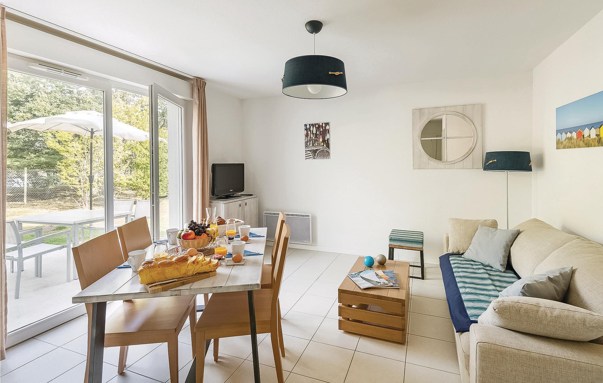 Dette kompleks består af hundrede rækkehuse, som er fordelt på syv områder. Efter morgenmaden kan I snuppe en frisk dukkert i den opvarmede udendørs pool og benytte saunaen og hammam, som er gratis en gang om ugen. I kan også træne på ferien og bruge fitnessrummet samt hygge jer med et spil tennis, bordtennis eller fodbold. Har I cyklerne med, er der også opbevaringsplads til dem.