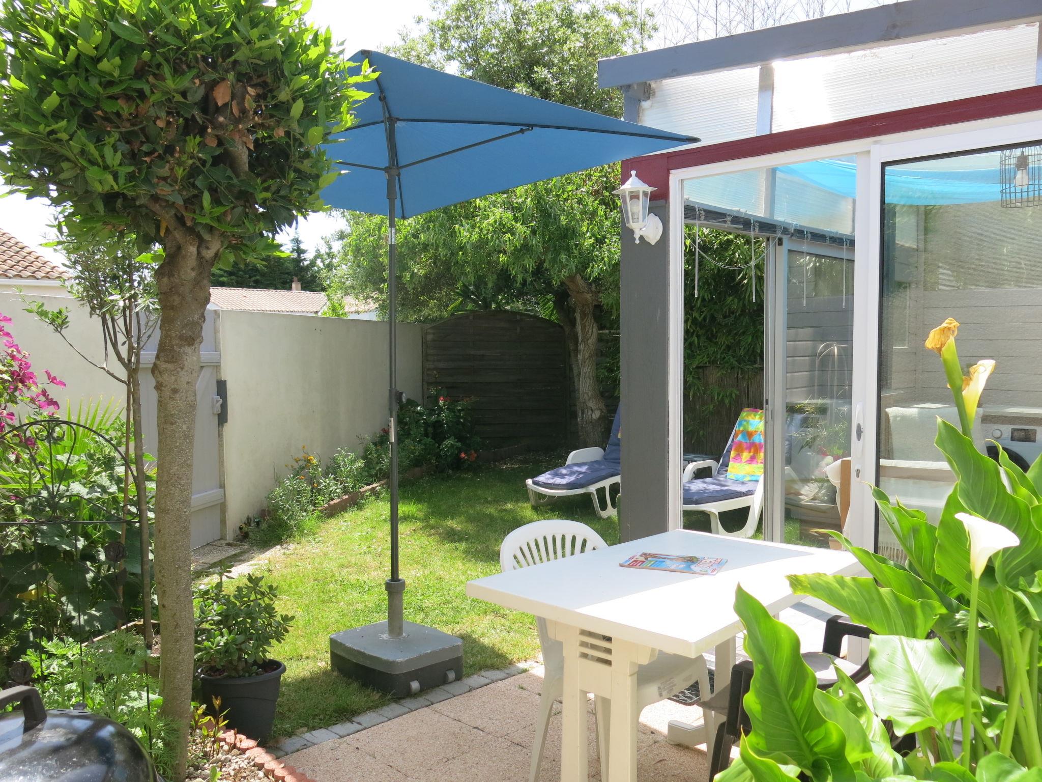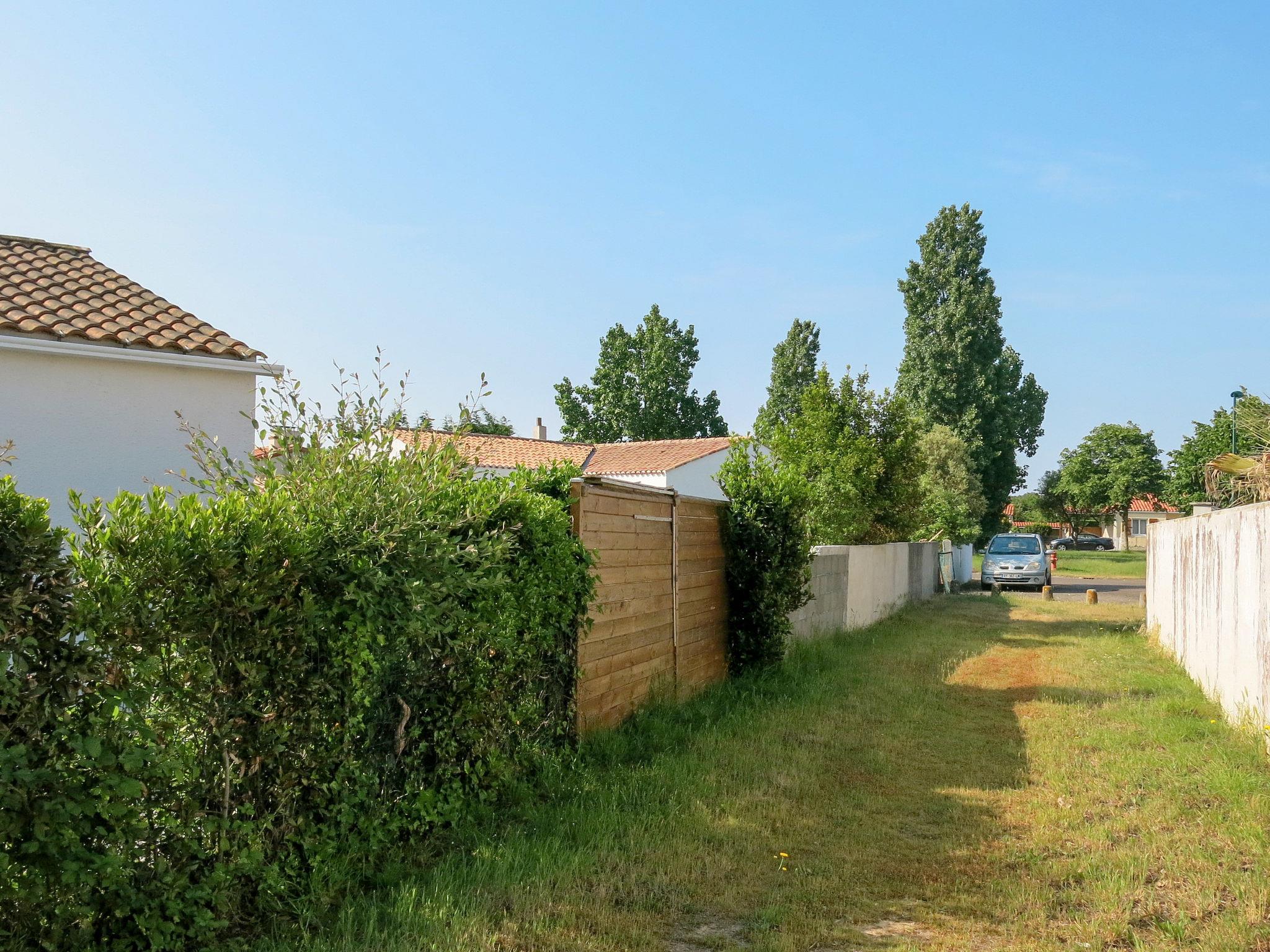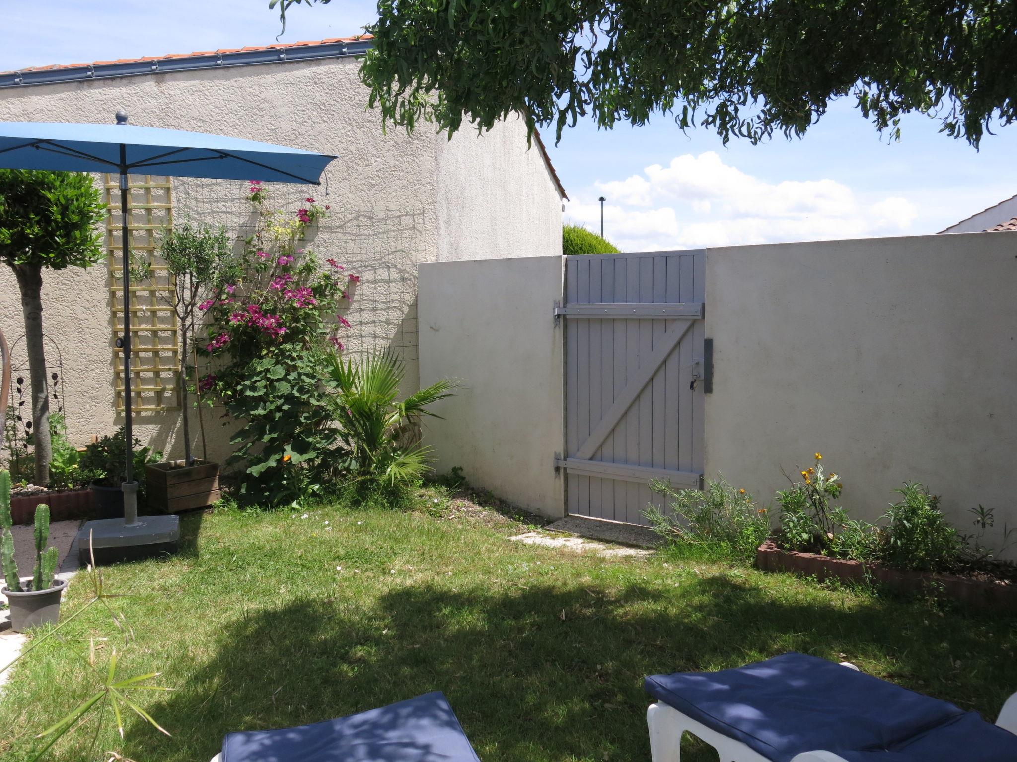 Terraced house "Roses Tremières". In the district of Le Querry-Pigeon, 6 km from the centre of Talmont-Saint-Hilaire, 16 km from the centre of Les Sables d'Olonne, in the residential district, 1.3 km from the sea. Private: property 50 m2 (fenced) with lawn and wildlife garden. Motor access to 20 m from the house. Footpath to the house. Parking at the house at 20 m. Shop 300 m, supermarket 6 km, bus stop 6 km, sandy beach "Le Veillon" 1.3 km. Sports harbour 1.3 km. Nearby attractions: Port Bourgenay 1.3 km.