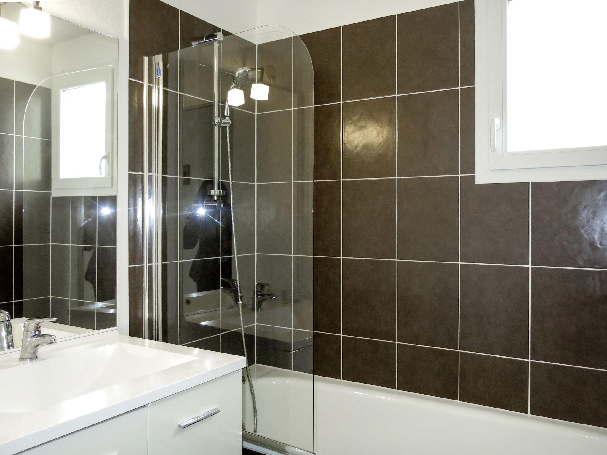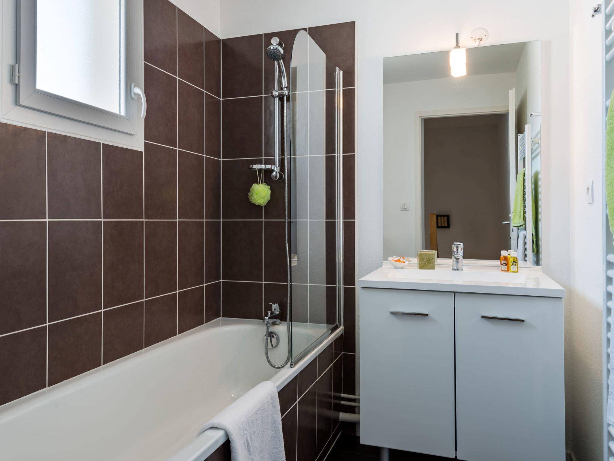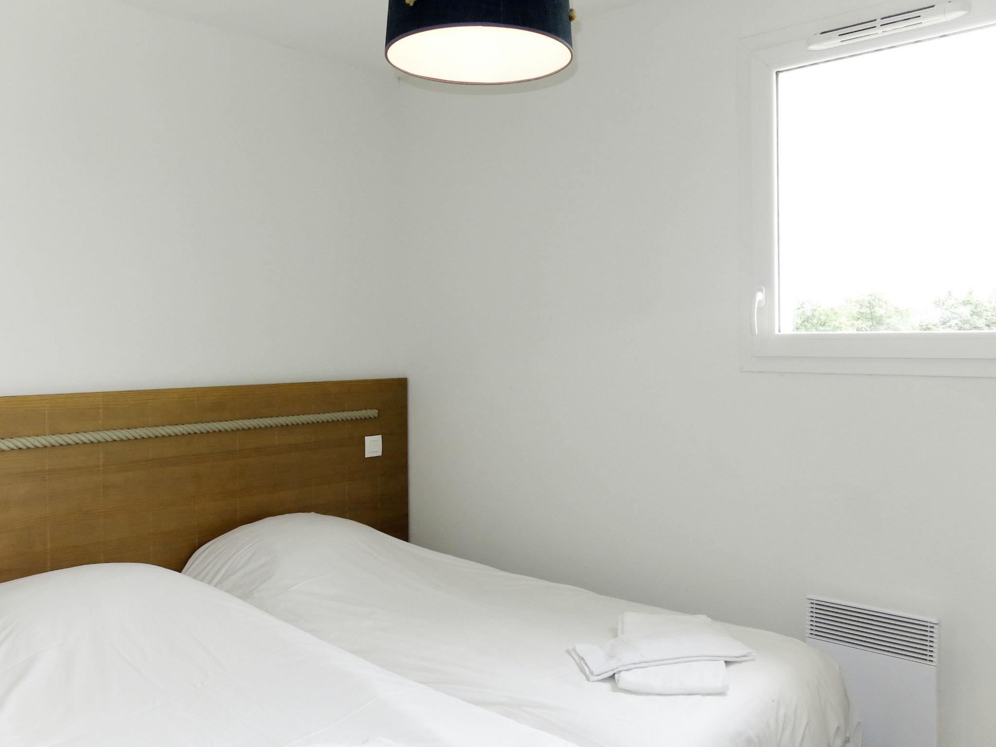 "Le Village de la Mer", 2-room terraced house 38 to 40 m2. Object suitable for 4 adults. Beautiful furnishings: living/sleeping room with 1 double sofabed, dining table and TV. Exit to the terrace. 1 room with 2 beds (80 cm). Alcove with 1 x 2 bunk beds (80 cm). Kitchenette (dishwasher, 2 ceramic glass hob hotplates, toaster, kettle, microwave, electric coffee machine). Bathroom, sep. WC. Electric heating. Terrace. Terrace furniture. Facilities: children's high chair, baby cot (extra). Please note: maximum 2 pets/ dogs allowed. Smoke alarm, fire extinguisher. This type of flat can also be laid out on 2 levels. Instead of an enclosed bedroom, some sleeping areas are located in an open-plan area (gallery, alcove, etc.).