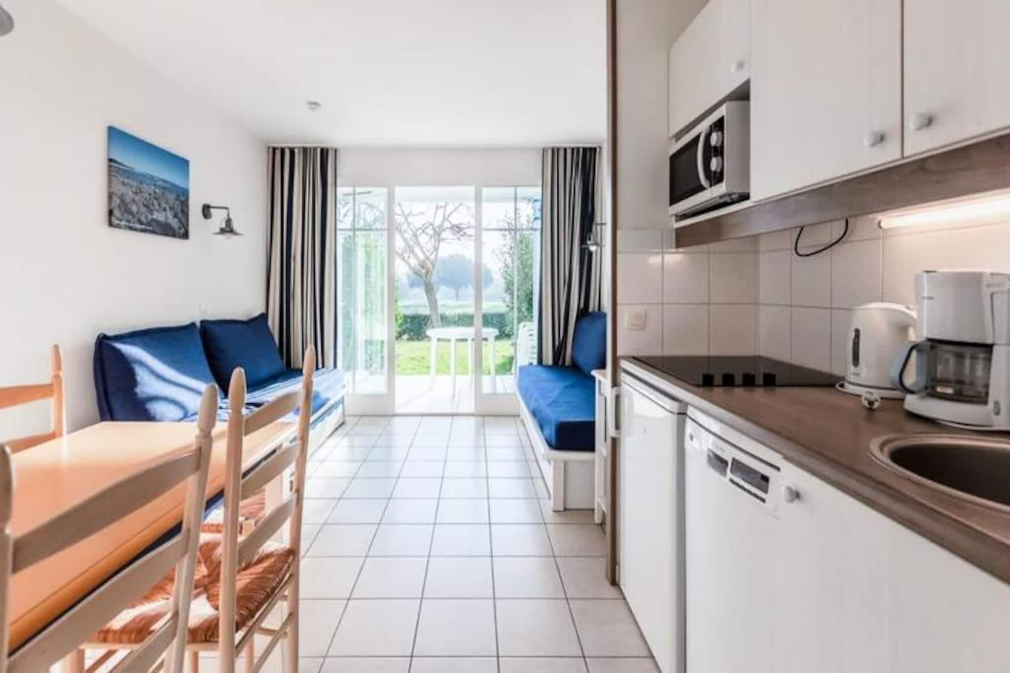 Denne hyggelige feriebolig tilbyder et roligt tilflugtssted omgivet af naturlig skønhed og bekvemme faciliteter. Lejligheden kan rumme op til 5 gæster og har et soveværelse med dobbeltseng og en stue med to sovesofaer, heraf en med en udtræksseng. Ejendommen ligger i stueetagen og byder på en sydvendt møbleret terrasse med en malerisk udsigt over golfbanen. Kæledyrsvenlige overnatningssteder er tilgængelige efter anmodning mod et ekstra gebyr. Boligen inkluderer også gratis parkering på stedet og adgang til flere opvarmede swimmingpools, komplet med rutsjebaner og et soppebassin. Ejendommen ligger på en 90 hektar stor ejendom, omgivet af en frodig fyrreskov og har udsigt over en fredfyldt sø. Havet er let tilgængeligt til fods eller på cykel, med en shuttleservice til rådighed til den fantastiske Veillon-strand, kun 2,5 km væk. Gæsterne kan udforske lokale attraktioner, herunder to 18-hullers golfbaner, minigolf og tennisfaciliteter. I nærheden tilbyder et pizzeria, bageri og bar praktiske spisemuligheder for at komplementere dit ophold. Lejligheden er designet til komfort og bekvemmelighed, og byder på et åbent køkken udstyret med vigtige apparater. Badeværelset har badekar, og et separat toilet sikrer ekstra privatliv. Moderne møbler, rigelig opbevaring og et fladskærms-tv forbedrer boligarealet, hvilket gør det til det perfekte valg til en afslappende og mindeværdig ferie.