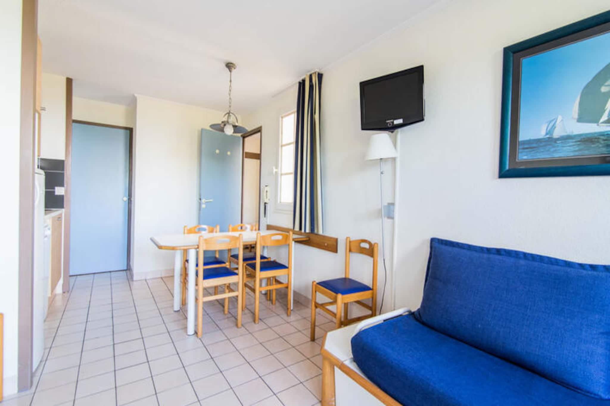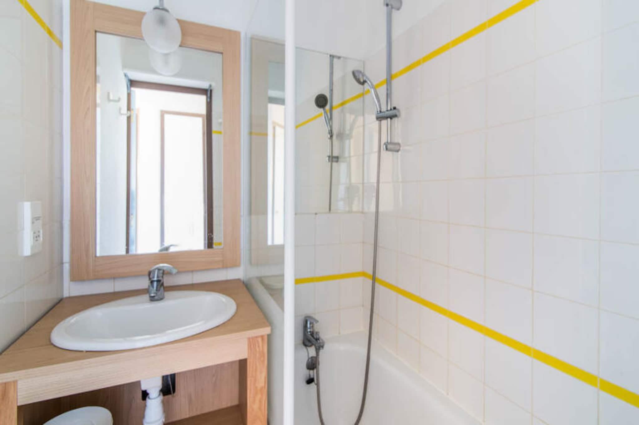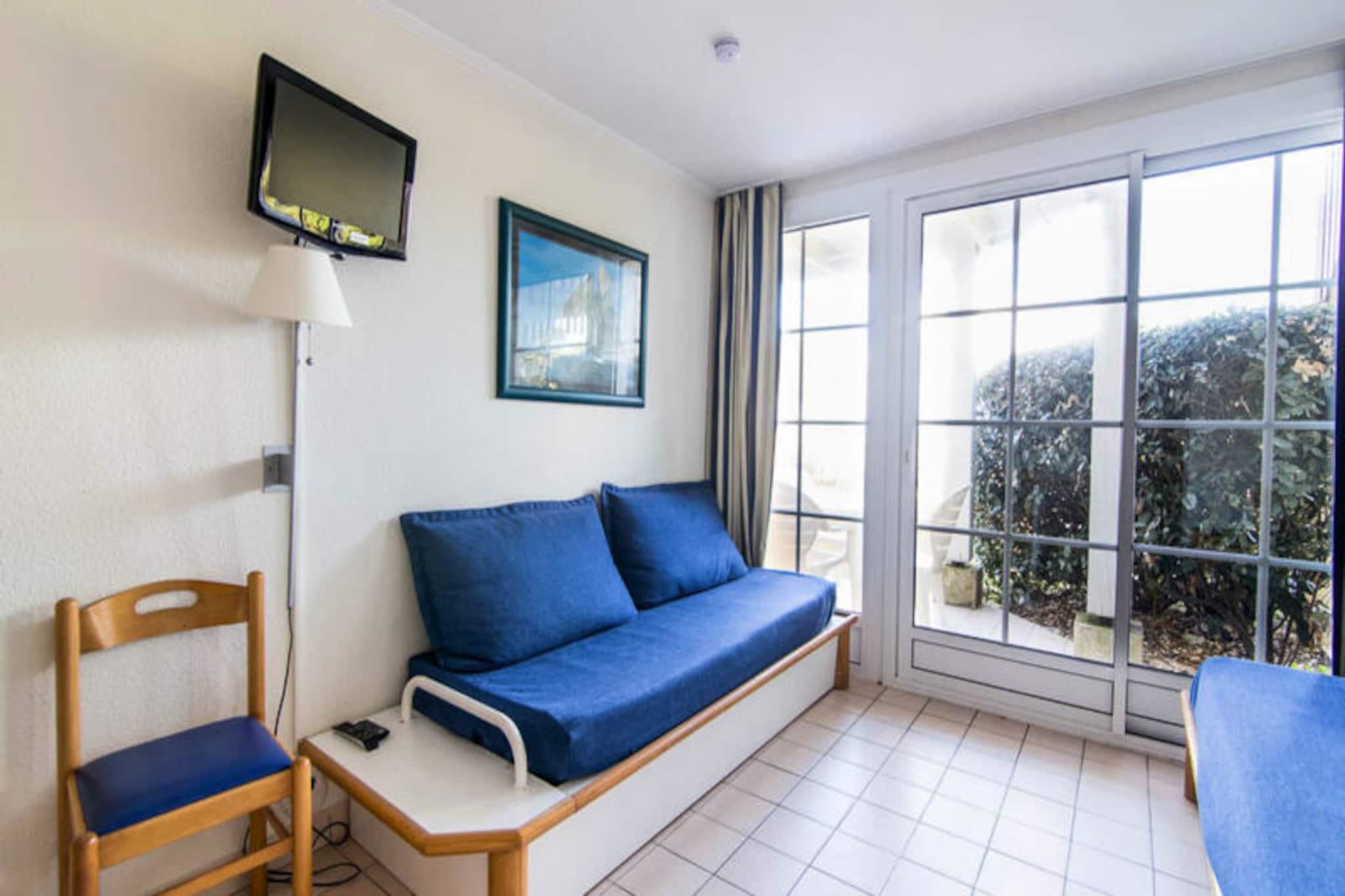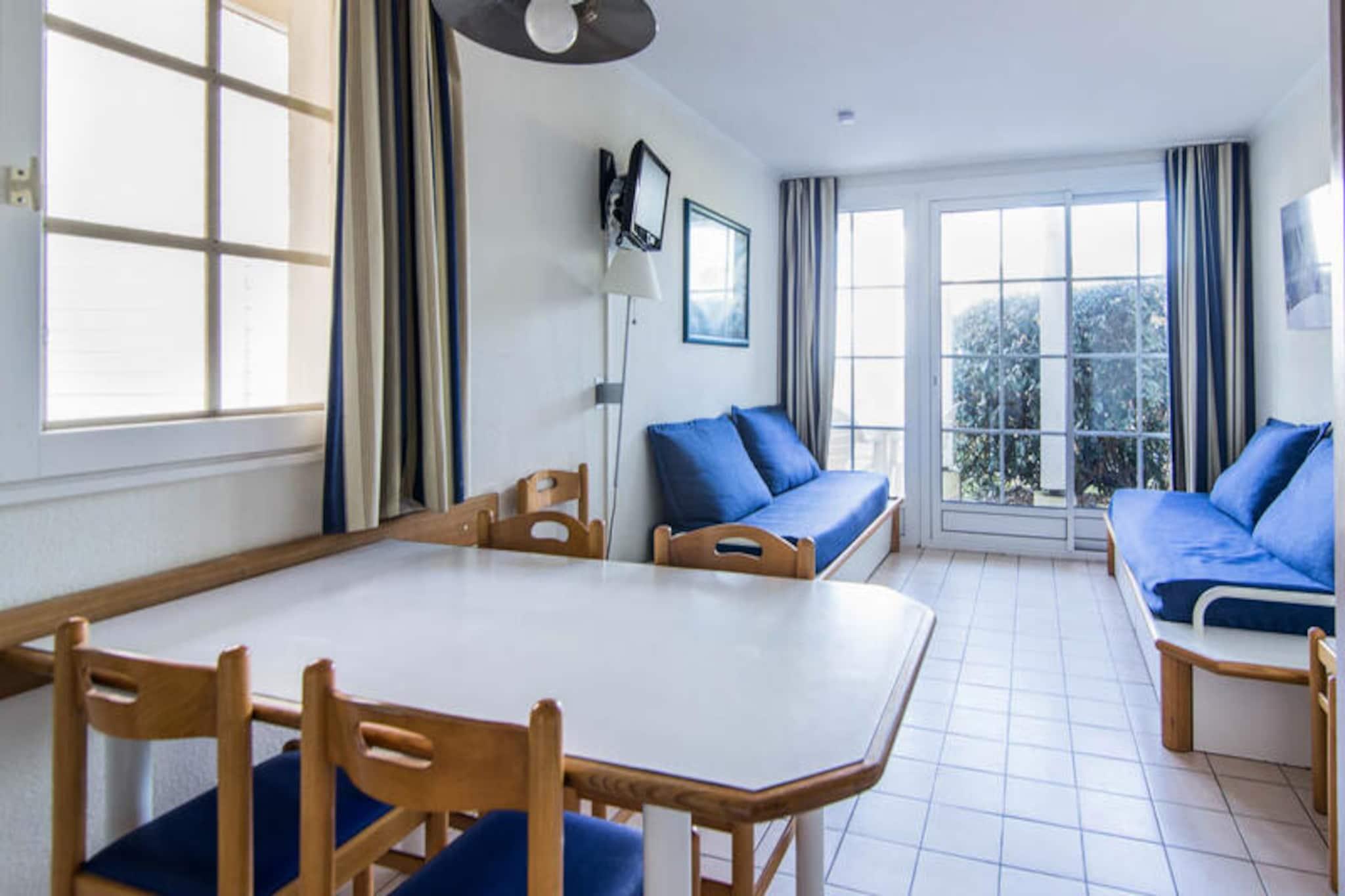 Dette charmerende feriehus kan rumme op til 6 gæster, med en stue med to sovesofaer (den ene med udtræksseng) og et kabineområde med køjesenge. Lejligheden har et separat soveværelse med en dobbeltseng, der byder på rigelig opbevaringsplads, et fladskærms-tv og en møbleret terrasse. Kæledyr er tilladt mod tillægsgebyrer. Der er gratis parkering, og der er et obligatorisk slutrengøringsgebyr. Beliggende på en 90 hektar stor ejendom omgivet af en fyrreskov, er boligen kun 2,5 km fra Veillon-stranden, som kan nås til fods, på cykel eller med shuttle. Området byder på en række udendørs aktiviteter såsom to 18-hullers golfbaner, tennis og minigolf. På stedet kan gæsterne nyde et pizzeria, bageri og bar/isbar, perfekt til afslapning efter en dag med udforskning. Den nærliggende by Les Sables-d'Olonne ligger kun 9 km derfra. Lejligheden har et fuldt udstyret køkkenområde åbent til stuen, ideel til at tilberede måltider. Badeværelset har badekar, og der er separat toilet. Gæsterne vil også nyde adgang til tre swimmingpools med vandrutsjebaner og et soppebassin, som er tilgængeligt fra slutningen af ??april til midten af ??september. Wifi-adgang og yderligere tjenester, såsom sengelinned og babysæt, er tilgængelige mod et ekstra gebyr.