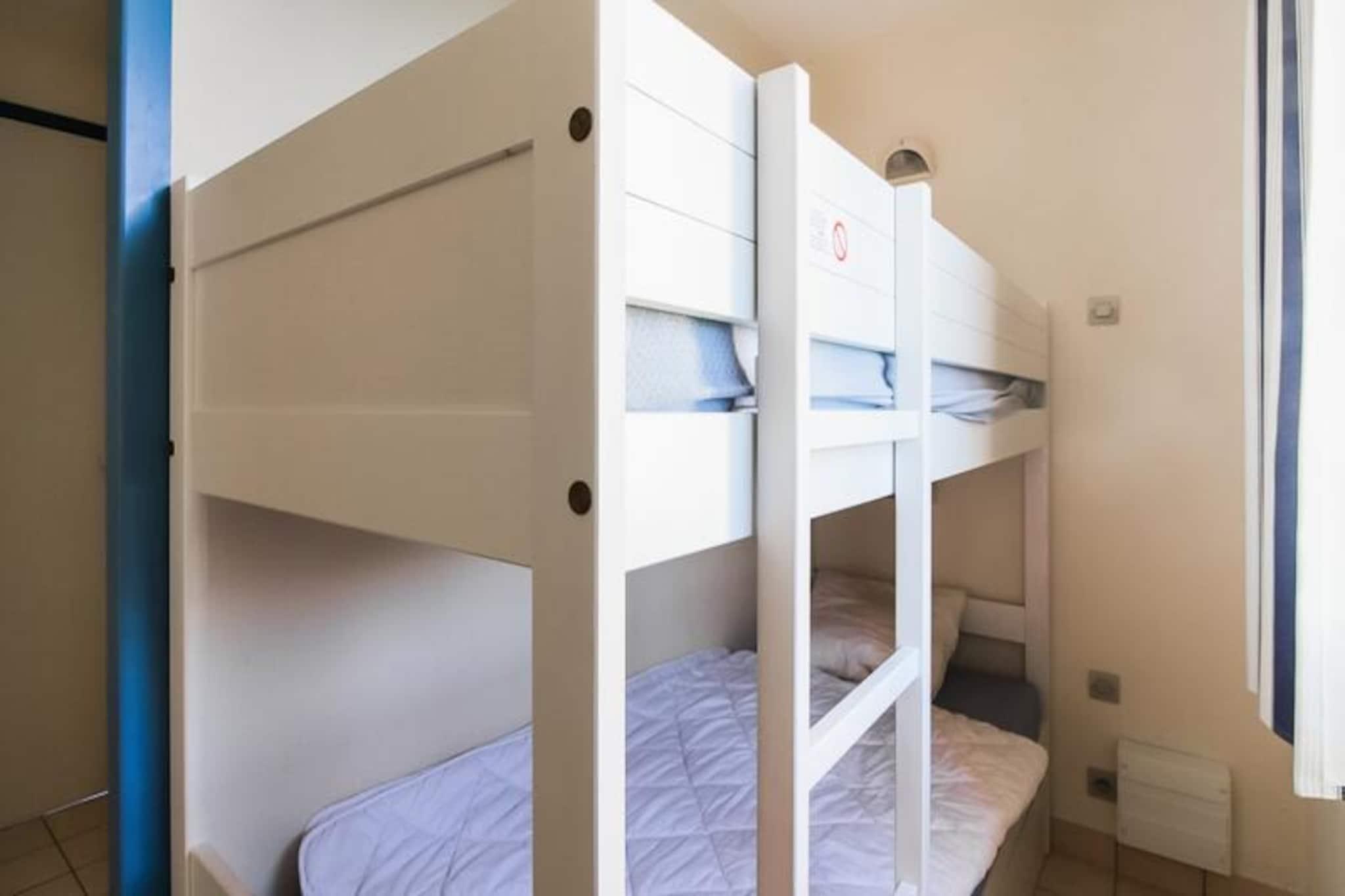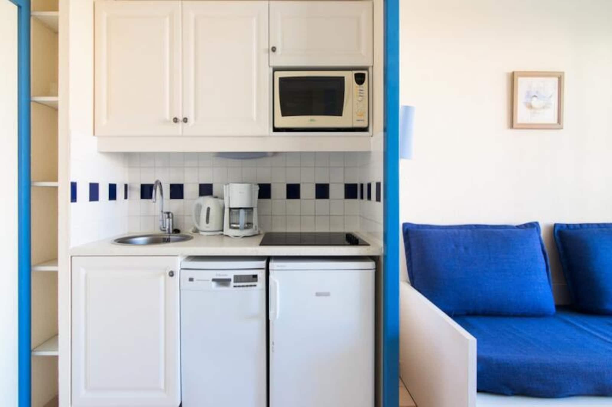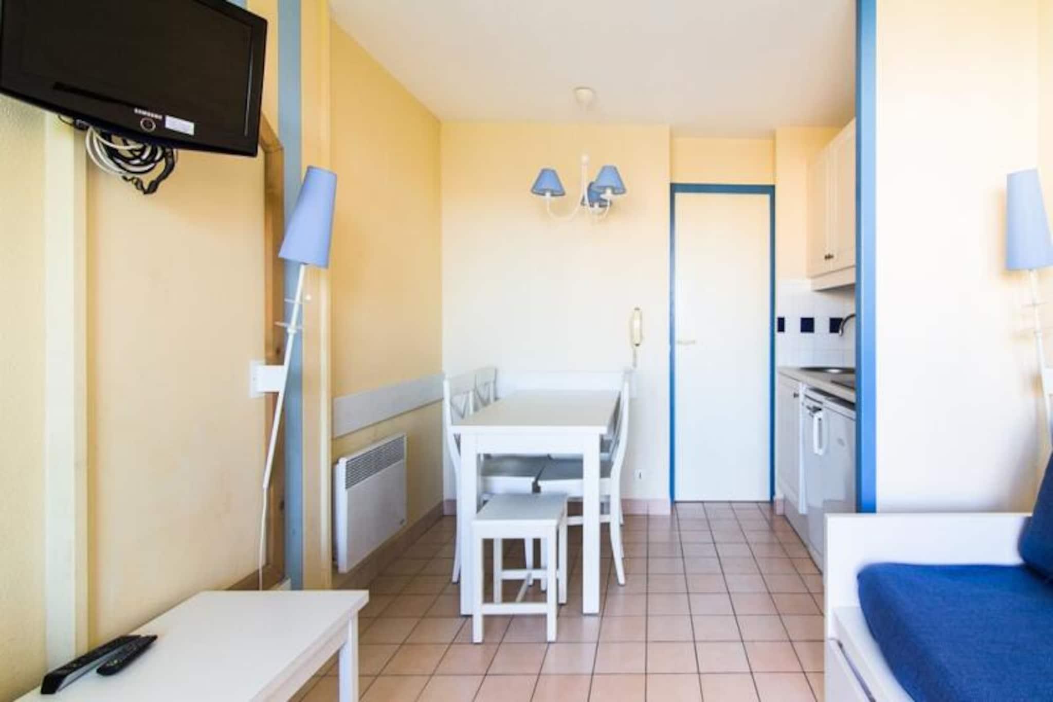 Dette feriehus på 27 m² kan rumme op til 4 gæster med en dobbeltseng i soveværelset og en sovesofa i stuen (med 3 enkeltsenge, inklusive en udtræksseng). Kæledyr er tilladt mod et tillægsgebyr, og trådløs internetadgang er tilgængelig mod et tillægsgebyr. Lejligheden har et lyst og komfortabelt opholdsrum med en overdækket terrasse med udsigt over landsbyen. Gæsterne kan nyde gratis udækket parkering i boligen. Boligen ligger på en 90 hektar stor ejendom omgivet af en fyrreskov og tilbyder direkte adgang til havet, kun 2,5 km væk, til fods eller på cykel. Området byder på forskellige fritidsaktiviteter, herunder to 18-hullers golfbaner, tennis, minigolf og et vandområde med rutsjebaner og opvarmede pools. I nærheden kan gæsterne nyde et pizzeria, bageri og bar samt lokale butikker. Transportservicen kan tage dig til Veillon-stranden for endnu flere aktiviteter. Lejligheden har et køkken i amerikansk stil udstyret med alle nødvendige faciliteter. Badeværelset har et toilet, og yderligere tjenester såsom sengelinned, håndklæder og slutrengøring er tilgængelige mod et tillægsgebyr. Boligen er familievenlig og tilbyder et babysæt (afhængigt af tilgængelighed) og forskellige tjenester til at forbedre dit ophold.