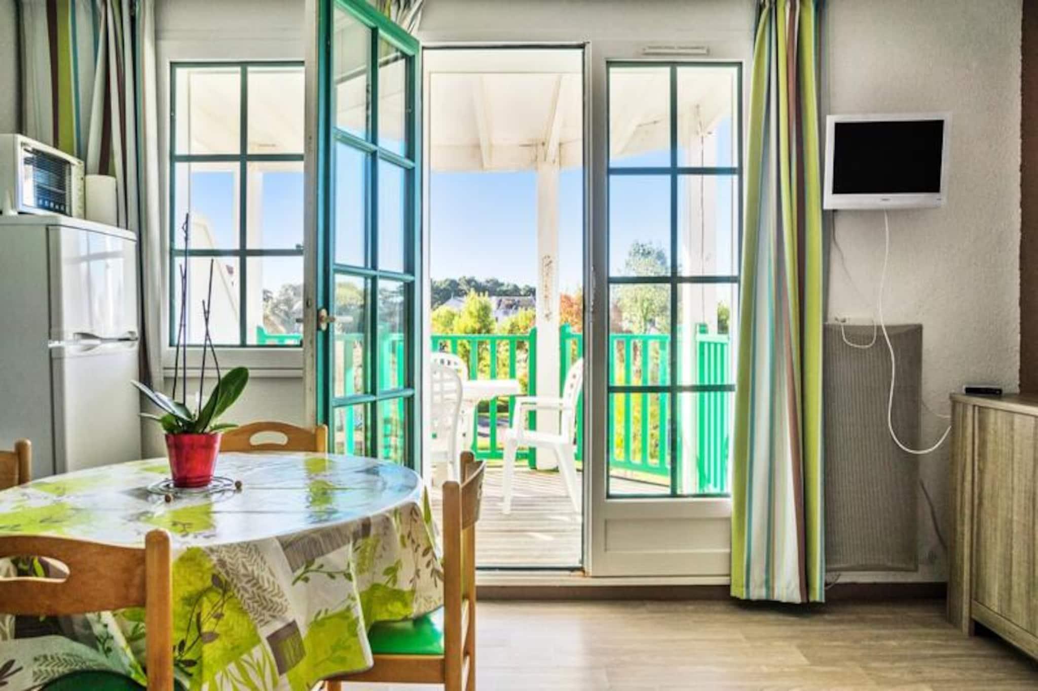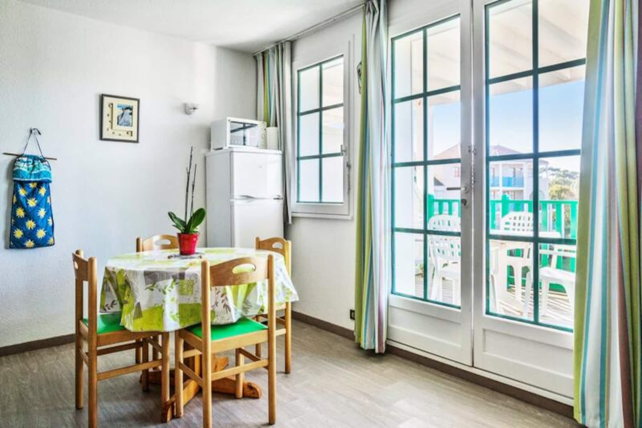 Denne komfortable lejlighed i et naturskønt boligområde kan rumme op til 4 gæster. I stuen er der en sovesofa med plads til 2, og soveværelset har en dobbeltseng. Kæledyr er tilladt i visse boliger mod ekstra gebyrer, og tjenester såsom sengelinned og håndklæder er tilgængelige mod et ekstra gebyr. Lejligheden har en møbleret balkon med bord og stole, perfekt til at nyde den sydvendte udsigt over landsbyen og søen. Der opkræves et obligatorisk slutrengøringsgebyr. Beliggende kun 300 meter fra butikker og aktiviteter, tilbyder boligen nem adgang til lokale faciliteter, herunder et pizzeria, bageri og bar/isbar. Den omkringliggende 90 hektar store ejendom, omgivet af en fyrreskov, giver direkte adgang til en rolig sø, ideel til afslapning. Gæsterne kan også nyde den nærliggende Veillon-strand, kun 2,5 km væk, med forskellige vandsportsaktiviteter og aktiviteter. For dem, der søger mere eventyr, byder området på to 18-hullers golfbaner, tennis og minigolf. Lejligheden har et veludstyret køkkenområde, åbent til stuen, med en mikrobølgeovn og vigtige apparater. Badeværelset har badekar og separat toilet. Gæsterne kan drage fordel af hotellets swimmingpools, herunder en centerpool med rutsjebaner, et soppebassin og vandspil. Gratis udækket parkering er tilgængelig, og wifi er tilgængeligt mod et ekstra gebyr.