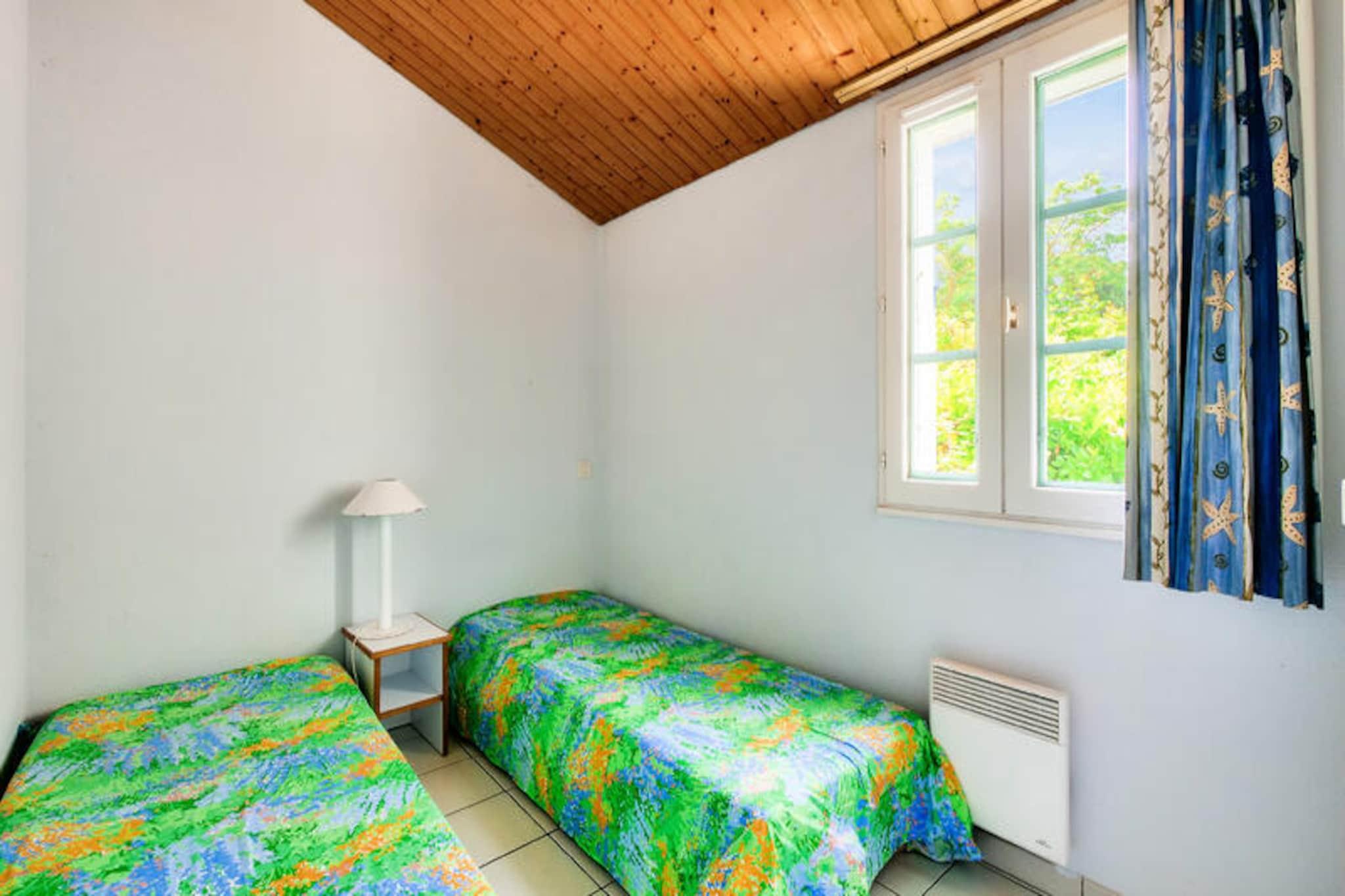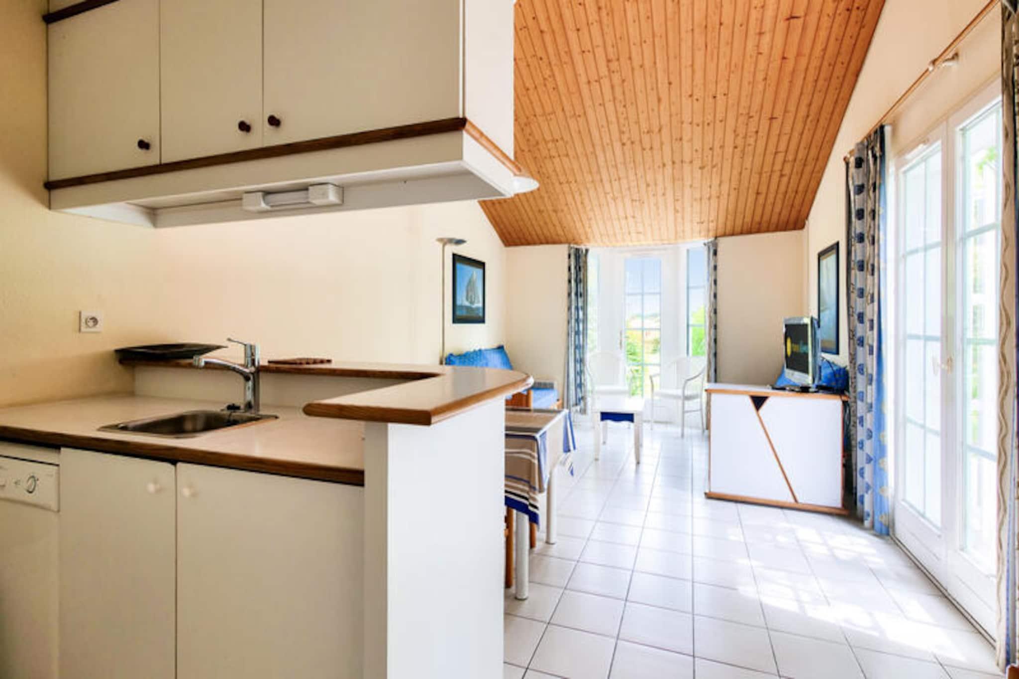 La Résidence Port Bourgenay - maeva Home está situada en Talmont-Saint-Hilaire, en la región de Vendée, a solo 9 km de Les Sables-d'Olonne. Se trata de una auténtica finca de 90 hectáreas rodeada de un pinar y con vistas directas a un lago. La residencia peatonal está dividida en cinco distritos y ofrece tiendas donde encontrará todo lo necesario para unas vacaciones cómodas y relajantes. Puedes llegar al océano a pie o en bicicleta a través del pinar, el Talmondaise (lanzadera) también puede dejarte en la playa de Veillon, situada a 2,5 km, donde podrás disfrutar de numerosas actividades. La residencia también cuenta con 3 piscinas y una zona acuática con tobogán. Fechas de apertura: La piscina del centro: del 27/04 al 12/09 La piscina del Moulin: del 15/06 al 08/09 La piscina de Bocage: del 15/06 al 02/09 En el sitio: Pizzería, panadería, bar/heladería. (Estos servicios son independientes de la residencia) Los alojamientos de Maeva Home son alquileres privados totalmente equipados ubicados dentro de la residencia. Limpieza adicional: A realizar al final de la estancia, ya sea por parte del cliente o pagando el servicio en el momento de la reserva, en el pre-check-in o a la llegada. Se beneficiará de las ventajas y servicios a la carta según sus deseos. Entretenimiento y ocio (cargo adicional): * Dos campos de golf de 18 hoyos * Tenis, minigolf Su alquiler vacacional incluye: 1 sala de estar, 1 cocina, 2 dormitorios, 1 baño, 1 aseo independiente, 1 terraza y 1 plaza de aparcamiento. Las ventajas de su alquiler: Apartamento a pocos metros de las actividades y con terraza amueblada, orientado al Suroeste y con vistas al Golf. Superficie: 40m². Ubicación : Planta de alojamiento: Planta baja Distancia a pistas/mar: >500m Distancia comercial: >500m Actividades a distancia: <100m Número de niveles de vivienda: Una sola planta Composición del salón: Sofá cama del salón: 2 Cama nido Salón: 1 Plazas para sentarse en el sofá: 4 Mesa de centro: Sí Lado de la comida: Tipo de cocina: americana Composición de las habitaciones: Dormitorio 1: Cama doble: 1 Dormitorio 2: Cama individual: 2 Composición del baño: Número de baño: 1 Número de baños separados: 1 Baño principal: Tipo de baño: Bañera con columna Una toma de corriente libre cerca del espejo: Sí Perchero(s) o secador de toallas sin calefacción: Sí Espacio(s) de almacenamiento (sin incluir el estante debajo del espejo y el tocador): Sí Secador de pelo eléctrico: Sí Exteriores: Terraza: Descubrimiento Terraza opuesta: Sí Orientación de la terraza: Sur - Oeste Vista al jardín: Vista al golf Orientación del jardín: Sur - Oeste Tipo de Aparcamiento: Exterior Etiqueta de selección de hogar maeva: Apartamentos mantenidos, al día y con equipamiento de calidad. Para unas vacaciones exitosas y confortables. Acceso Wifi - Con suplemento - sujeto a disponibilidad. Se admiten mascotas - Además, consulte directamente con la residencia para conocer los precios (permitidos para determinados alojamientos). Kit Bebé - Sujeto a disponibilidad: 1 cuna plegable (norma NF EN 716), 1 cochecito (el contenido puede variar según la residencia) - precios a consultar en recepción. Ropa de cama - Con coste adicional - El contenido puede variar según la residencia: sábana bajera, sábana o funda nórdica y funda de almohada. Toallas - Cargo extra. Posibilidad de cambio de ropa de diario disponible, consultar precios en recepción. Limpieza final de estancia - Servicio de limpieza obligatorio a pagar al realizar el check-in o a la llegada. Aparcamiento - gratuito descubierto situado en la residencia. Piscina - Incluida. En el centro de la residencia encontrará: Piscinas climatizadas, toboganes y piscina infantil con juegos acuáticos. Información de la agencia maeva Home. Fecha de apertura: 29/04 al 15/09, accesible a todos Tobogán y piscina supervisados ??únicamente del 01/07 al 31/08 Tasa turística (cargo adicional) - El pago de la tasa turística se realiza a través de su espacio personal: https://mon-compte.maeva.com, el importe varía según la ubicación. Gratis para menores de 18 años. Televisión - Dependiendo de tu alojamiento Depósito (en euros) - 600 Limpieza final de estancia - Servicio de limpieza obligatorio a pagar al realizar el check-in o a la llegada. Ropa de cama - Cargo adicional.