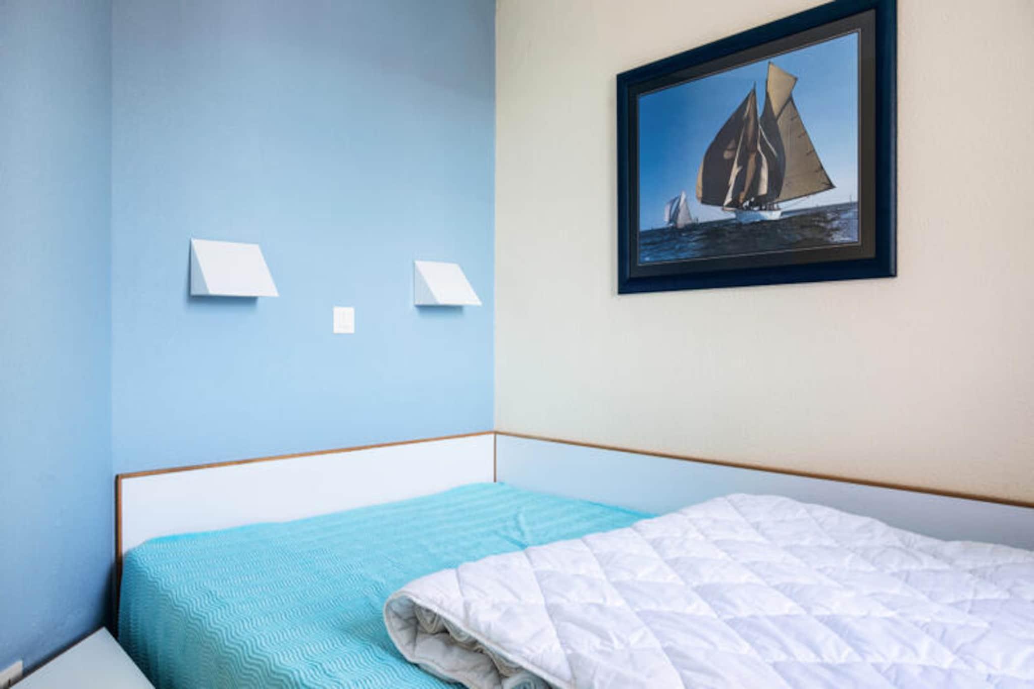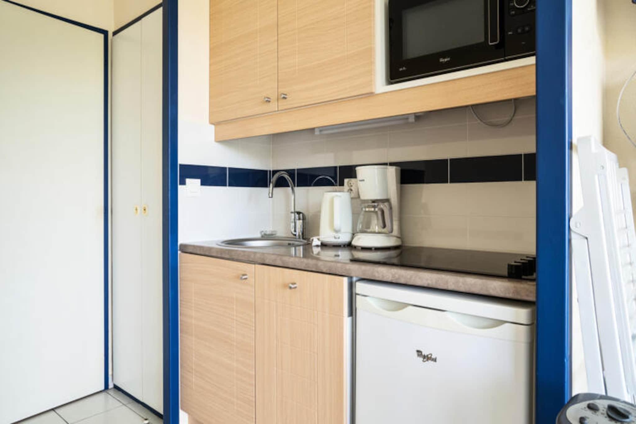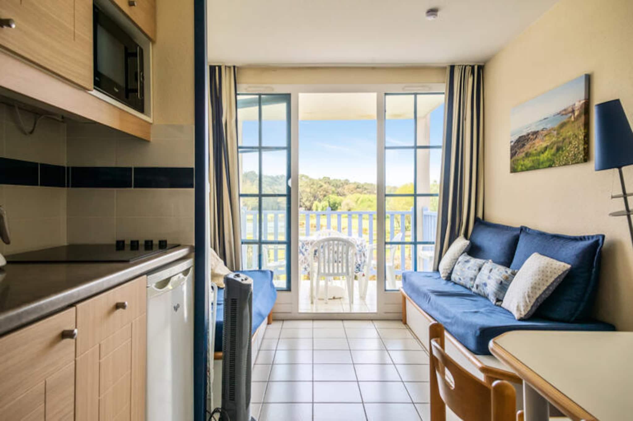 Dette lejlighedskompleks tilbyder fuldt udstyrede lejligheder med 1 soveværelse, perfekt til en afslappende ferie. Hver enhed har en stue med en dobbelt sovesofa og en udtræksseng, der kan rumme op til fem gæster. De har også et separat soveværelse med dobbeltseng, et badeværelse med bruser eller badekar og en privat balkon med bord og stole. Ejendommen tillader kæledyr mod et ekstra gebyr (tjek direkte med boligen). Beliggende på en 90 hektar stor ejendom omgivet af en fyrreskov, byder komplekset på en afslappet atmosfære og nem adgang til naturen. Gæsterne kan slentre eller cykle gennem skoven til stranden eller tage en gratis transport. Faciliteterne på stedet inkluderer et pizzeria, bageri og bar/isbar, hvilket eliminerer behovet for at vove sig langt for at spise. Tre swimmingpools med varierende åbningsdatoer i løbet af sommeren byder på vandsport for alle aldre. Derudover kan gæsterne nyde adgang til to 18-hullers golfbaner, tennisbaner og minigolf (alt sammen mod et ekstra gebyr). Lejligheden har et køkken åbent til stuen, perfekt til at piske måltider op. Gæster kan også drage fordel af valgfri tjenester som wifi, leje af babysæt, leje af sengelinned og håndklæder og daglige skift af sengetøj (alt sammen mod et ekstra gebyr). Slutrengøring er obligatorisk og skal betales ved indtjekning. Der er gratis parkering på stedet.