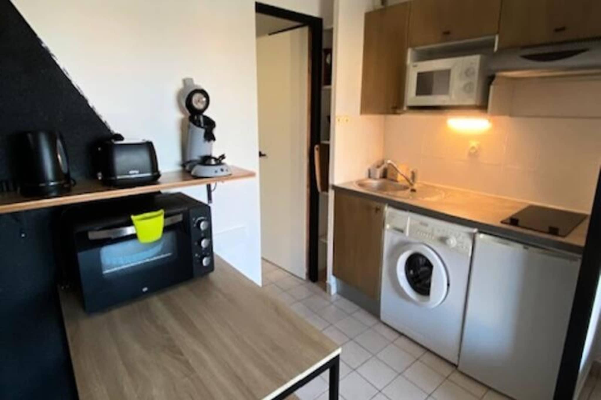 La Résidence Port Bourgenay - maeva Home está situada en Talmont-Saint-Hilaire, en la región de Vendée, a solo 9 km de Les Sables-d'Olonne. Se trata de una auténtica finca de 90 hectáreas rodeada de un pinar y con vistas directas a un lago. La residencia peatonal está dividida en cinco distritos y ofrece tiendas donde encontrará todo lo necesario para unas vacaciones cómodas y relajantes. Puedes llegar al océano a pie o en bicicleta a través del pinar, el Talmondaise (lanzadera) también puede dejarte en la playa de Veillon, situada a 2,5 km, donde podrás disfrutar de numerosas actividades. La residencia también cuenta con 3 piscinas y una zona acuática con tobogán. Fechas de apertura: La piscina del centro: del 27/04 al 12/09 La piscina del Moulin: del 15/06 al 08/09 La piscina de Bocage: del 15/06 al 02/09 En el sitio: Pizzería, panadería, bar/heladería. (Estos servicios son independientes de la residencia) Los alojamientos de Maeva Home son alquileres privados totalmente equipados ubicados dentro de la residencia. Limpieza adicional: A realizar al final de la estancia, ya sea por parte del cliente o pagando el servicio en el momento de la reserva, en el pre-check-in o a la llegada. Se beneficiará de las ventajas y servicios a la carta según sus deseos. Entretenimiento y ocio (cargo adicional): * Dos campos de golf de 18 hoyos * Tenis, minigolf Su alquiler vacacional incluye: 1 salón, 1 zona de cabina, 1 cocina, 1 baño, 1 aseo y 1 logia. Las ventajas de su alquiler: Estudio que ofrece una galería con vistas al pueblo de Port Bourgenay. Superficie: 35m². Ubicación : Planta de alojamiento: Planta baja Centro de la ciudad o pueblo: Centro del pueblo Distancia a pistas/mar: >500m Distancia comercial: >500m Actividades a distancia: entre 100m y 500m Composición del salón: Sofá cama Salón: 1 Sofá estándar: Sí Plazas para sentarse en el sofá: 3 Mesa de centro: Sí Lado de la comida: Tipo de cocina: americana Mesa en la cocina: Sí Número de sillas en la cocina: 4 Composición de las habitaciones: Cabaña 1: Acceso zona cabina: Sin Puerta Literas: 1 Composición del baño: Baño principal: Tipo de baño: Bañera sin columna Una toma de corriente libre cerca del espejo: Sí Perchero(s) o secador de toallas sin calefacción: Sí WC: Sí Etiqueta de selección de hogar maeva: Apartamentos mantenidos, al día y con equipamiento de calidad. Para unas vacaciones exitosas y confortables. Acceso Wifi - Con suplemento - sujeto a disponibilidad. Se admiten mascotas - Además, consulte directamente con la residencia para conocer los precios (permitidos para determinados alojamientos). Kit Bebé - Sujeto a disponibilidad: 1 cuna plegable (norma NF EN 716), 1 cochecito (el contenido puede variar según la residencia) - precios a consultar en recepción. Ropa de cama - Con coste adicional - El contenido puede variar según la residencia: sábana bajera, sábana o funda nórdica y funda de almohada. Toallas - Cargo extra. Posibilidad de cambio de ropa de diario disponible, consultar precios en recepción. Limpieza final de estancia - Servicio de limpieza obligatorio a pagar al realizar el check-in o a la llegada. Aparcamiento - gratuito descubierto situado en la residencia. Piscina - Incluida. En el centro de la residencia encontrará: Piscinas climatizadas, toboganes y piscina infantil con juegos acuáticos. Información de la agencia maeva Home. Fecha de apertura: 29/04 al 15/09, accesible a todos Tobogán y piscina supervisados ??únicamente del 01/07 al 31/08 Tasa turística (cargo adicional) - El pago de la tasa turística se realiza a través de su espacio personal: https://mon-compte.maeva.com, el importe varía según la ubicación. Gratis para menores de 18 años. Televisión - Dependiendo de tu alojamiento Depósito (en euros) - 400 Ropa de cama - Cargo adicional. Limpieza final de estancia - Servicio de limpieza obligatorio a pagar al realizar el check-in o a la llegada.