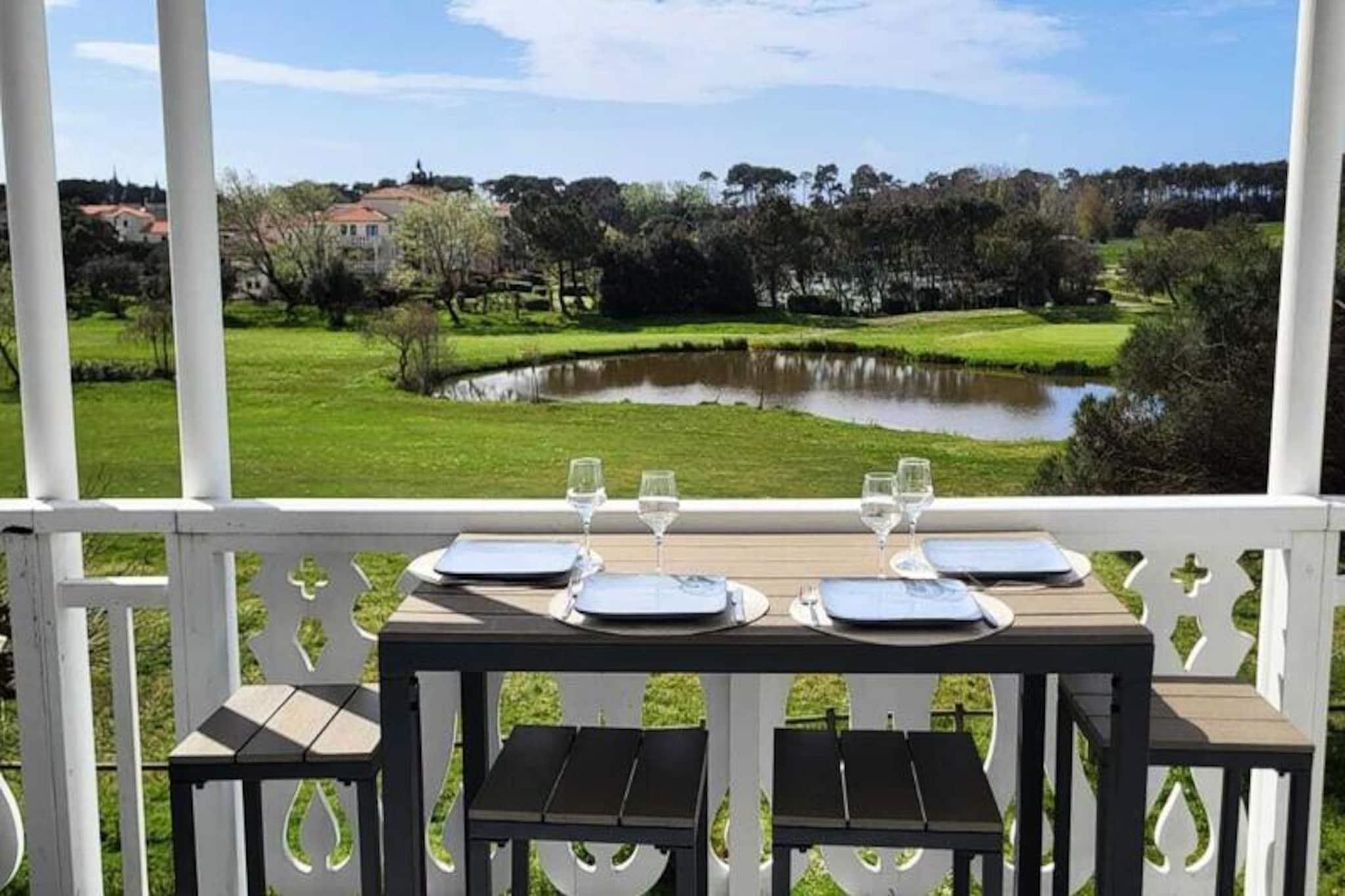 Denne 1-værelses lejlighed er beliggende i et stort feriested i Talmont-Saint-Hilaire, Vendée. Lejligheden tilbyder komfortabel indkvartering for op til 4 gæster, med en stue med en sovesofa, et separat soveværelse med en dobbeltseng og en balkon med udsigt til golfbanen. Nyd at slappe af ved boligens flere pools eller udforsk de nærliggende strande, der er tilgængelige til fods, på cykel eller med shuttle. Dette feriested for fodgængere kan prale af et udvalg af butikker, restauranter og caféer, der tilbyder en bekvem og livlig atmosfære. Det omkringliggende område byder på aktiviteter såsom golf, tennis og minigolf. Lejligheden har et veludstyret køkken, et badeværelse og en balkon. **Bemærk venligst:** Yderligere tjenester som wifi, sengetøj, håndklæder og rengøring er ikke inkluderet og skal betales separat. Kæledyr kan også tillades mod et ekstra gebyr, men du bør forhøre dig direkte med boligen.