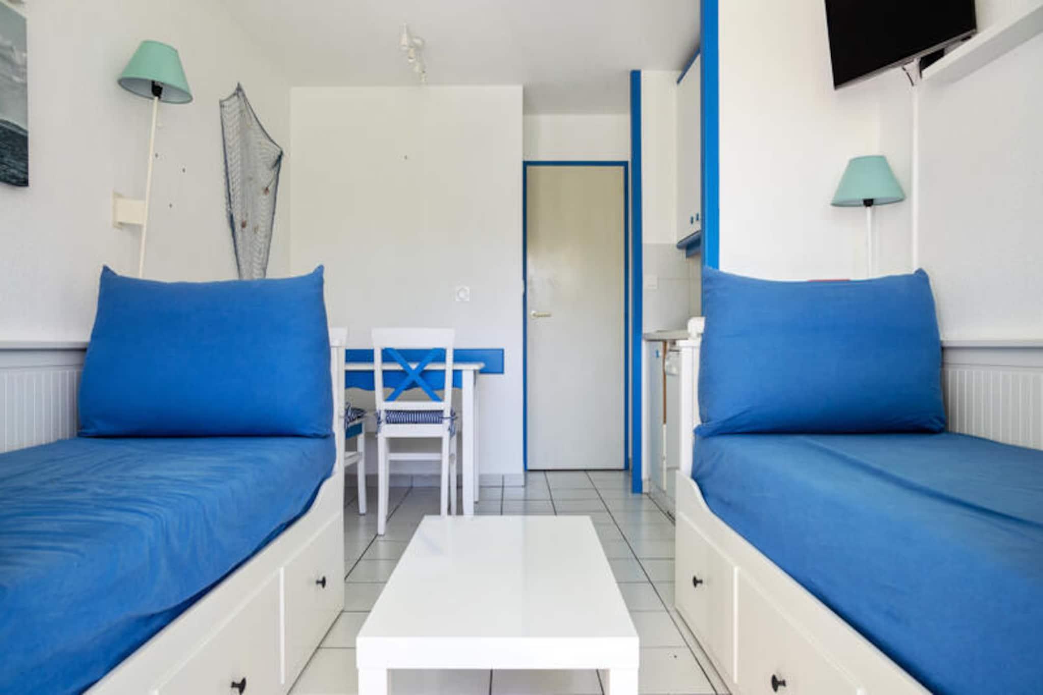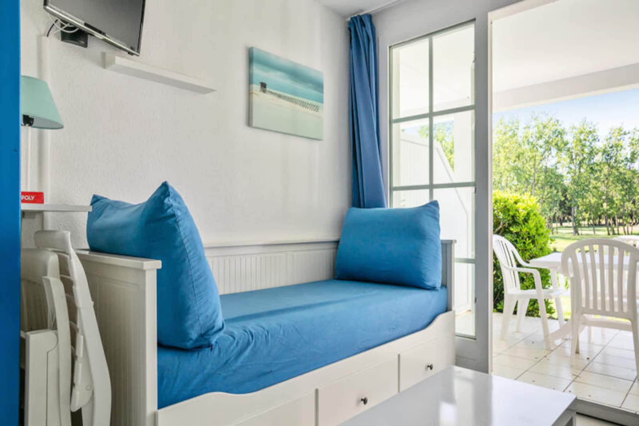 Beliggende i hjertet af en 90 hektar stor ejendom omgivet af en rolig fyrreskov og med udsigt over en fredfyldt sø, tilbyder denne indbydende lejlighed en ideel ramme for en afslappende ferie. Den kæledyrsvenlige ejendom har en hyggelig opholdsstue med to udtrækssenge, et kabineområde med to enkeltkøjesenge og en privat terrasse til at nyde udendørs. Gæsterne kan drage fordel af det sæsonåbne swimmingpoolkompleks, som omfatter opvarmede pools, rutsjebaner og et soppebassin, hvilket sikrer sjov for alle aldre. Ejendommen er perfekt placeret til at udforske Vendée-regionen, kun 2,5 km fra Veillon-stranden, der er tilgængelig til fods, på cykel eller med shuttle. Fodgængerboligen kan også prale af butikker, et pizzeria, et bageri og en bar/isbar, der tilbyder bekvemmelighed og lokale smagsoplevelser. Golfentusiaster vil sætte pris på de to 18-hullers golfbaner i nærheden, mens familier kan nyde tennis, minigolf og områdets naturskønne cykelstier. Den travle by Les Sables-d'Olonne, som ligger 9 km væk, byder på yderligere attraktioner, markeder og spisemuligheder. Indvendigt har lejligheden et åbent køkken med spiseplads, et badeværelse med badekar og toilet samt nødvendige faciliteter for et behageligt ophold. Valgfrit ekstraudstyr inkluderer WiFi, leje af linned og håndklæder og babysæt, mens gratis parkering sikrer nem adgang. Med sin kombination af bekvemmelighed, rekreation og naturlig skønhed lover denne bolig et mindeværdigt ophold for familier eller par.