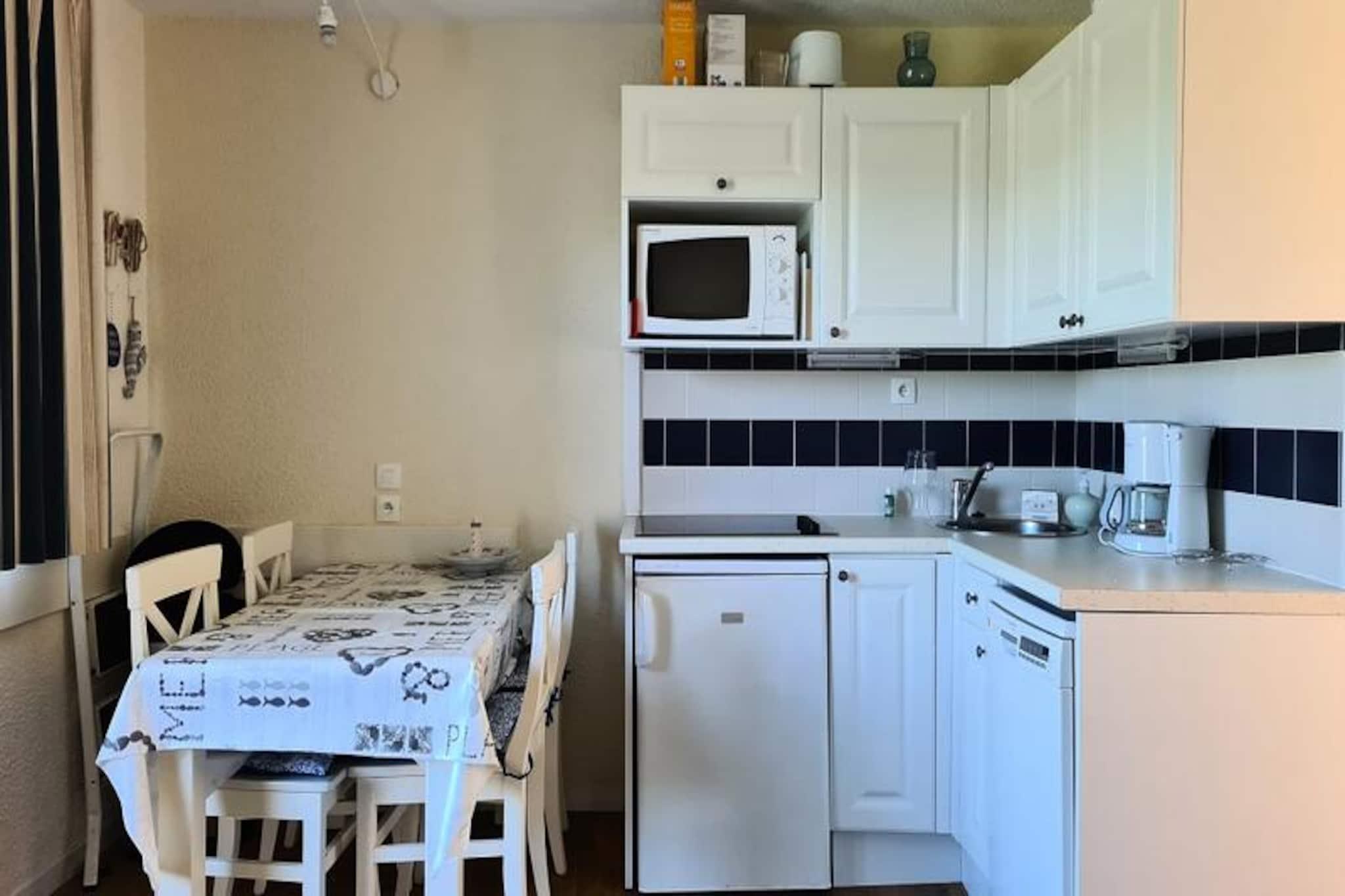 Denne 1-værelses lejlighed er beliggende i en stor, fodgængerferieby i Talmont-Saint-Hilaire, Vendée. Perfekt til en lille familie eller et par, den har en dobbeltseng og en sovesofa i opholdsstuen, der kan rumme op til fire gæster. Beskrivelsen tillader kæledyr i nogle enheder, så sørg for at bekræfte direkte med boligen. Selve boligen kan prale af en 90 hektar stor ejendom omgivet af en fyrreskov, der byder på virkelig naturlige omgivelser. Gæsterne har direkte adgang til en sø og kan nemt nå havet (2,5 km væk) til fods, på cykel eller via en shuttleservice. Boligen har også tre swimmingpools (åbne på bestemte datoer) med rutsjebaner og soppebassiner, ideelt for familier. Faciliteterne på stedet inkluderer et pizzeria, bageri og bar/isbar (alle uafhængigt drevet). Lejligheden er bekvemt beliggende på første sal og har en møbleret altan med vestvendt udsigt over landsbyen. Køkkenet er i amerikansk stil (åbent til stuen), og badeværelset har toilet. Yderligere rengøring, wifi, leje af babysæt, sengelinned, håndklæder og slutrengøring er alle tilgængelige mod et ekstra gebyr. Gratis udækket parkering er tilgængelig i boligen. Komplekset tilbyder forskellige aktiviteter og underholdningsmuligheder (mod et ekstra gebyr) såsom tennis, minigolf og to 18-hullers golfbaner.