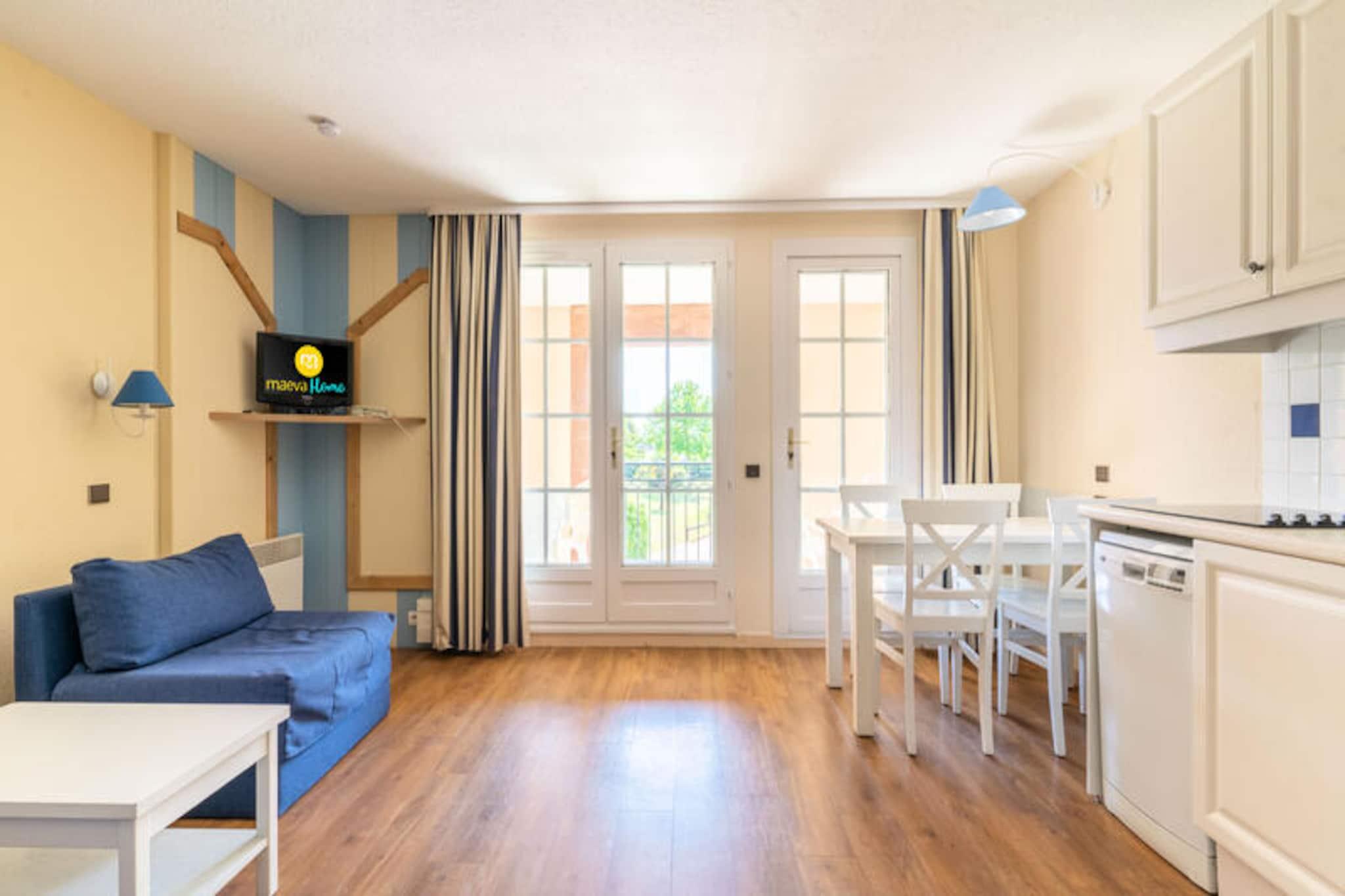 La Résidence Port Bourgenay - maeva Home está situada en Talmont-Saint-Hilaire, en la región de Vendée, a solo 9 km de Les Sables-d'Olonne. Se trata de una auténtica finca de 90 hectáreas rodeada de un pinar y con vistas directas a un lago. La residencia peatonal está dividida en cinco distritos y ofrece tiendas donde encontrará todo lo necesario para unas vacaciones cómodas y relajantes. Puedes llegar al océano a pie o en bicicleta a través del pinar, el Talmondaise (lanzadera) también puede dejarte en la playa de Veillon, situada a 2,5 km, donde podrás disfrutar de numerosas actividades. La residencia también cuenta con 3 piscinas y una zona acuática con tobogán. Fechas de apertura: La piscina del centro: del 27/04 al 12/09 La piscina del Moulin: del 15/06 al 08/09 La piscina de Bocage: del 15/06 al 02/09 En el sitio: Pizzería, panadería, bar/heladería. (Estos servicios son independientes de la residencia) Los alojamientos de Maeva Home son alquileres privados totalmente equipados ubicados dentro de la residencia. Limpieza adicional: A realizar al final de la estancia, ya sea por parte del cliente o pagando el servicio en el momento de la reserva, en el pre-check-in o a la llegada. Se beneficiará de las ventajas y servicios a la carta según sus deseos. Entretenimiento y ocio (cargo adicional): * Dos campos de golf de 18 hoyos * Tenis, minigolf Su alquiler vacacional incluye: 1 salón, 1 cocina, 1 dormitorio, 1 baño, 1 aseo independiente y 1 balcón. Las ventajas de su alquiler: Apartamento con balcón, orientación este con vistas al pueblo. Superficie: 30 m². Ubicación: Planta de alojamiento: 1.er piso, Rue du Lac Acceso a playa o pistas: <100m Centro de la ciudad o pueblo: Centro del pueblo Distancia de las pistas al mar: >500m Distancia comercial: <100m Actividades a distancia: <100m Número de niveles de vivienda: Una sola planta Composición de la estancia: Sofá estándar: Sí Plazas para sentarse en el sofá: 4 Sofá convertible: Sí Número de camas en el sofá convertible: 3 Mesa en el comedor: Sí Número de sillas (o taburetes): 4 Mesa de centro: Sí Chimenea: No Lado de la comida: Tipo de cocina: americana Mesa en la cocina: No Número de sillas en la cocina: No Composición de la habitación: Dormitorio: Dormitorio con camas individuales: 2 Camas dobles en dormitorio: No Literas en dormitorio: No Composición del baño: Estado del baño principal: Buen estado Un inodoro privado dentro del alojamiento: Sí Un segundo baño privado con acceso independiente: No Un segundo inodoro: No Exteriores: Balcón: Sí Balcón opuesto: No Vista balcón: Pueblo Orientación del balcón: Este Terraza: No Terraza opuesta: No Vista terraza: No Orientación terraza: No Jardín: No Con vistas al jardín: No Vista al jardín: No Orientación jardín: No Aparcamiento dedicado al alojamiento: No Tipo de Estacionamiento: Cubierto ¿Cómo describiría la luminosidad del alojamiento en su conjunto? : Normal Etiqueta de selección de hogar maeva: Apartamentos mantenidos, al día y con equipamiento de calidad. Para unas vacaciones exitosas y confortables. Acceso Wifi - Con suplemento - sujeto a disponibilidad. Se admiten mascotas - Además, consulte directamente con la residencia para conocer los precios (permitidos para determinados alojamientos). Kit Bebé - Sujeto a disponibilidad: 1 cuna plegable (norma NF EN 716), 1 cochecito (el contenido puede variar según la residencia) - precios a consultar en recepción. Ropa de cama - Con coste adicional - El contenido puede variar según la residencia: sábana bajera, sábana o funda nórdica y funda de almohada. Toallas - Cargo extra. Posibilidad de cambio de ropa de diario disponible, consultar precios en recepción. Limpieza final de estancia - Servicio de limpieza obligatorio a pagar al realizar el check-in o a la llegada. Aparcamiento - gratuito descubierto situado en la residencia. Piscina - Incluida. En el centro de la residencia encontrará: Piscinas climatizadas, toboganes y piscina infantil con juegos acuáticos. Información de la agencia maeva Home. Fecha de apertura: 29/04 al 15/09, accesible a todos Tobogán y piscina supervisados ??únicamente del 01/07 al 31/08 Tasa turística (cargo adicional) - El pago de la tasa turística se realiza a través de su espacio personal: https://mon-compte.maeva.com, el importe varía según la ubicación. Gratis para menores de 18 años. Televisión - Dependiendo de tu alojamiento Depósito (en euros) - 500 Limpieza final de estancia - Servicio de limpieza obligatorio a pagar al realizar el check-in o a la llegada. Ropa de cama - Cargo adicional.