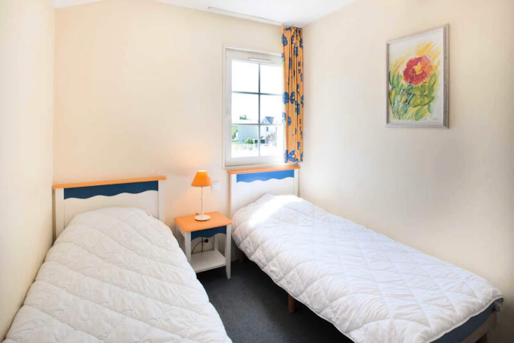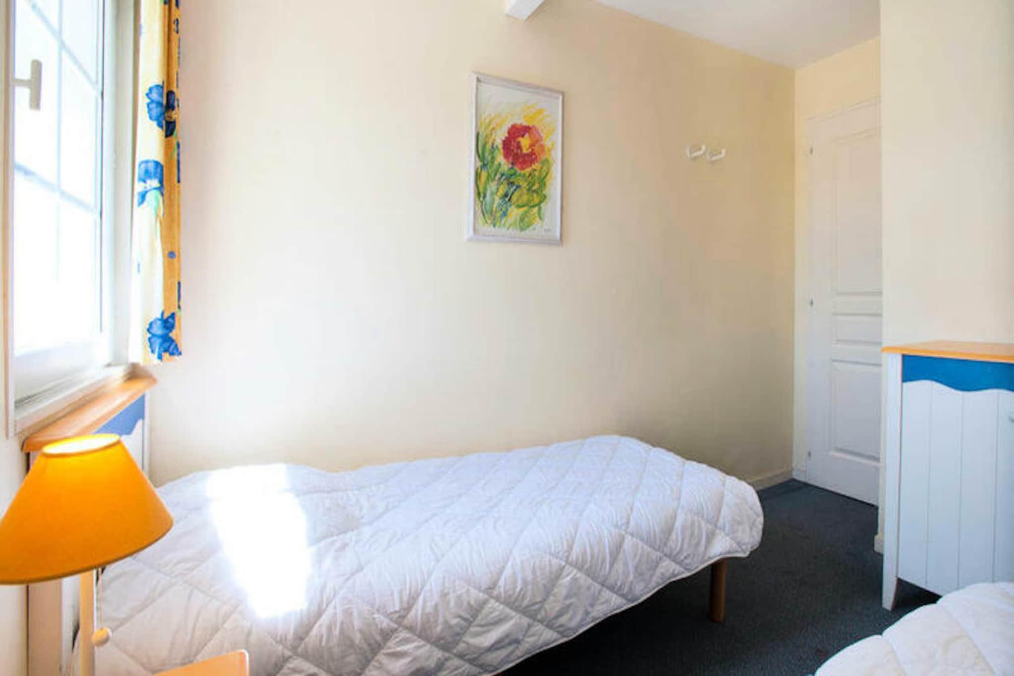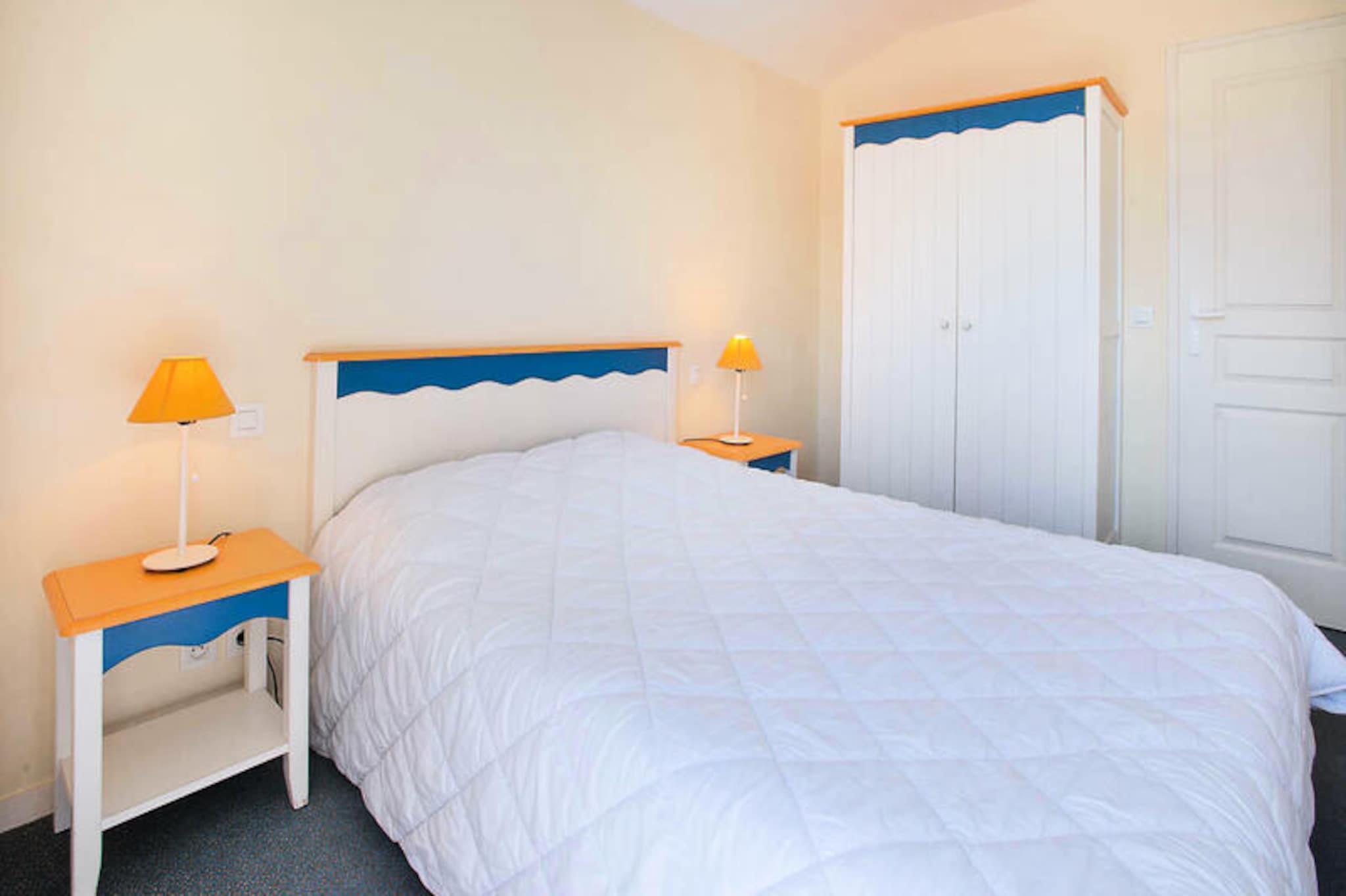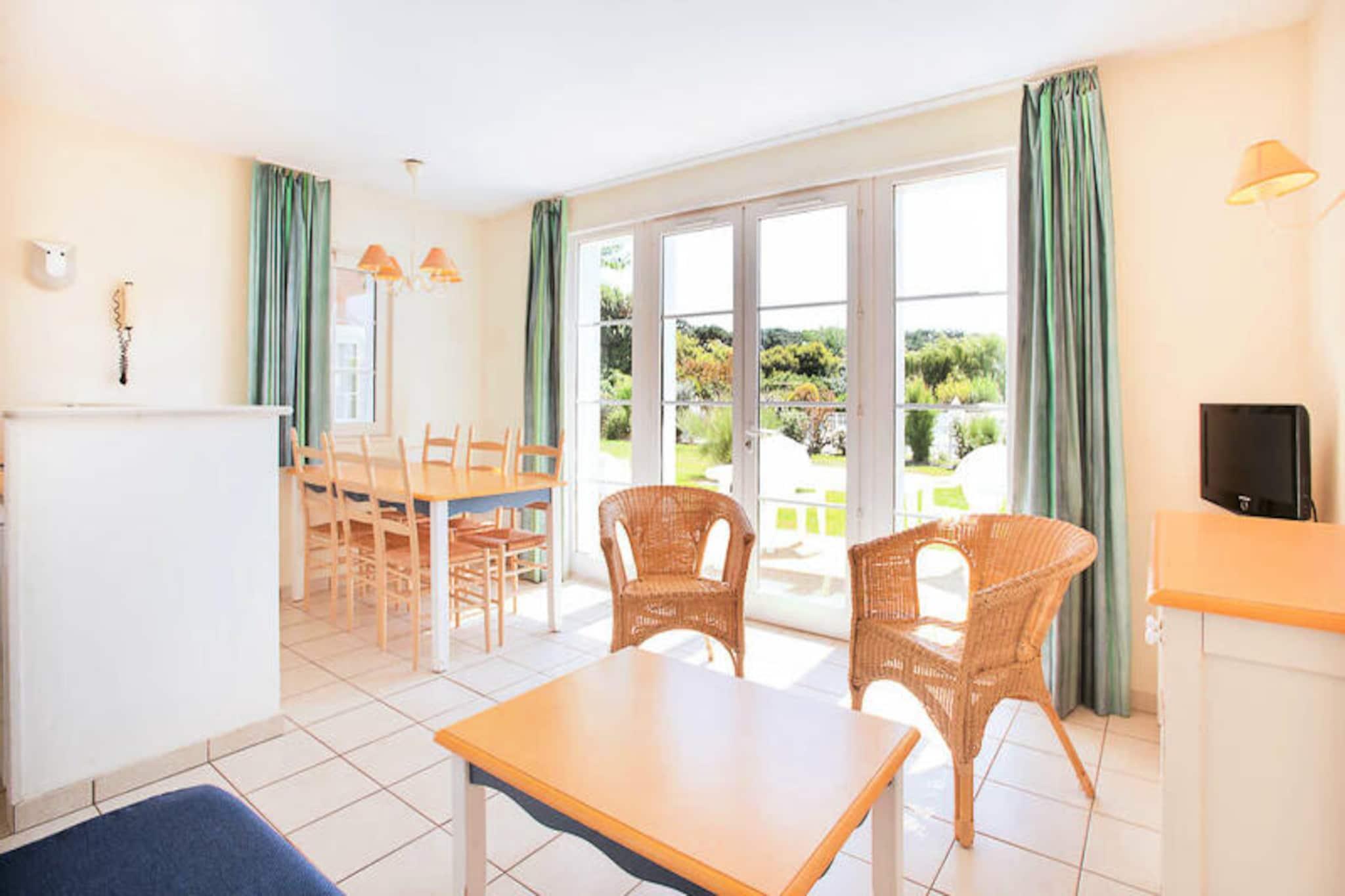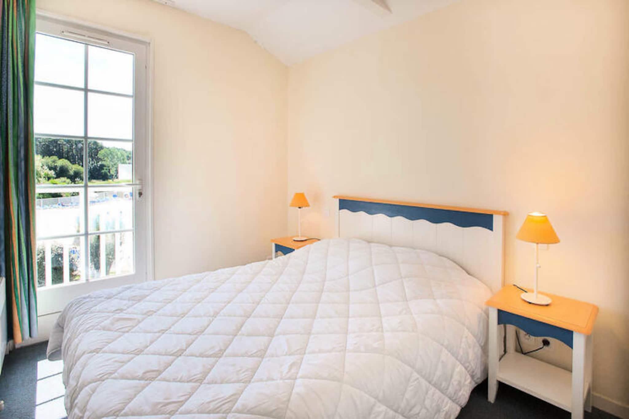 Dette feriehus på 35 m² er perfekt til op til 6 personer og er beliggende i en fredfyldt 90 hektar stor fodgængerlandsby. Indkvarteringen indeholder to soveværelser, det ene med en dobbeltseng og det andet med to enkeltsenge. Stuen har en sovesofa, og en privat terrasse har udsigt over den omkringliggende fyrreskov. Kæledyr er tilladt mod tillægsgebyr, og et babysæt er tilgængeligt efter anmodning. Ejendommen tilbyder gratis, udækket parkering og WiFi mod et tillægsgebyr. Boligen ligger kun 2,5 km fra Veillon-stranden, som er tilgængelig til fods, på cykel eller med shuttle. I nærheden kan du nyde adskillige aktiviteter såsom svømning, beachvolley og golf på to 18-hullers baner. Boligen har også et bageri, pizzeria og bar/isbar. For en afslappende oplevelse er Miramar Crouesty Thalassoterapi-center i nærheden. Indvendigt er feriehuset udstyret med halvåbent køkken, spiseplads og et velholdt badeværelse. Køkkenet er perfekt til at tilberede måltider, og der er et spisebord til at nyde dem. Det største badeværelse har et privat vandkloset. Gæsterne har adgang til tre swimmingpools, herunder en med rutsjebaner, og et opvarmet soppebassin, der er tilgængeligt fra slutningen af ??april til september.