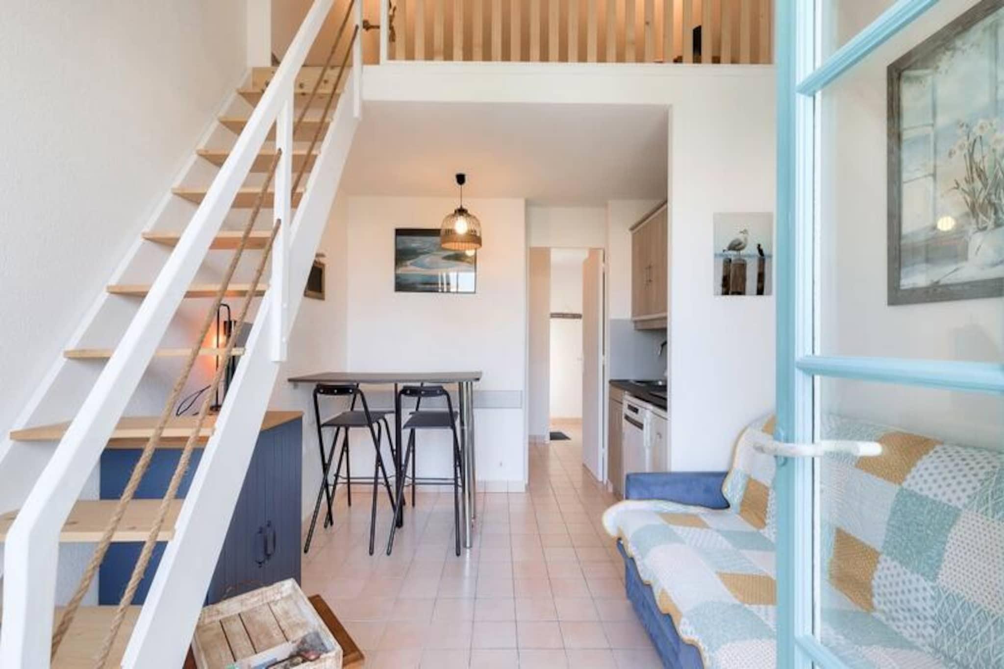 La Résidence Port Bourgenay - maeva Home está situada en Talmont-Saint-Hilaire, en la región de Vendée, a solo 9 km de Les Sables-d'Olonne. Se trata de una auténtica finca de 90 hectáreas rodeada de un pinar y con vistas directas a un lago. La residencia peatonal está dividida en cinco distritos y ofrece tiendas donde encontrará todo lo necesario para unas vacaciones cómodas y relajantes. Puedes llegar al océano a pie o en bicicleta a través del pinar, el Talmondaise (lanzadera) también puede dejarte en la playa de Veillon, situada a 2,5 km, donde podrás disfrutar de numerosas actividades. La residencia también cuenta con 3 piscinas y una zona acuática con tobogán. Fechas de apertura: La piscina del centro: del 27/04 al 12/09 La piscina del Moulin: del 15/06 al 08/09 La piscina de Bocage: del 15/06 al 02/09 En el sitio: Pizzería, panadería, bar/heladería. (Estos servicios son independientes de la residencia) Los alojamientos de Maeva Home son alquileres privados totalmente equipados ubicados dentro de la residencia. Limpieza adicional: A realizar al final de la estancia, ya sea por parte del cliente o pagando el servicio en el momento de la reserva, en el pre-check-in o a la llegada. Se beneficiará de las ventajas y servicios a la carta según sus deseos. Entretenimiento y ocio (cargo adicional): * Dos campos de golf de 18 hoyos * Tenis, minigolf Su alquiler vacacional incluye: 1 sala, 1 área de cabañas, 1 entrepiso, 1 cocina, 1 baño, 1 baño balcón, 1 terraza. Las ventajas de su alquiler: Estudio para 6 personas con altillo, en planta baja con terraza y balcón. Superficie: 25m². Ubicación: Planta de alojamiento: Planta baja Distancia de las pistas al mar: >500m Distancia al negocio: >500m Actividades a distancia: >500m Número de niveles de vivienda: Una sola planta Composición de la estancia: Sofá cama Salón: 1 Mesa de centro: Sí Lado de la comida: Tipo de cocina: americana Come de pie con 6 sillas. Composición de las habitaciones: Acceso esquina cabina C1: Sin puerta Literas C1: 1 Mezzanine: 1 cama doble (escalera estrecha) Composición del baño: Número de baño: 1 Tipo de baño 1: Bañera con columna Estado del baño principal: Buen estado Una toma de corriente libre cerca del espejo 1: Sí Perchero(s) o secador de toallas sin calefacción 1: Sí Espacio(s) de almacenamiento (sin incluir el estante debajo del espejo y el tocador) 1: Sí Baño 1: Sí Exteriores: Balcón: Sí Vista al balcón: Otro Orientación del balcón: Oeste Terraza: Cubierta ¿Cómo describiría la luminosidad del alojamiento en su conjunto? : Brillante Etiqueta de selección de hogar maeva: Apartamentos mantenidos, al día y con equipamiento de calidad. Para unas vacaciones exitosas y confortables. Acceso Wifi - Con suplemento - sujeto a disponibilidad. Se admiten mascotas - Además, consulte directamente con la residencia para conocer los precios (permitidos para determinados alojamientos). Kit Bebé - Sujeto a disponibilidad: 1 cuna plegable (norma NF EN 716), 1 cochecito (el contenido puede variar según la residencia) - precios a consultar en recepción. Ropa de cama - Con coste adicional - El contenido puede variar según la residencia: sábana bajera, sábana o funda nórdica y funda de almohada. Toallas - Cargo extra. Posibilidad de cambio de ropa de diario disponible, consultar precios en recepción. Limpieza final de estancia - Servicio de limpieza obligatorio a pagar al realizar el check-in o a la llegada. Aparcamiento - gratuito descubierto situado en la residencia. Piscina - Incluida. En el centro de la residencia encontrará: Piscinas climatizadas, toboganes y piscina infantil con juegos acuáticos. Información de la agencia maeva Home. Fecha de apertura: 29/04 al 15/09, accesible a todos Tobogán y piscina supervisados ??únicamente del 01/07 al 31/08 Tasa turística (cargo adicional) - El pago de la tasa turística se realiza a través de su espacio personal: https://mon-compte.maeva.com, el importe varía según la ubicación. Gratis para menores de 18 años. Televisión - Dependiendo de tu alojamiento Depósito (en euros) - 400 Limpieza final de estancia - Servicio de limpieza obligatorio a pagar al realizar el check-in o a la llegada. Ropa de cama - Cargo adicional.