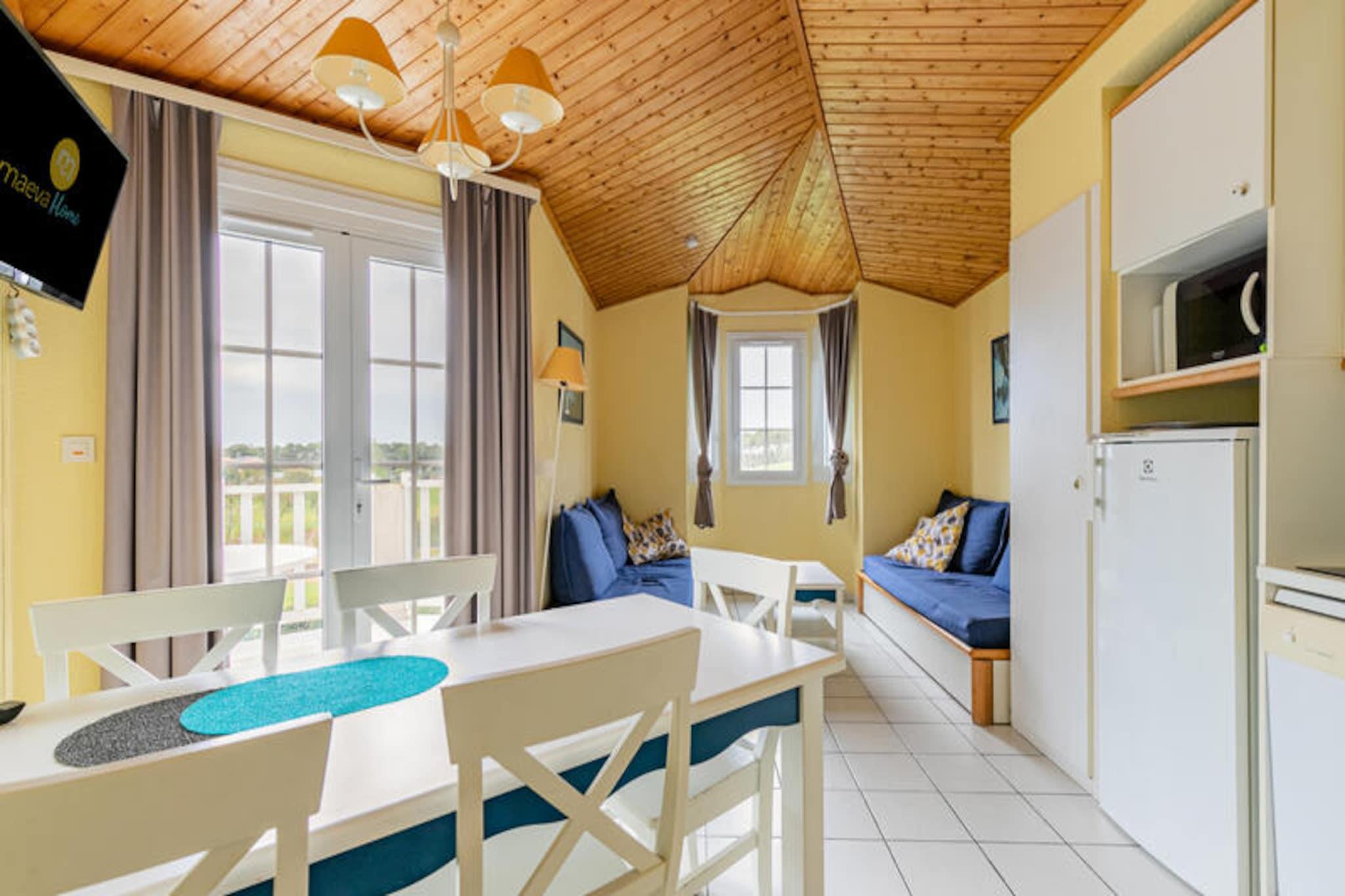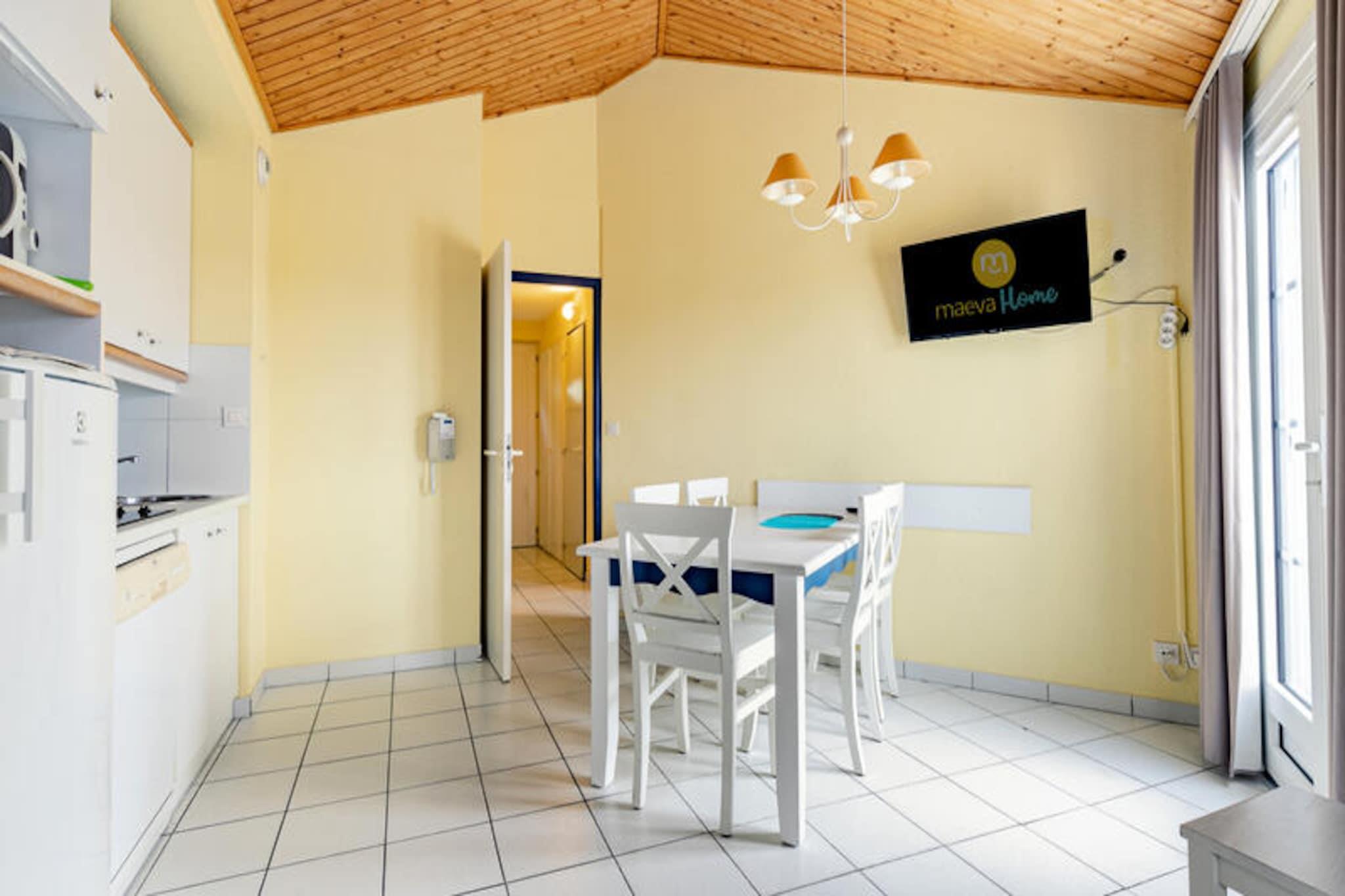 La Résidence Port Bourgenay - maeva Home está situada en Talmont-Saint-Hilaire, en la región de Vendée, a solo 9 km de Les Sables-d'Olonne. Se trata de una auténtica finca de 90 hectáreas rodeada de un pinar y con vistas directas a un lago. La residencia peatonal está dividida en cinco distritos y ofrece tiendas donde encontrará todo lo necesario para unas vacaciones cómodas y relajantes. Puedes llegar al océano a pie o en bicicleta a través del pinar, el Talmondaise (lanzadera) también puede dejarte en la playa de Veillon, situada a 2,5 km, donde podrás disfrutar de numerosas actividades. La residencia también cuenta con 3 piscinas y una zona acuática con tobogán. Fechas de apertura: La piscina del centro: del 27/04 al 12/09 La piscina del Moulin: del 15/06 al 08/09 La piscina de Bocage: del 15/06 al 02/09 En el sitio: Pizzería, panadería, bar/heladería. (Estos servicios son independientes de la residencia) Los alojamientos de Maeva Home son alquileres privados totalmente equipados ubicados dentro de la residencia. Limpieza adicional: A realizar al final de la estancia, ya sea por parte del cliente o pagando el servicio en el momento de la reserva, en el pre-check-in o a la llegada. Se beneficiará de las ventajas y servicios a la carta según sus deseos. Entretenimiento y ocio (cargo adicional): * Dos campos de golf de 18 hoyos * Tenis, minigolf Su alquiler vacacional incluye: 1 sala, 1 área de cabaña, 1 cocina, 1 dormitorio, 1 baño, 1 balcón y 1 estacionamiento. Las ventajas de su alquiler: apartamento de 2 habitaciones en una residencia al borde del campo de golf. Tiene un balcón orientado al sur con vistas al pueblo. Superficie: 37 m². Ubicación: Piso de alojamiento: 2do piso Distancia de las pistas al mar: >500m Distancia al negocio: >500m Actividades a distancia: >500m Número de niveles de vivienda: Una sola planta Composición de la estancia: Sofá cama del salón: 2 Cama nido Salón: 1 Plazas para sentarse en el sofá: 2 Mesa en el comedor: Sí Número de sillas (o taburetes): 7 Mesa de centro: Sí Lado de la comida: Tipo de cocina: Semiabierta Composición de las habitaciones: Dormitorio 1: Camas dobles dormitorio 1:1 Acceso esquina cabina C1: Con puerta Literas C1: 1 Composición del baño: Número de baño: 1 Tipo de baño 1: Bañera con columna Estado del baño principal: Buen estado Una toma de corriente libre cerca del espejo 1: Sí Perchero(s) o secador de toallas sin calefacción 1: Sí Secador de toallas eléctrico 1: Sí Espacio(s) de almacenamiento (sin incluir el estante debajo del espejo y el tocador) 1: Sí Baño 1: Sí Exteriores: Balcón: Sí Vista balcón: Pueblo Orientación balcón: Sur ¿Cómo describiría la luminosidad del alojamiento en su conjunto? : Brillante Etiqueta de selección de hogar maeva: Apartamentos mantenidos, al día y con equipamiento de calidad. Para unas vacaciones exitosas y confortables. Acceso Wifi - Con suplemento - sujeto a disponibilidad. Se admiten mascotas - Además, consulte directamente con la residencia para conocer los precios (permitidos para determinados alojamientos). Kit Bebé - Sujeto a disponibilidad: 1 cuna plegable (norma NF EN 716), 1 cochecito (el contenido puede variar según la residencia) - precios a consultar en recepción. Ropa de cama - Con coste adicional - El contenido puede variar según la residencia: sábana bajera, sábana o funda nórdica y funda de almohada. Toallas - Cargo extra. Posibilidad de cambio de ropa de diario disponible, consultar precios en recepción. Limpieza final de estancia - Servicio de limpieza obligatorio a pagar al realizar el check-in o a la llegada. Aparcamiento - gratuito descubierto situado en la residencia. Piscina - Incluida. En el centro de la residencia encontrará: Piscinas climatizadas, toboganes y piscina infantil con juegos acuáticos. Información de la agencia maeva Home. Fecha de apertura: 29/04 al 15/09, accesible a todos Tobogán y piscina supervisados ??únicamente del 01/07 al 31/08 Tasa turística (cargo adicional) - El pago de la tasa turística se realiza a través de su espacio personal: https://mon-compte.maeva.com, el importe varía según la ubicación. Gratis para menores de 18 años. Televisión - Dependiendo de tu alojamiento Depósito (en euros) - 500 Limpieza final de estancia - Servicio de limpieza obligatorio a pagar al realizar el check-in o a la llegada. Ropa de cama - Cargo adicional.