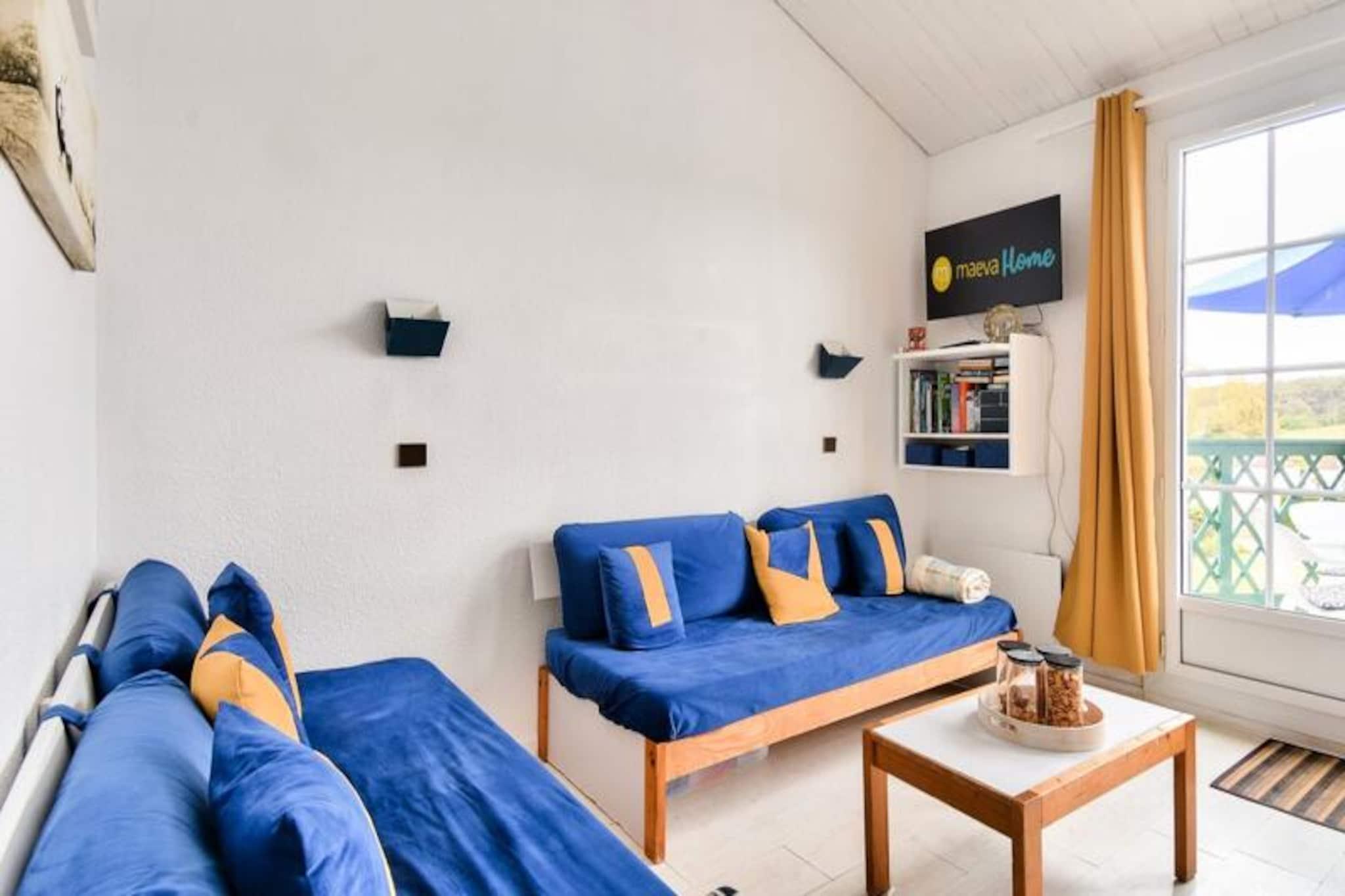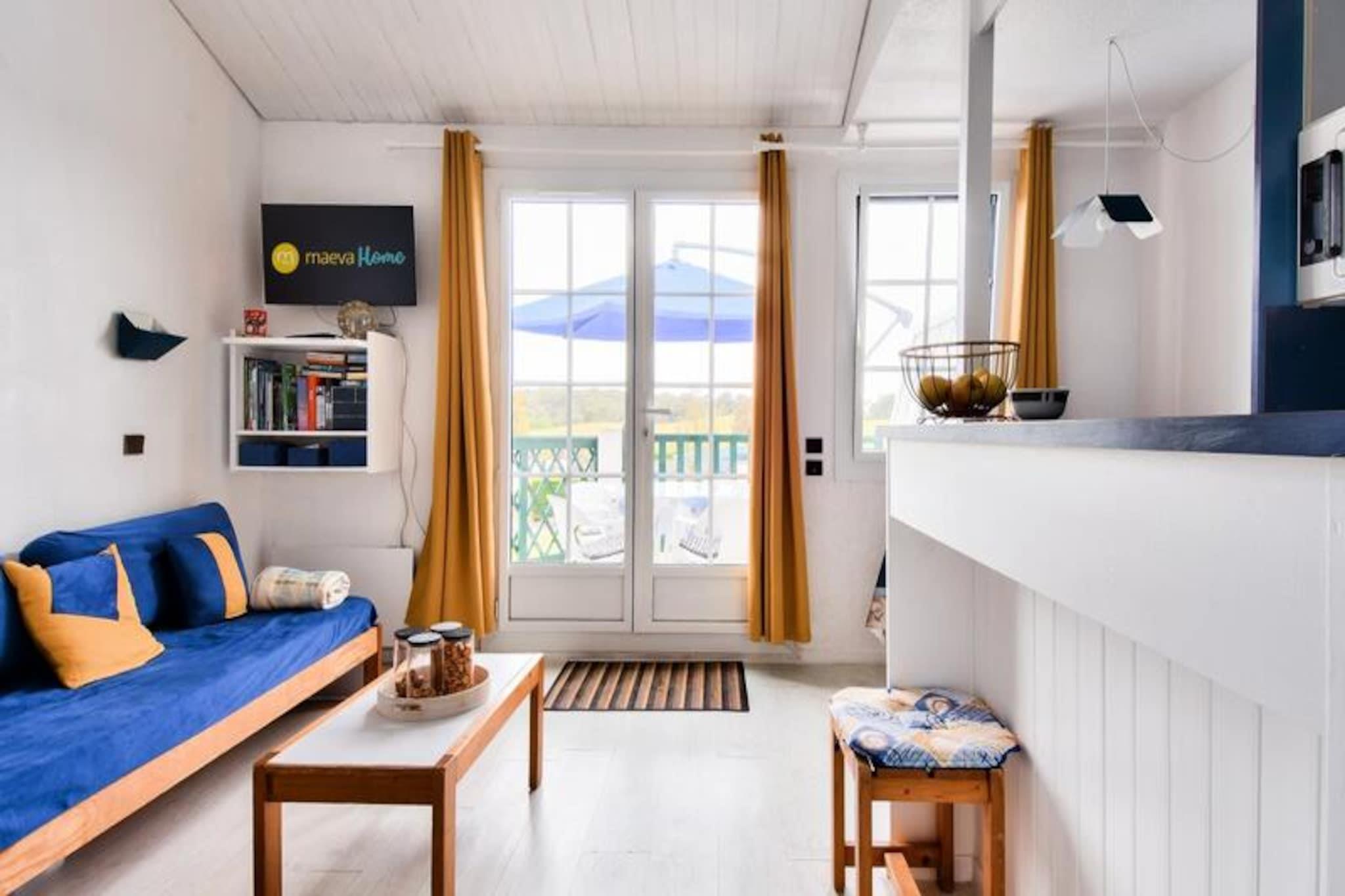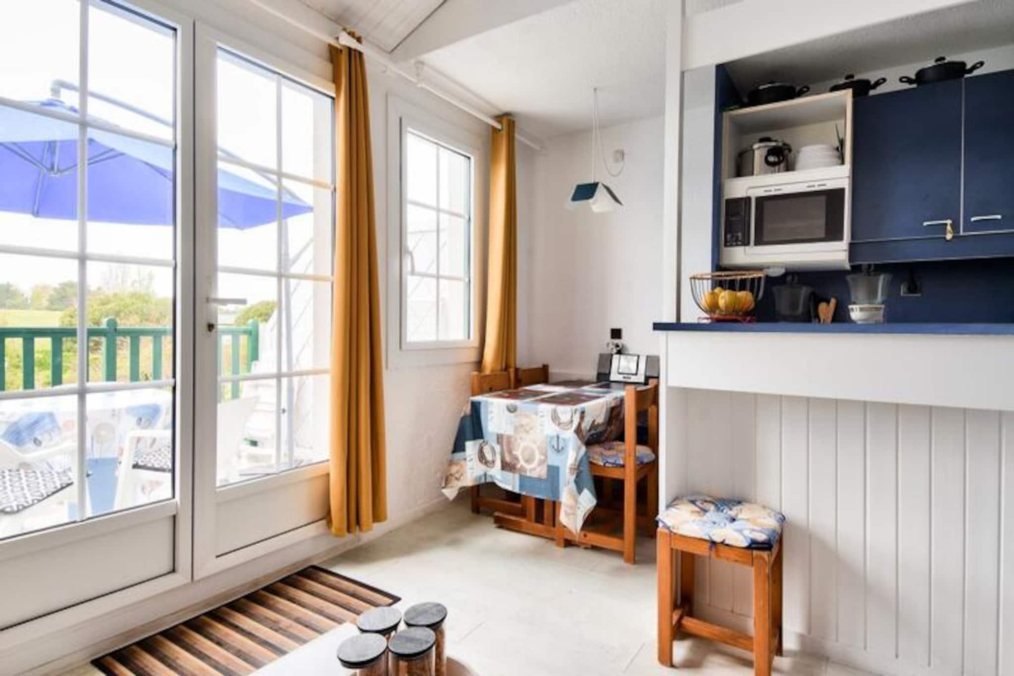 Denne charmerende lejlighed, beliggende i en fodgængerlandsby, tilbyder komfortabel indkvartering for op til 5 personer. Den har en stue med en sovesofa og en dagseng med en trille i soveværelset. Lejligheden er kæledyrsvenlig, så gæsterne kan medbringe deres lodne ledsagere mod et ekstra gebyr. Enheden omfatter et badeværelse med badekar, et separat toilet og alle de nødvendige faciliteter til et afslappende ophold. En privat balkon tilbyder et fredeligt sted at slappe af og nyde den omkringliggende udsigt. Der er gratis parkering på stedet for ekstra bekvemmelighed. Boligen er ideelt beliggende for at udforske områdets naturlige skønhed med adgang til nærliggende aktiviteter, herunder to 18-hullers golfbaner, tennis og minigolf. Gæsterne kan nyde de naturskønne omgivelser, herunder en sø og en fyrreskov, og stranden ligger kun 2,5 km derfra og er tilgængelig med shuttle eller cykel. Landsbyens centrum, med dets butikker, pizzeria, bageri og bar, ligger kun en kort gåtur væk, og tilbyder et stort udvalg af spisemuligheder og lokale lækkerier. Det fuldt udstyrede køkken i lejligheden har et halvåbent layout og inkluderer alle nødvendige apparater til at tilberede måltider. Der er et spisebord til at nyde måltider sammen, og lejligheden er udstyret med en hårtørrer og opbevaringsplads for bekvemmelighed. Adgang til flere swimmingpools, herunder en opvarmet pool, rutsjebaner og et soppebassin med vandspil, er inkluderet, hvilket gør det til en ideel destination for familier, der ønsker at slappe af og nyde vandet.
