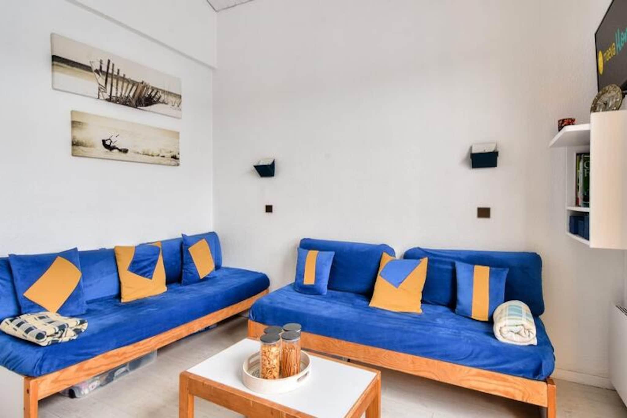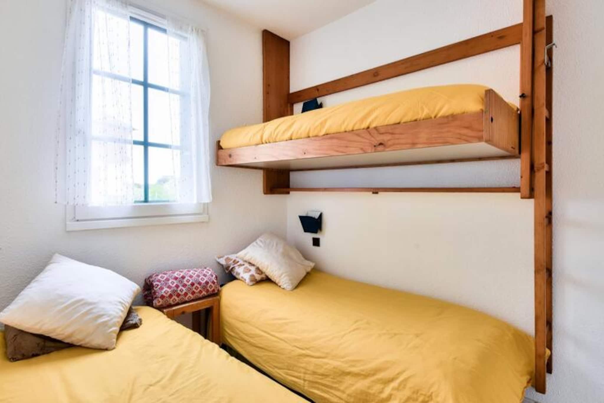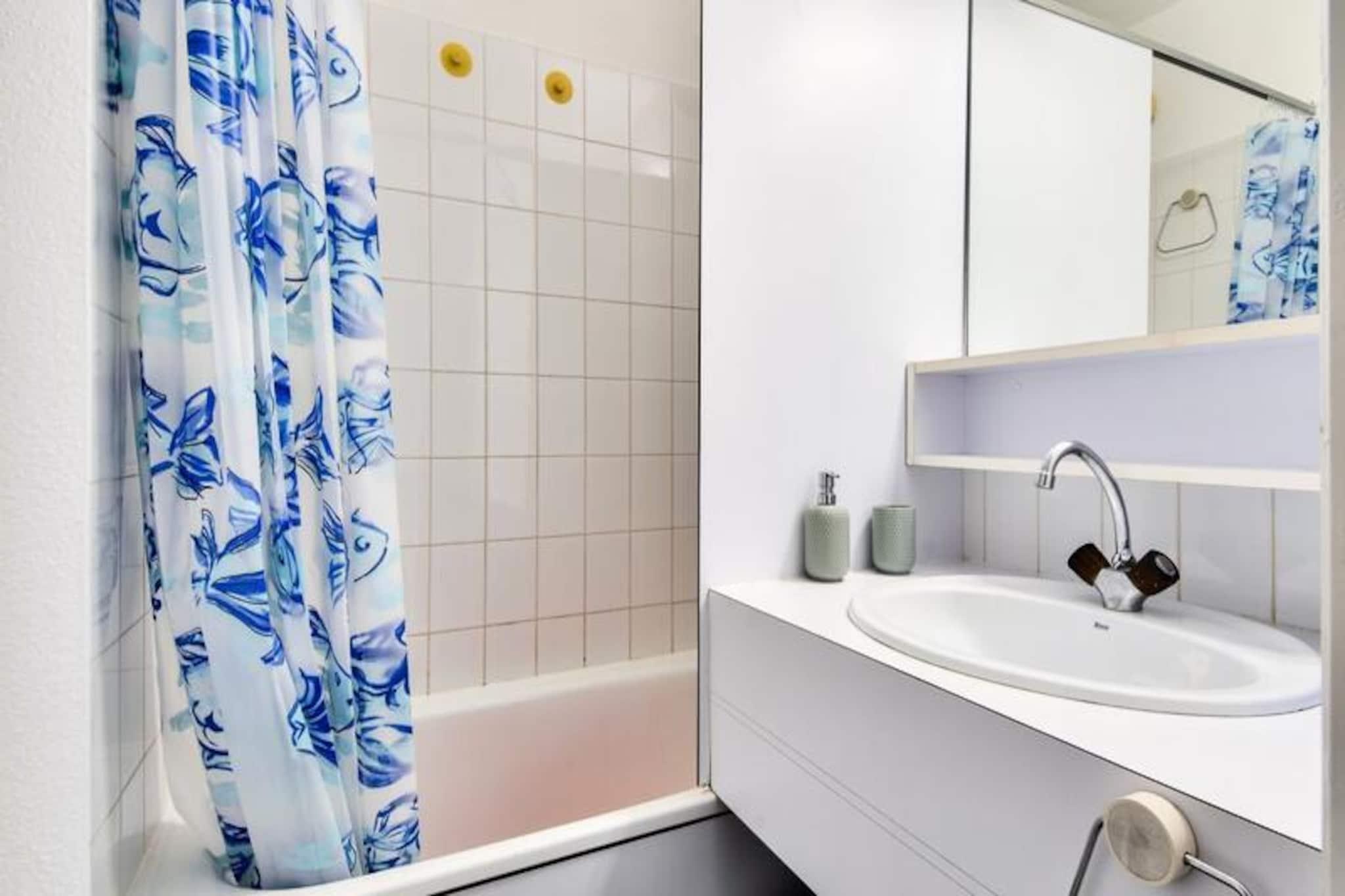 Denne charmerende lejlighed, beliggende i en fodgængerlandsby, tilbyder komfortabel indkvartering for op til 5 personer. Den har en stue med en sovesofa og en dagseng med en trille i soveværelset. Lejligheden er kæledyrsvenlig, så gæsterne kan medbringe deres lodne ledsagere mod et ekstra gebyr. Enheden omfatter et badeværelse med badekar, et separat toilet og alle de nødvendige faciliteter til et afslappende ophold. En privat balkon tilbyder et fredeligt sted at slappe af og nyde den omkringliggende udsigt. Der er gratis parkering på stedet for ekstra bekvemmelighed. Boligen er ideelt beliggende for at udforske områdets naturlige skønhed med adgang til nærliggende aktiviteter, herunder to 18-hullers golfbaner, tennis og minigolf. Gæsterne kan nyde de naturskønne omgivelser, herunder en sø og en fyrreskov, og stranden ligger kun 2,5 km derfra og er tilgængelig med shuttle eller cykel. Landsbyens centrum, med dets butikker, pizzeria, bageri og bar, ligger kun en kort gåtur væk, og tilbyder et stort udvalg af spisemuligheder og lokale lækkerier. Det fuldt udstyrede køkken i lejligheden har et halvåbent layout og inkluderer alle nødvendige apparater til at tilberede måltider. Der er et spisebord til at nyde måltider sammen, og lejligheden er udstyret med en hårtørrer og opbevaringsplads for bekvemmelighed. Adgang til flere swimmingpools, herunder en opvarmet pool, rutsjebaner og et soppebassin med vandspil, er inkluderet, hvilket gør det til en ideel destination for familier, der ønsker at slappe af og nyde vandet.