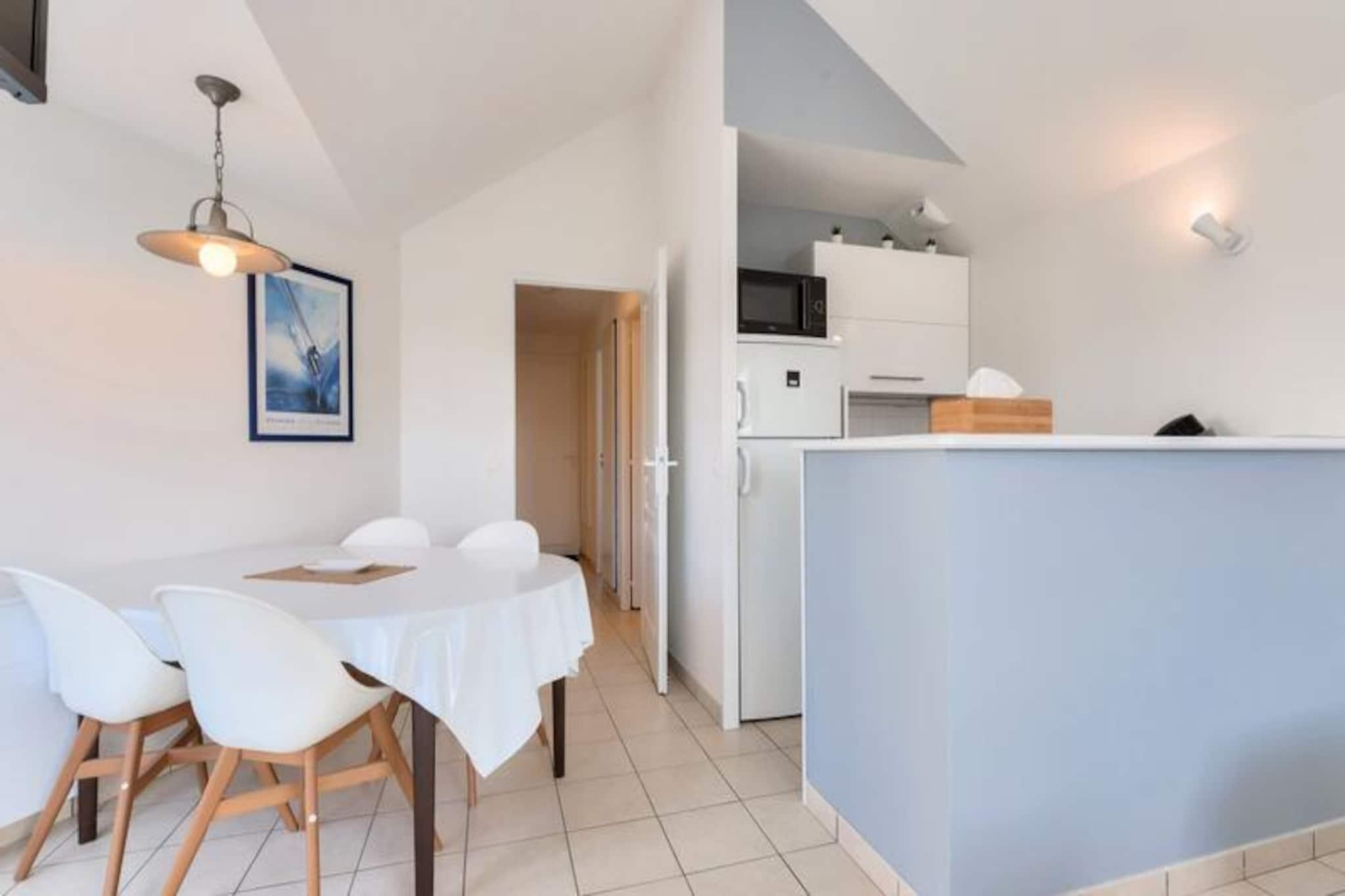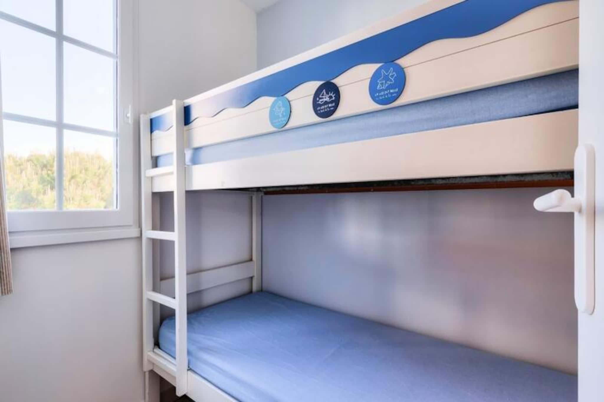 La Résidence Port Bourgenay - maeva Home está situada en Talmont-Saint-Hilaire, en la región de Vendée, a solo 9 km de Les Sables-d'Olonne. Se trata de una auténtica finca de 90 hectáreas rodeada de un pinar y con vistas directas a un lago. La residencia peatonal está dividida en cinco distritos y ofrece tiendas donde encontrará todo lo necesario para unas vacaciones cómodas y relajantes. Puedes llegar al océano a pie o en bicicleta a través del pinar, el Talmondaise (lanzadera) también puede dejarte en la playa de Veillon, situada a 2,5 km, donde podrás disfrutar de numerosas actividades. La residencia también cuenta con 3 piscinas y una zona acuática con tobogán. Fechas de apertura: La piscina del centro: del 27/04 al 12/09 La piscina del Moulin: del 15/06 al 08/09 La piscina de Bocage: del 15/06 al 02/09 En el sitio: Pizzería, panadería, bar/heladería. (Estos servicios son independientes de la residencia) Los alojamientos de Maeva Home son alquileres privados totalmente equipados ubicados dentro de la residencia. Limpieza adicional: A realizar al final de la estancia, ya sea por parte del cliente o pagando el servicio en el momento de la reserva, en el pre-check-in o a la llegada. Se beneficiará de las ventajas y servicios a la carta según sus deseos. Entretenimiento y ocio (cargo adicional): * Dos campos de golf de 18 hoyos * Tenis, minigolf Su alquiler vacacional incluye: 1 sala de estar, 1 área de cabaña, 1 cocina, 1 dormitorio, 2 baños, 1 aseo, 1 logia y 1 plaza de aparcamiento. Las ventajas de su alquiler: Aproveche un apartamento equipado para 5 personas con logia. Superficie: 35 m². Ubicación: Piso de alojamiento: 2do piso Distancia de las pistas al mar: >500m Distancia al negocio: >500m Actividades a distancia: >500m Número de niveles de vivienda: Una sola planta Composición del salón: Sofá cama Salón: 1 Sofá estándar: Sí Plazas para sentarse en el sofá: 4 Mesa de centro: Sí Lado de la comida: Tipo de cocina: americana Composición de las habitaciones: Dormitorio 1: Cama doble: 1 Área de cabina: Acceso zona de cabina: Con puerta Literas: 1 Composición del baño: Número de baños: 2 Baño N°1: Tipo de baño: Bañera con columna Una toma de corriente libre cerca del espejo: Sí Gancho(s) sin calefacción o secador de toallas: Sí Secador de toallas eléctrico: Sí Espacio(s) de almacenamiento (sin incluir el estante debajo del espejo y el tocador): Sí Secador de pelo eléctrico: Sí WC: Sí Cuarto de baño núm. 2: Tipo de baño: Ducha Estado del baño: Buen estado Una toma de corriente libre cerca del espejo: Sí Gancho(s) sin calefacción o secador de toallas: Sí Espacio(s) de almacenamiento (sin incluir el estante debajo del espejo y el tocador): Sí Exteriores: Tipo de Aparcamiento: Exterior Etiqueta de selección de hogar maeva: Apartamentos mantenidos, al día y con equipamiento de calidad. Para unas vacaciones exitosas y confortables. Acceso Wifi - Con suplemento - sujeto a disponibilidad. Se admiten mascotas - Además, consulte directamente con la residencia para conocer los precios (permitidos para determinados alojamientos). Kit Bebé - Sujeto a disponibilidad: 1 cuna plegable (norma NF EN 716), 1 cochecito (el contenido puede variar según la residencia) - precios a consultar en recepción. Ropa de cama - Con coste adicional - El contenido puede variar según la residencia: sábana bajera, sábana o funda nórdica y funda de almohada. Toallas - Cargo extra. Posibilidad de cambio de ropa de diario disponible, consultar precios en recepción. Limpieza final de estancia - Servicio de limpieza obligatorio a pagar al realizar el check-in o a la llegada. Aparcamiento - gratuito descubierto situado en la residencia. Piscina - Incluida. En el centro de la residencia encontrará: Piscinas climatizadas, toboganes y piscina infantil con juegos acuáticos. Información de la agencia maeva Home. Fecha de apertura: 29/04 al 15/09, accesible a todos Tobogán y piscina supervisados ??únicamente del 01/07 al 31/08 Tasa turística (cargo adicional) - El pago de la tasa turística se realiza a través de su espacio personal: https://mon-compte.maeva.com, el importe varía según la ubicación. Gratis para menores de 18 años. Televisión - Dependiendo de tu alojamiento Depósito (en euros) - 500 Limpieza final de estancia - Servicio de limpieza obligatorio a pagar al realizar el check-in o a la llegada. Ropa de cama - Cargo adicional.