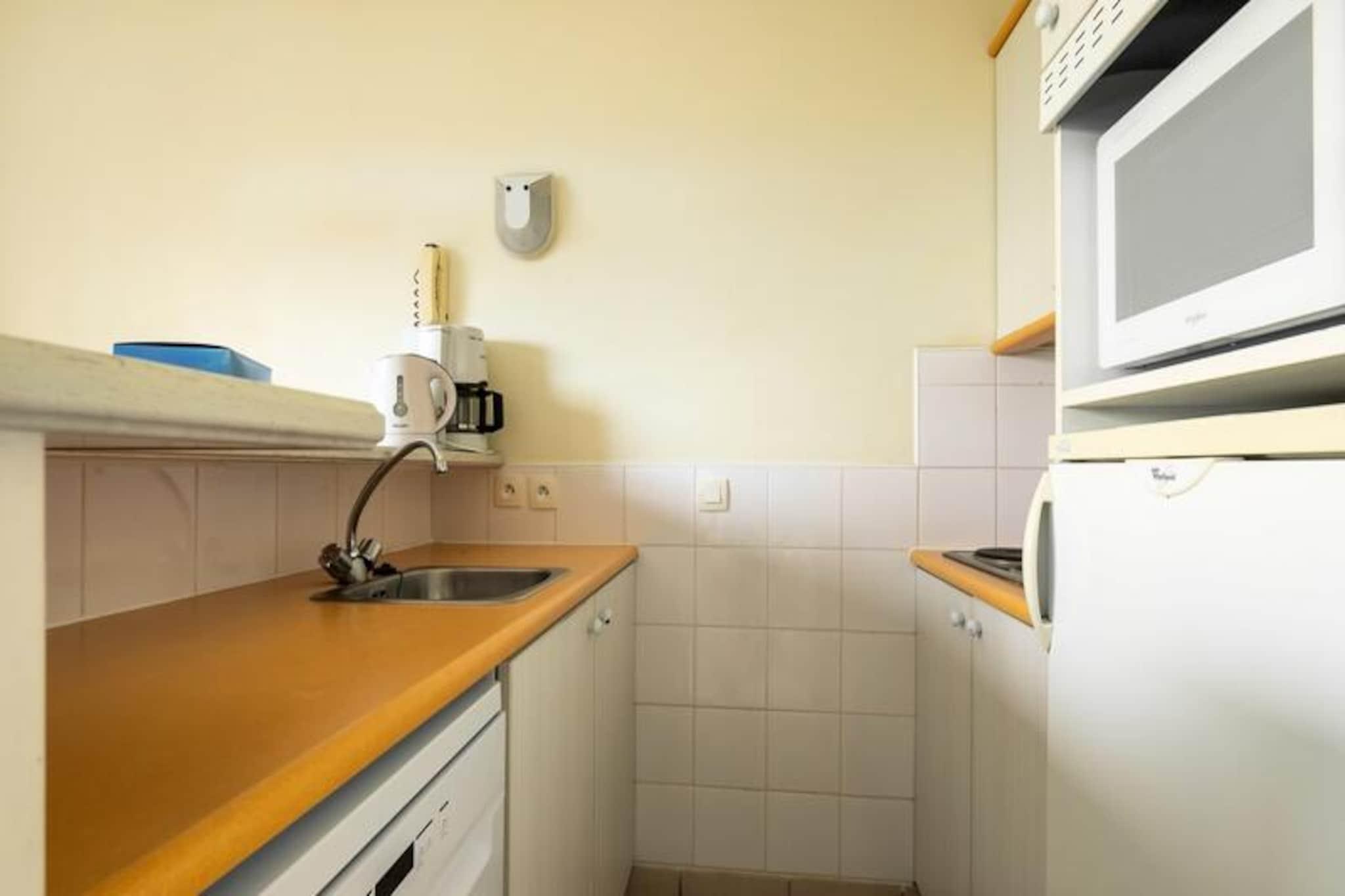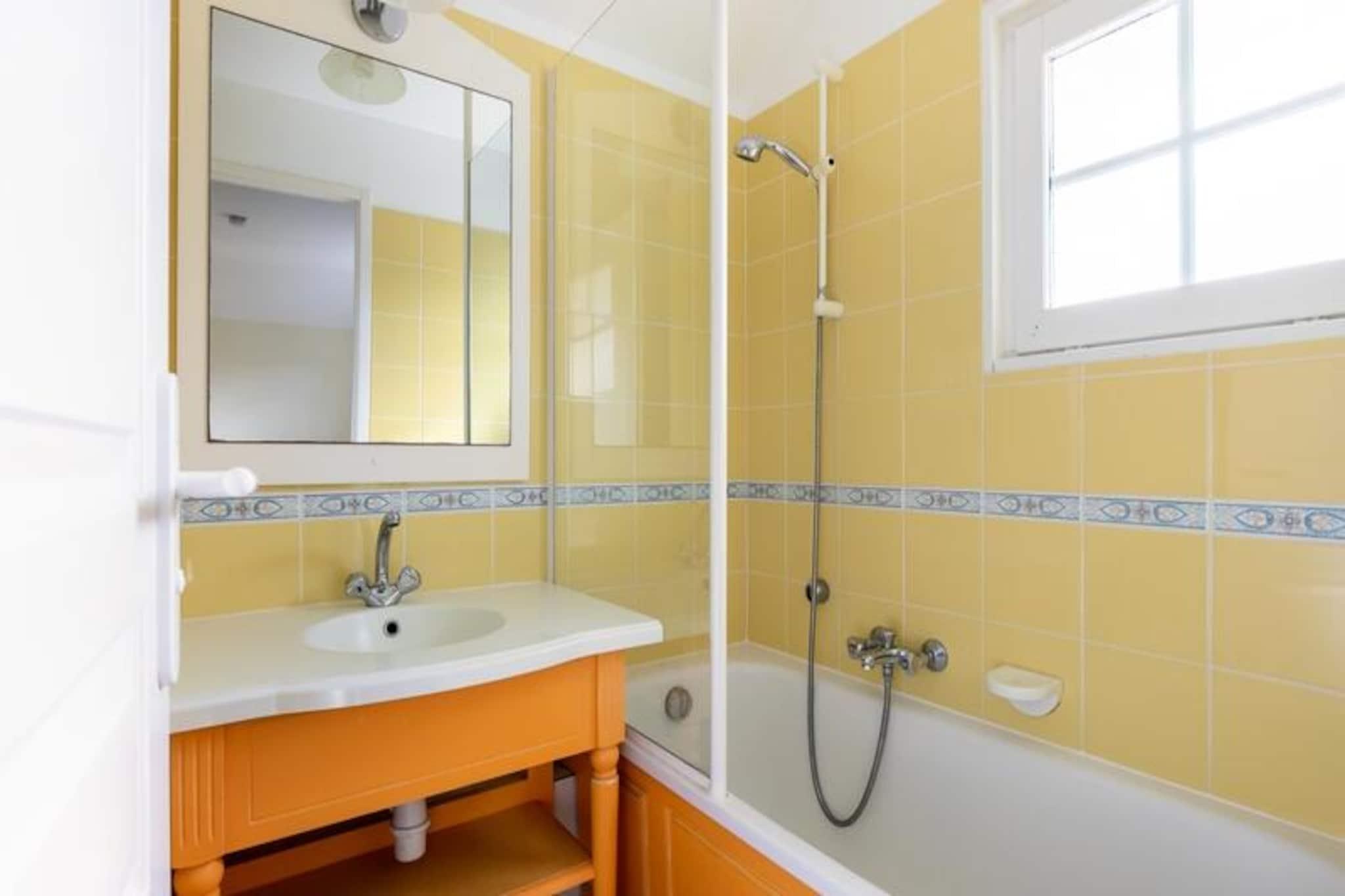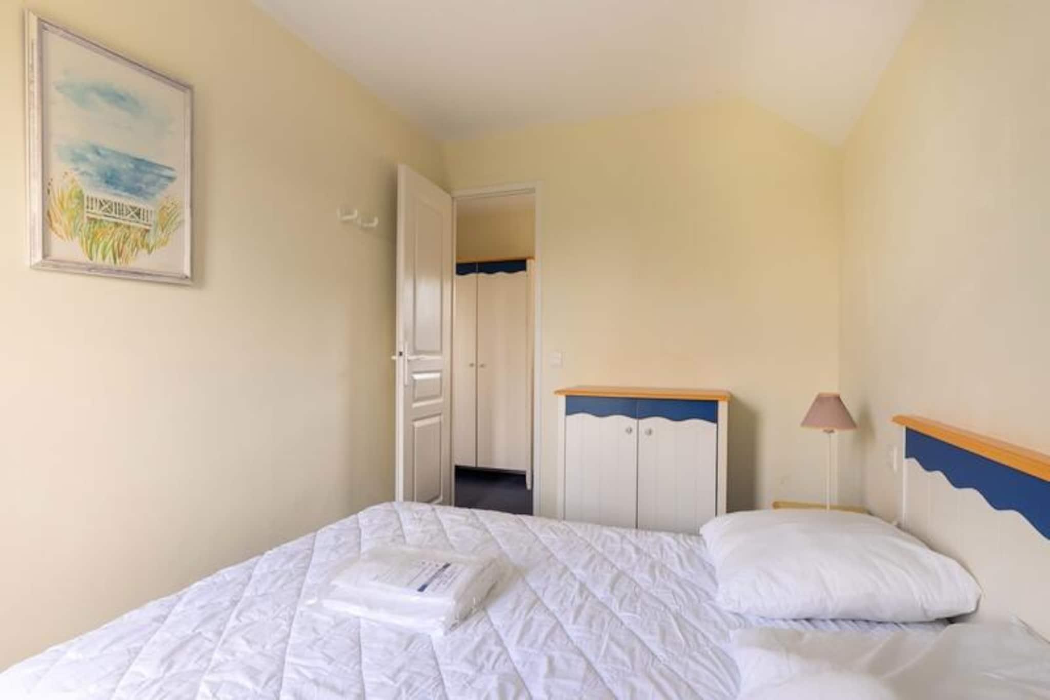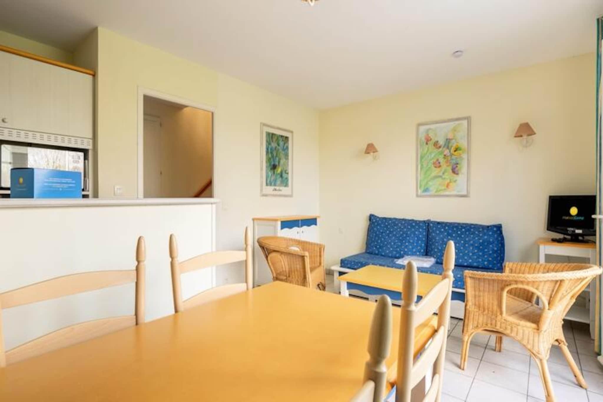 Dette charmerende duplex-feriehus i Bocage-distriktet tilbyder rummelige 45 m² for op til 6 gæster. Det har 2 soveværelser, herunder 1 dobbeltseng og 2 enkeltsenge, og en stue med sovesofa og trille til yderligere sovearrangementer. Ejendommen er kæledyrsvenlig (ekstra gebyrer) og tilbyder parkering, hvilket gør det til en bekvem mulighed for familier. Sengetøj er tilgængeligt mod et tillægsgebyr, og slutrengøring er obligatorisk. Beliggende kun få skridt fra havnen i Port-Bourgenay, er dette feriehus ideelt placeret til at udforske Vendée-kysten. Gæster kan nyde nærliggende attraktioner såsom de opvarmede swimmingpools i Bocage- og Moulin-distrikterne, eksklusive for beboere. Boligen tilbyder adgang til rutsjebaner, soppebassiner og vandspil, hvilket sikrer sjov for alle aldre. Der er også caféer, markeder og butikker i det omkringliggende område, perfekt til lokale restauranter og shopping. Inde i feriehuset er det fuldt udstyrede køkken halvåbent til stuen, hvilket giver en behagelig plads til familiens måltider. Badeværelset har badekar og toilet samt et ekstra separat toilet. For nemheds skyld er trådløs internetadgang tilgængelig mod et gebyr, og du kan nyde terrassen til udendørs afslapning.
