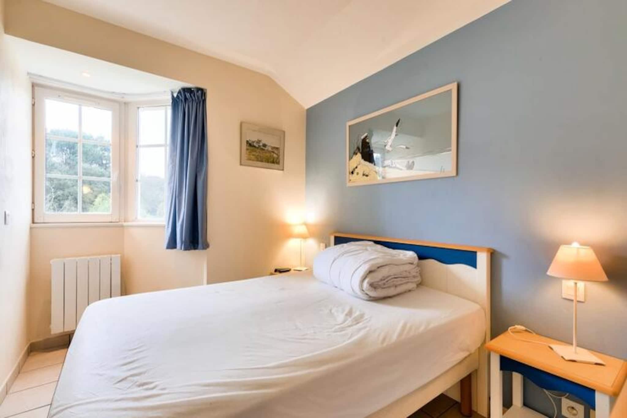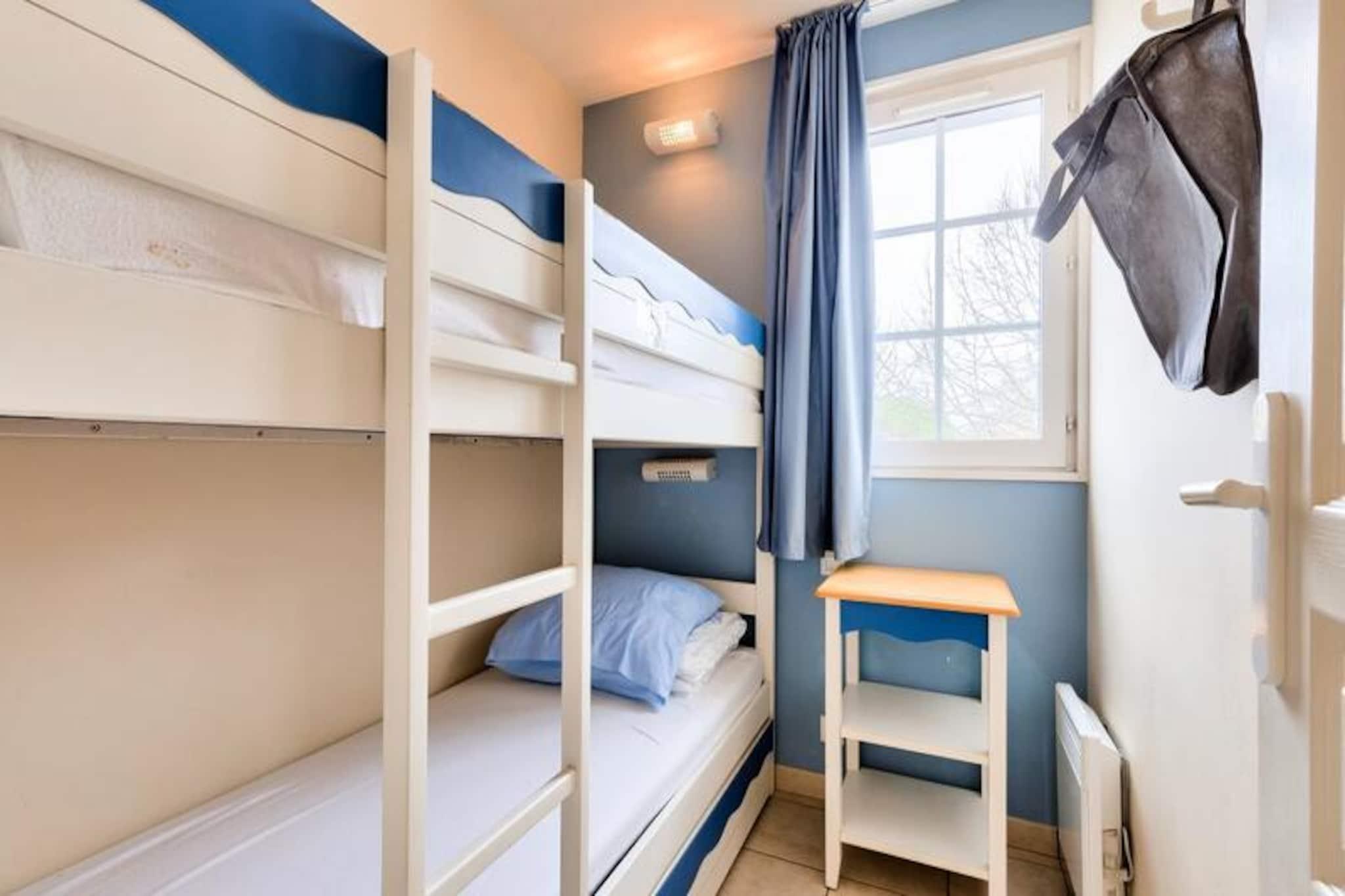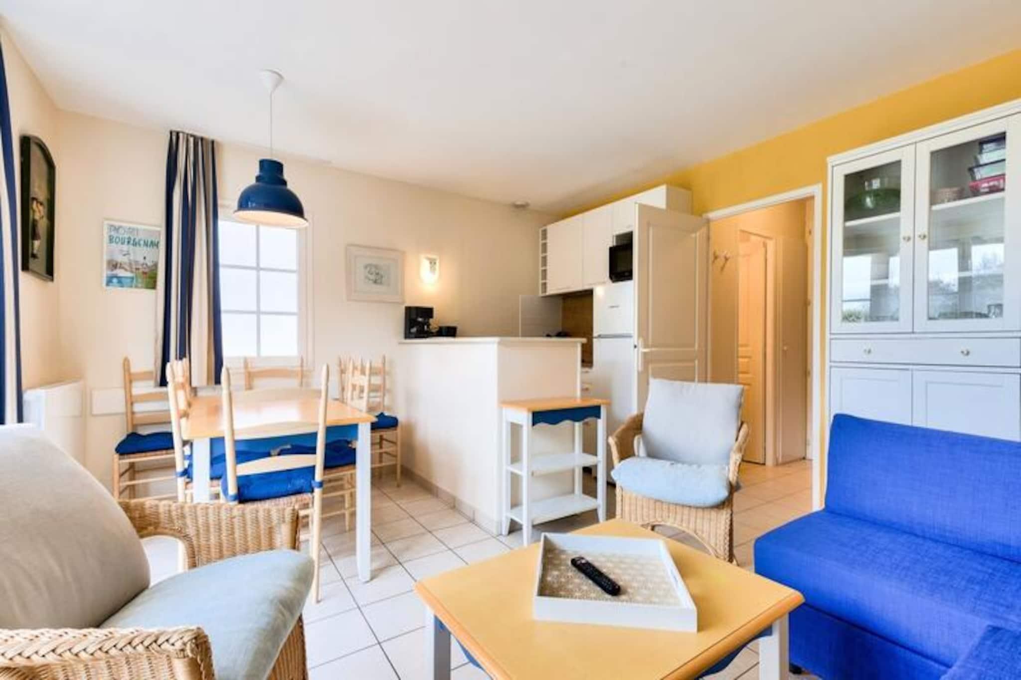 Denne charmerende, to-etagers feriebolig er ideel til familier på Vendée-kysten. Beliggende i en bolig med flere sæsonbestemte swimmingpools (adgang afhænger af dit lejemål), en soppebassin og et udstyret strandområde, er det kun 5 minutters gang fra stranden, butikker og aktiviteter. Ejendommen tillader kæledyr mod et tillægsgebyr. Den smagfuldt renoverede lejlighed har en rummelig terrasse, en lys stue med en sovesofa, der kan sove én, og et funktionelt køkken. Det rummer komfortabelt otte gæster med to soveværelser (et dobbeltværelse og et med to enkeltsenge), et kabineområde med køjesenge og to moderne badeværelser (et med badekar og et andet med bruser). Denne kæledyrsvenlige udlejning tilbyder et virkelig problemfrit ophold med sengelinned, håndklæder, opredte senge ved ankomst, slutrengøring og Wi-Fi-adgang alt sammen inkluderet. Selve boligen kan prale af en fodgængervenlig atmosfære med butikker, et bageri, pizzeria, bar og isbar (alt sammen uafhængigt af boligen). Bourgenay lystbådehavn er også i nærheden.