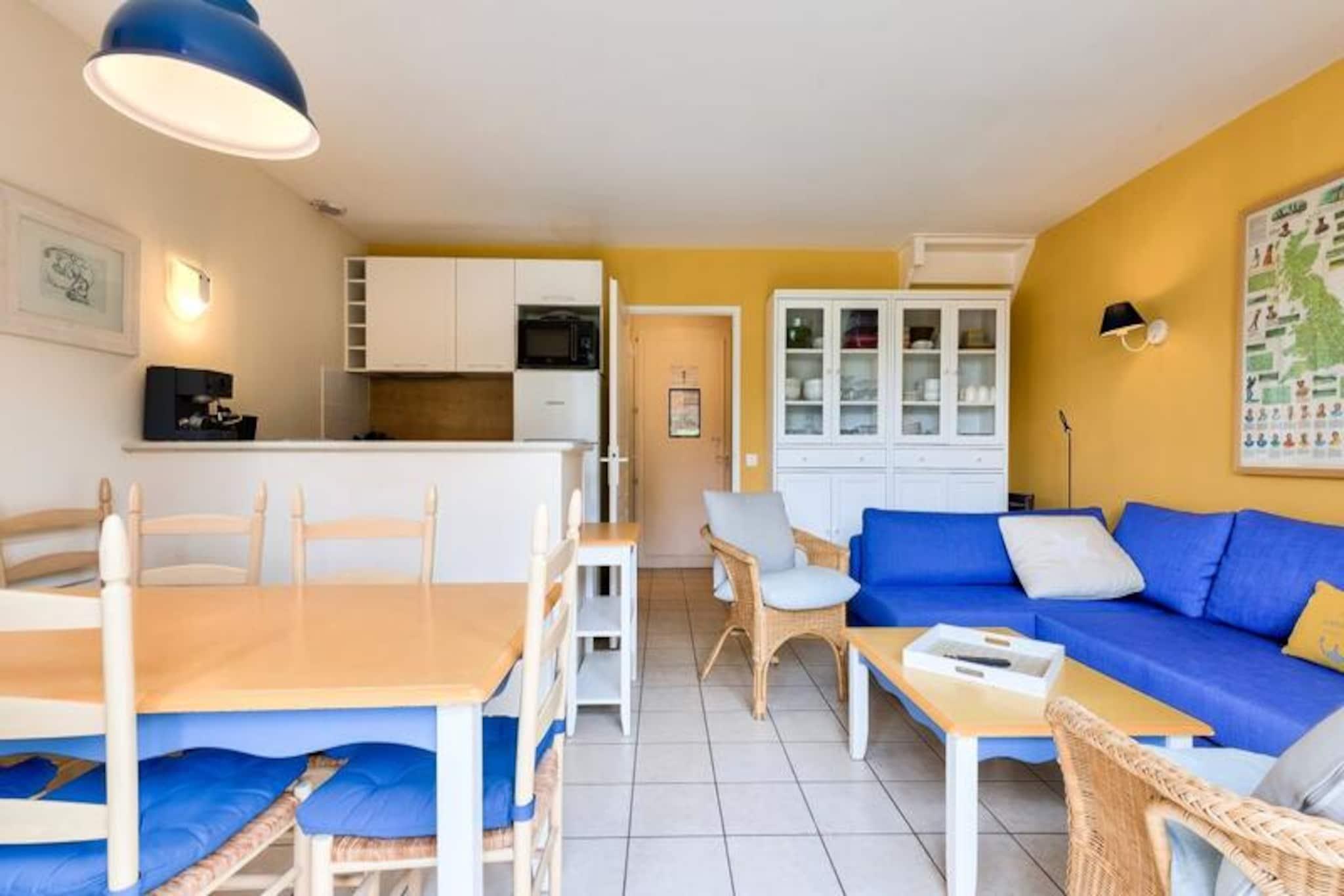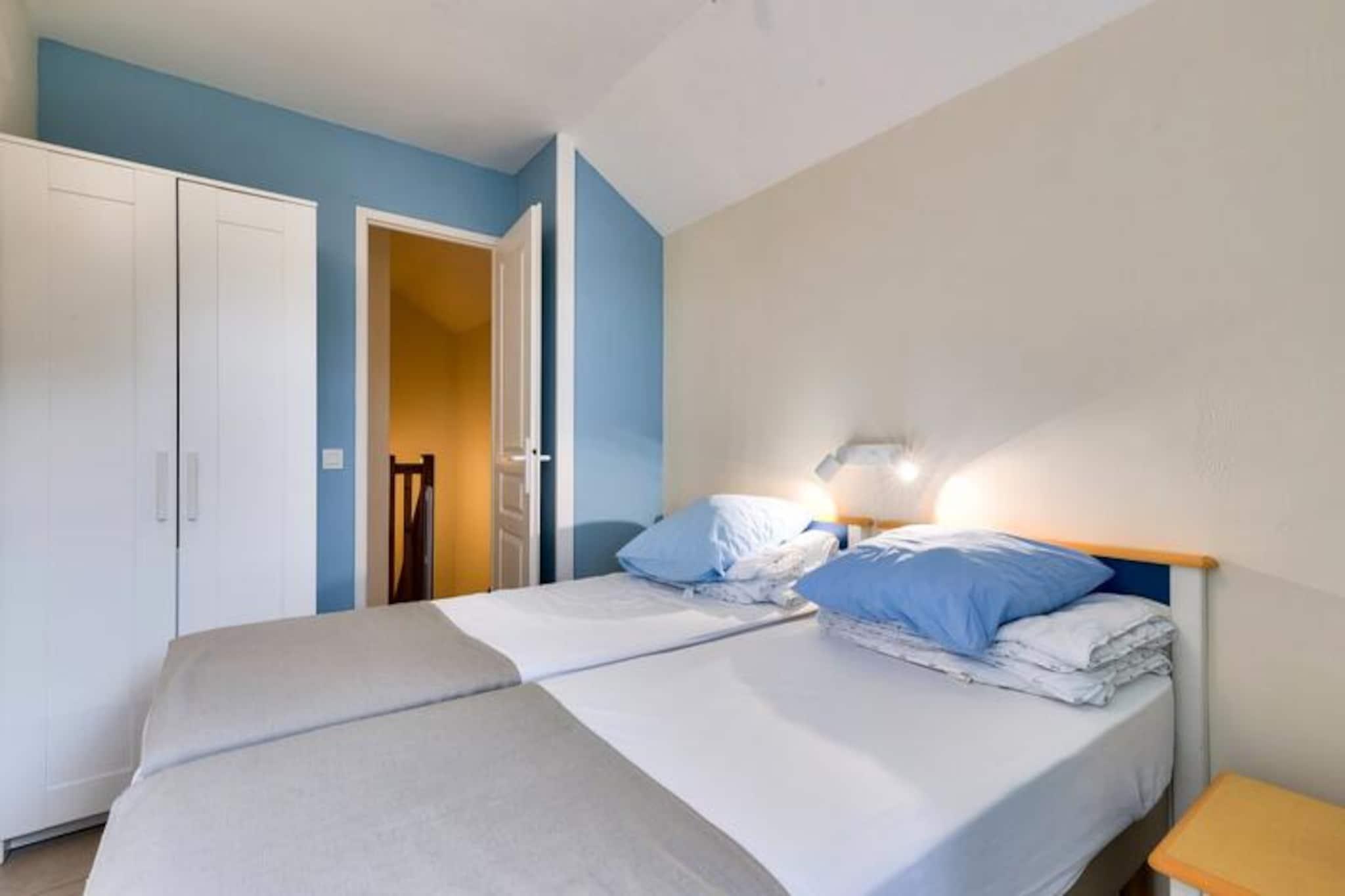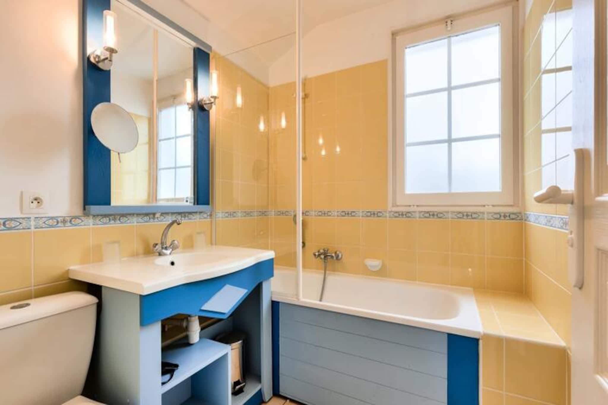 Denne charmerende, to-etagers feriebolig er ideel til familier på Vendée-kysten. Beliggende i en bolig med flere sæsonbestemte swimmingpools (adgang afhænger af dit lejemål), en soppebassin og et udstyret strandområde, er det kun 5 minutters gang fra stranden, butikker og aktiviteter. Ejendommen tillader kæledyr mod et tillægsgebyr. Den smagfuldt renoverede lejlighed har en rummelig terrasse, en lys stue med en sovesofa, der kan sove én, og et funktionelt køkken. Det rummer komfortabelt otte gæster med to soveværelser (et dobbeltværelse og et med to enkeltsenge), et kabineområde med køjesenge og to moderne badeværelser (et med badekar og et andet med bruser). Denne kæledyrsvenlige udlejning tilbyder et virkelig problemfrit ophold med sengelinned, håndklæder, opredte senge ved ankomst, slutrengøring og Wi-Fi-adgang alt sammen inkluderet. Selve boligen kan prale af en fodgængervenlig atmosfære med butikker, et bageri, pizzeria, bar og isbar (alt sammen uafhængigt af boligen). Bourgenay lystbådehavn er også i nærheden.