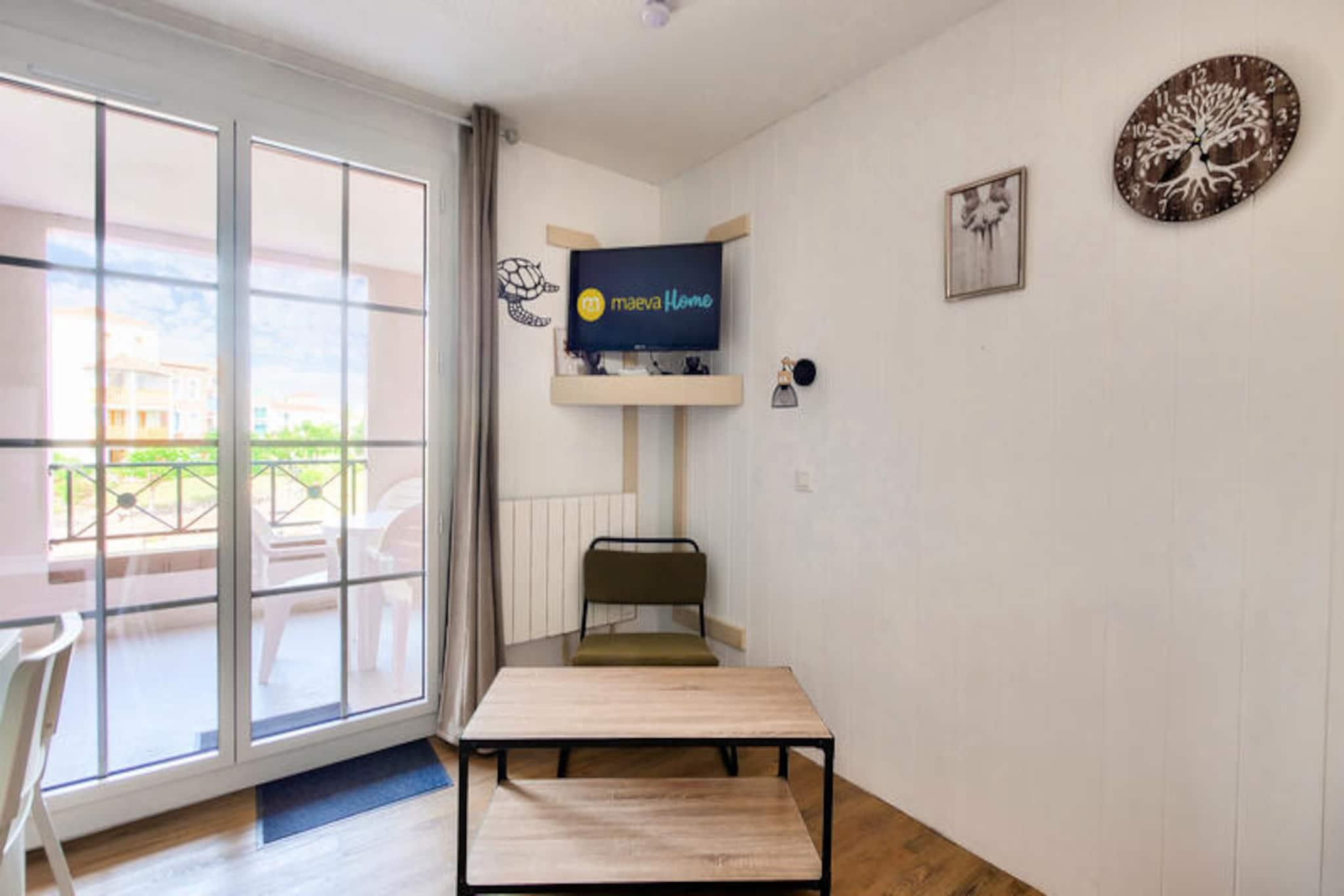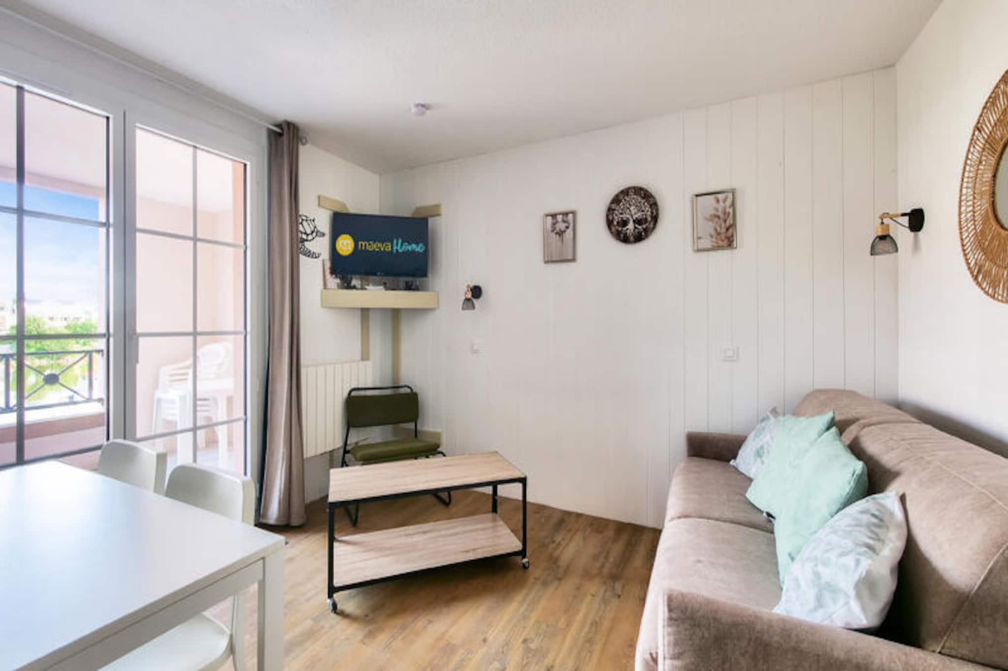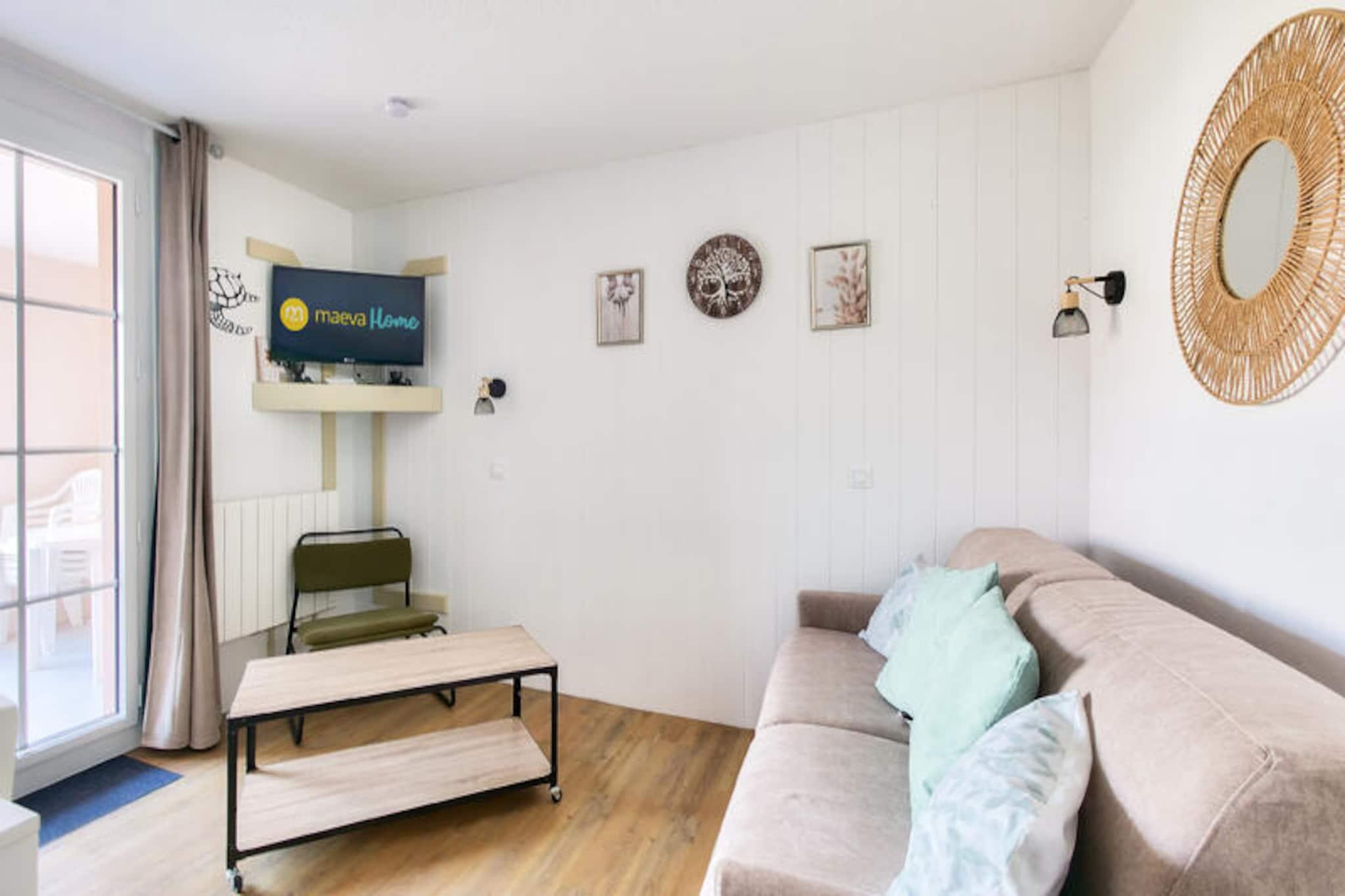 Denne charmerende lejlighed er en del af en naturskøn 90 hektar stor ejendom i Talmont-Saint-Hilaire. Det har en hyggelig stue med sovesofa og udtræksseng og et separat soveværelse med køjesenge. Badeværelset er udstyret med badekar, elektrisk håndklædetørrer og hårtørrer. Lejligheden inkluderer også en balkon, parkeringsplads og et babysæt (afhængigt af tilgængelighed). Kæledyr er tilladt mod et ekstra gebyr, og sengetøj og håndklæder er tilgængelige mod et ekstra gebyr. En obligatorisk rengøring er påkrævet ved slutningen af ??opholdet. Boligen tilbyder en række fritidsaktiviteter, herunder adgang til 3 swimmingpools, et vandområde med rutsjebaner, tennis, minigolf og to 18-hullers golfbaner. Beliggende kun 9 km fra Les Sables-d'Olonne, giver det nem adgang til havet, med Veillon-stranden 2,5 km væk. I nærheden kan gæsterne udforske caféer, restauranter og butikker, mens de nyder de fredelige omgivelser i en fyrreskov og sø. Indvendigt indeholder det fuldt udstyrede køkken alle nødvendige apparater, og lejligheden har et separat toilet for ekstra bekvemmelighed. Gæsterne kan nyde komforten af ??et halvåbent køkken og en spiseplads med plads til 4. Wi-Fi er tilgængeligt mod et ekstra gebyr, og boligen tilbyder en række tjenester til et behageligt ophold.