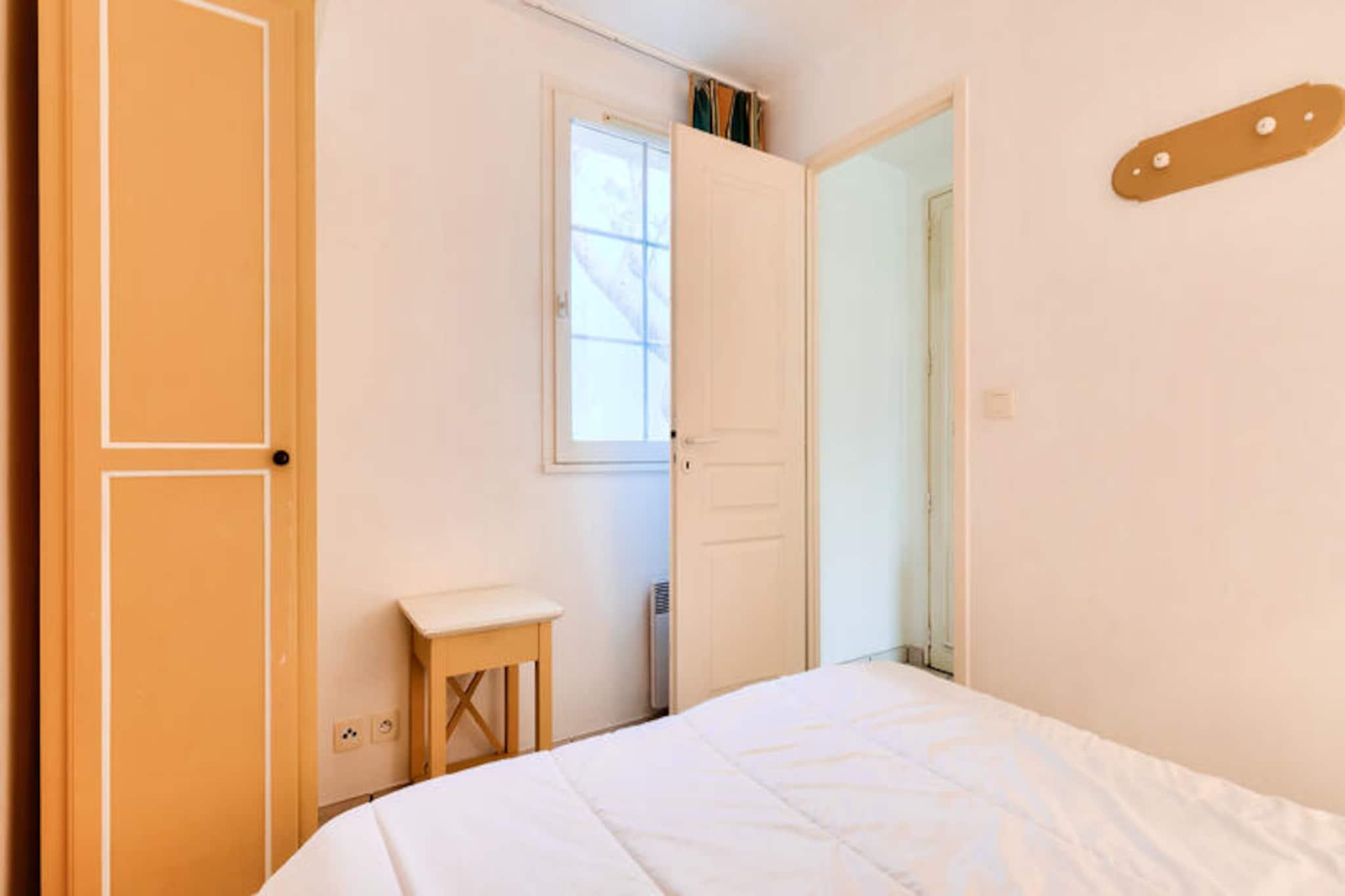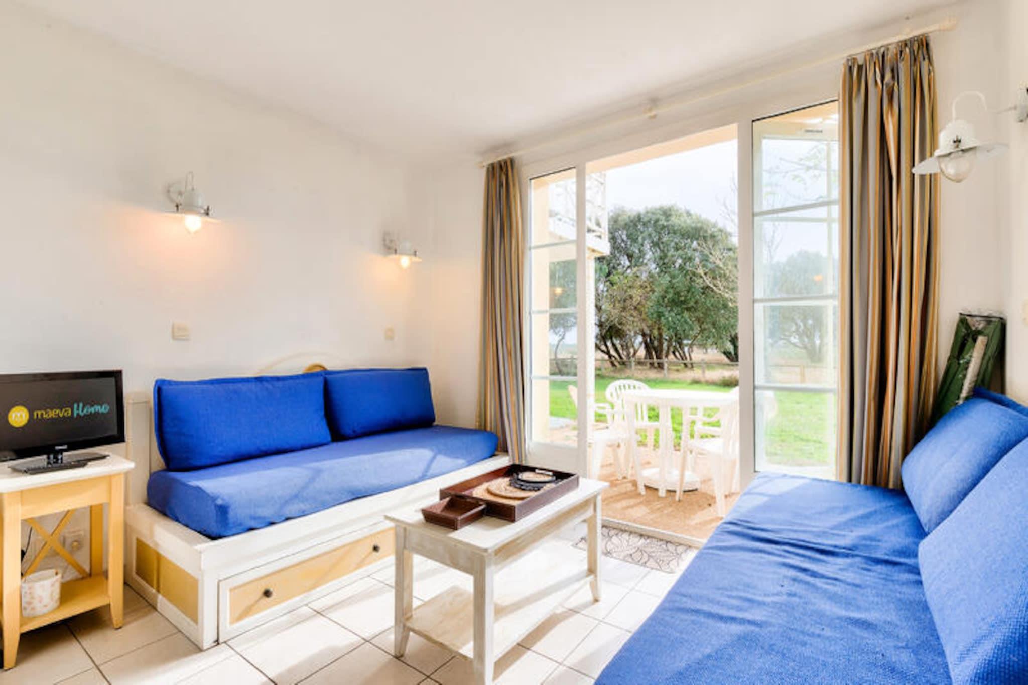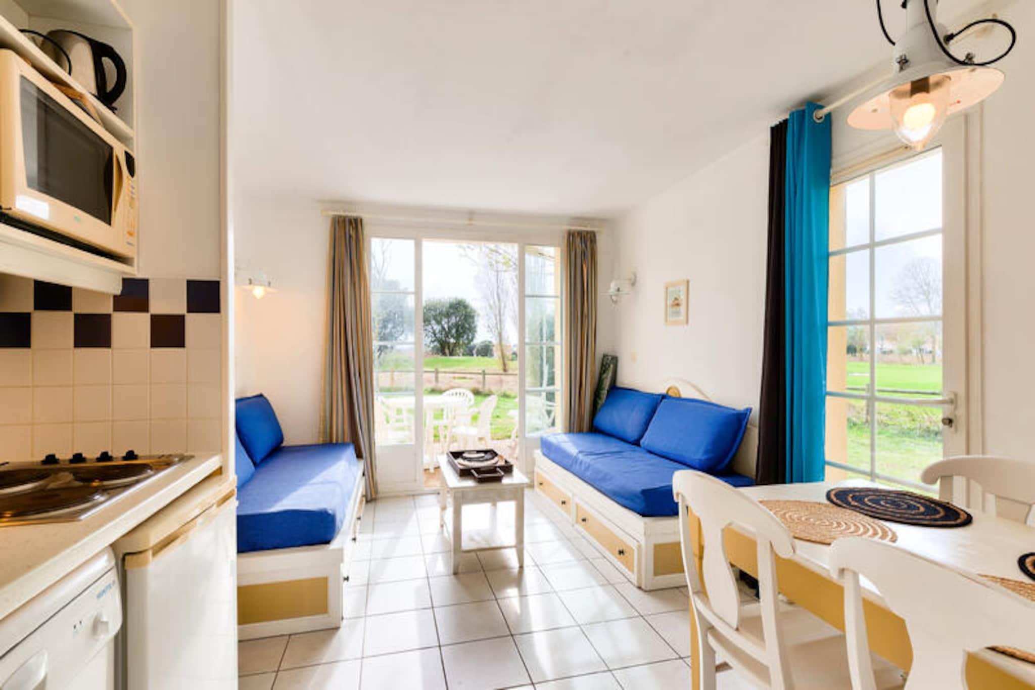 Dette hyggelige feriehus er ideelt til en familie eller en lille gruppe, med plads til op til fem gæster. Det har en stue med en sovesofa, et veludstyret køkken, et soveværelse med en dobbeltseng og et badeværelse med badekar. Ejendommen har en privat have med udsigt til golfbanen, som tilbyder et fredeligt tilflugtssted. Kæledyr er tilladt (afhængigt af tilgængelighed), og faciliteter såsom Wi-Fi, sengelinned og håndklæder er tilgængelige mod et ekstra gebyr. Der tilbydes gratis parkering på stedet. Beliggende kun 9 km fra Les Sables-d'Olonne, er boligen omgivet af en fyrreskov og tilbyder nem adgang til nærliggende strande, herunder Veillon-stranden, kun 2,5 km væk. Gæsterne kan nyde forskellige aktiviteter såsom tennis, minigolf og to 18-hullers golfbaner. Området byder også på lokale butikker, caféer og restauranter, der giver masser af muligheder for at spise og udforske. Boligen har også flere swimmingpools, herunder opvarmede pools og vandrutsjebaner. Feriehuset er udstyret med køkken i amerikansk stil, rummelig opholdsstue og badeværelse. En privat have, terrasse og parkeringsplads tilføjer til bekvemmeligheden. Yderligere tjenester såsom babysæt, daglige skift af sengetøj og slutrengøring er tilgængelige. Maeva Home-teamet er på stedet for at hjælpe med ethvert behov.