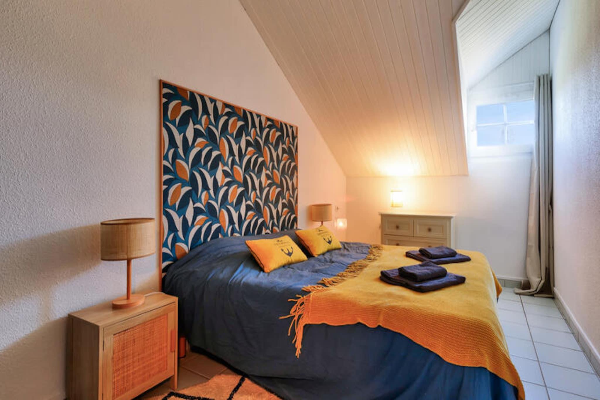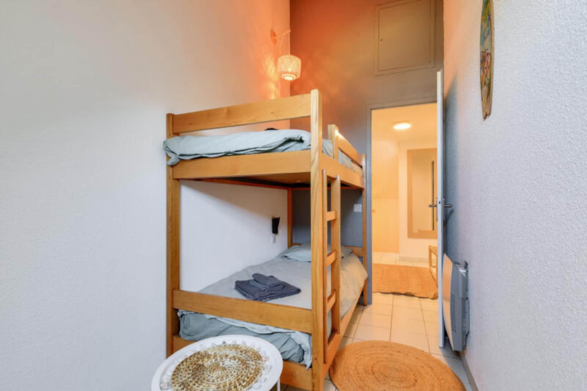 La Résidence Port Bourgenay - maeva Home está situada en Talmont-Saint-Hilaire, en la región de Vendée, a solo 9 km de Les Sables-d'Olonne. Se trata de una auténtica finca de 90 hectáreas rodeada de un pinar y con vistas directas a un lago. La residencia peatonal está dividida en cinco distritos y ofrece tiendas donde encontrará todo lo necesario para unas vacaciones cómodas y relajantes. Puedes llegar al océano a pie o en bicicleta a través del pinar, el Talmondaise (lanzadera) también puede dejarte en la playa de Veillon, situada a 2,5 km, donde podrás disfrutar de numerosas actividades. La residencia también cuenta con 3 piscinas y una zona acuática con tobogán. Fechas de apertura: La piscina del centro: del 27/04 al 12/09 La piscina del Moulin: del 15/06 al 08/09 La piscina de Bocage: del 15/06 al 02/09 En el sitio: Pizzería, panadería, bar/heladería. (Estos servicios son independientes de la residencia) Los alojamientos de Maeva Home son alquileres privados totalmente equipados ubicados dentro de la residencia. Limpieza adicional: A realizar al final de la estancia, ya sea por parte del cliente o pagando el servicio en el momento de la reserva, en el pre-check-in o a la llegada. Se beneficiará de las ventajas y servicios a la carta según sus deseos. Entretenimiento y ocio (cargo adicional): * Dos campos de golf de 18 hoyos * Tenis, minigolf Su alquiler vacacional incluye: 1 salón, 1 cocina, 3 dormitorios, 2 baños, 1 aseo independiente, 1 terraza y 1 plaza de aparcamiento. Las ventajas de su alquiler: Apartamento vacacional dúplex para 6 personas, totalmente equipado. Situado cerca de comercios y actividades. Superficie: 60 m² Ubicación : Piso de alojamiento: 2do piso Centro de la ciudad o pueblo: Centro del pueblo Distancia a pistas/mar: >500m Distancia comercial: entre 100m y 500m Actividades a distancia: entre 100m y 500m Número de niveles de vivienda: 1 piso / Dúplex Composición del salón: Sofá estándar: Sí Plazas para sentarse en el sofá: 3 Mesa de centro: Sí Lado de la comida: Tipo de cocina: americana Composición de las habitaciones: Dormitorio 1: Cama doble: 1 Dormitorio 2: Cama individual: 2 Dormitorio 3: Literas: 1 Composición del baño: Número de baños: 2 Número de baños separados: 1 Baño principal: Tipo de baño: Bañera con columna Una toma de corriente libre cerca del espejo: Sí Perchero(s) o secador de toallas sin calefacción: Sí Secador de toallas eléctrico: Sí Espacio(s) de almacenamiento (sin incluir el estante debajo del espejo y el tocador): Sí Secador de pelo eléctrico: Sí Cuarto de baño núm. 2: Tipo de baño: Ducha Estado del baño: Buen estado Una toma de corriente libre cerca del espejo: Sí Perchero(s) o secador de toallas sin calefacción: Sí Espacio(s) de almacenamiento (sin incluir el estante debajo del espejo y el tocador): Sí WC: Sí Exteriores: Terraza: Cubierta Terraza opuesta: Sí Vista terraza: Otro Etiqueta exclusiva de maeva Home: Una propiedad excepcional y exclusiva. Se beneficiará de un alojamiento de muy alta calidad, con un volumen, una distribución o un equipamiento excepcionales. Disfrute de su estancia en una propiedad atípica y excepcional con el máximo confort. Acceso Wifi - Con suplemento - sujeto a disponibilidad. Se admiten mascotas - Además, consulte directamente con la residencia para conocer los precios (permitidos para determinados alojamientos). Kit Bebé - Sujeto a disponibilidad: 1 cuna plegable (norma NF EN 716), 1 cochecito (el contenido puede variar según la residencia) - precios a consultar en recepción. Ropa de cama - Con coste adicional - El contenido puede variar según la residencia: sábana bajera, sábana o funda nórdica y funda de almohada. Toallas - Cargo extra. Posibilidad de cambio de ropa de diario disponible, consultar precios en recepción. Limpieza final de estancia - Servicio de limpieza obligatorio a pagar al realizar el check-in o a la llegada. Aparcamiento - gratuito descubierto situado en la residencia. Piscina - Incluida. En el centro de la residencia encontrará: Piscinas climatizadas, toboganes y piscina infantil con juegos acuáticos. Información de la agencia maeva Home. Fecha de apertura: 29/04 al 15/09, accesible a todos Tobogán y piscina supervisados ??únicamente del 01/07 al 31/08 Tasa turística (cargo adicional) - El pago de la tasa turística se realiza a través de su espacio personal: https://mon-compte.maeva.com, el importe varía según la ubicación. Gratis para menores de 18 años. Televisión - Dependiendo de tu alojamiento Depósito (en euros) - 700 Limpieza final de estancia - Servicio de limpieza obligatorio a pagar al realizar el check-in o a la llegada. Ropa de cama - Cargo adicional.