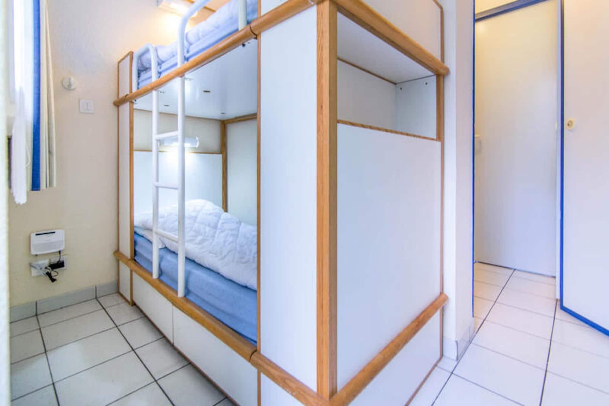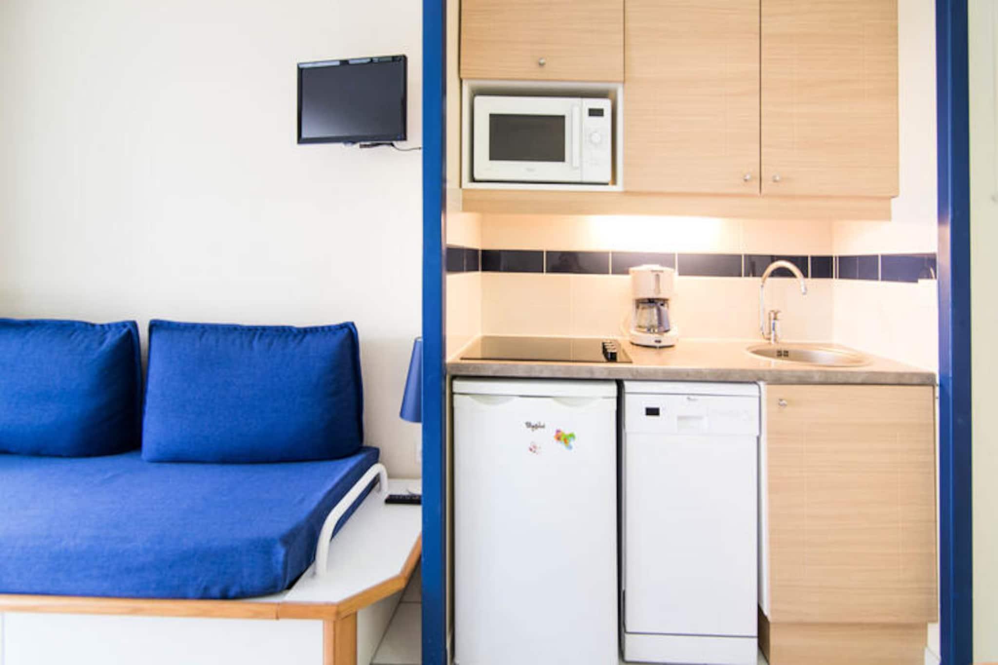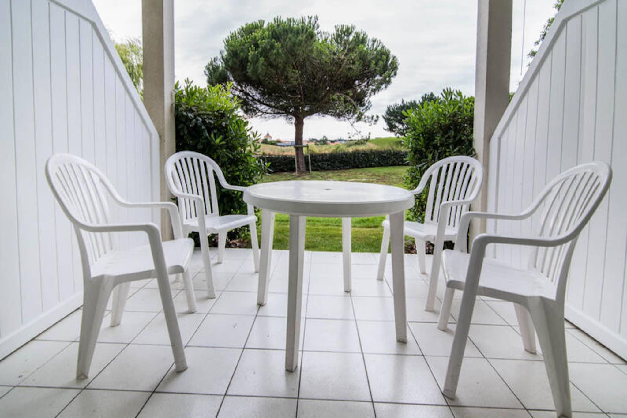 Denne charmerende lejlighed, beliggende i stueetagen, har plads til op til 5 personer og har en møbleret terrasse mod sydøst med udsigt over parken og en lille sø. Det omfatter en stue med to sovesofaer, den ene med en udtræksseng, og et kabineområde med en køjeseng. Lejligheden har også en spiseplads med bord og fire stole. Kæledyr er tilladt efter forudgående forespørgsel, og et babysæt er tilgængeligt efter anmodning. Sengetøj og håndklæder er tilgængelige mod et tillægsgebyr, og der er en obligatorisk rengøringsservice i slutningen af ??dit ophold. Boligen ligger i en fantastisk 90 hektar stor ejendom omgivet af en fyrreskov og direkte med udsigt over en rolig sø. Det er kun 2,5 km fra Veillon Beach, som du kan få adgang til til fods, på cykel eller med en shuttleservice. Området byder på mange aktiviteter, herunder to 18-hullers golfbaner, tennis, minigolf og et opvarmet vandområde med rutsjebaner. Nærliggende butikker omfatter et pizzeria, bageri og bar, mens centrum af Seignosse ligger kun 200 meter væk, med forskellige caféer, markeder og attraktioner. Indvendigt har lejligheden et fuldt udstyret køkken med mikroovn, komfur og køleskab, åbent til stuen. Badeværelset har badekar og toilet, og der er masser af opbevaringsplads overalt. Gæsterne kan nyde gratis parkering i boligen og adgang til de tre swimmingpools, der er tilgængelige fra april til september, med yderligere faciliteter såsom wifi og sengetøj til rådighed mod et ekstra gebyr.