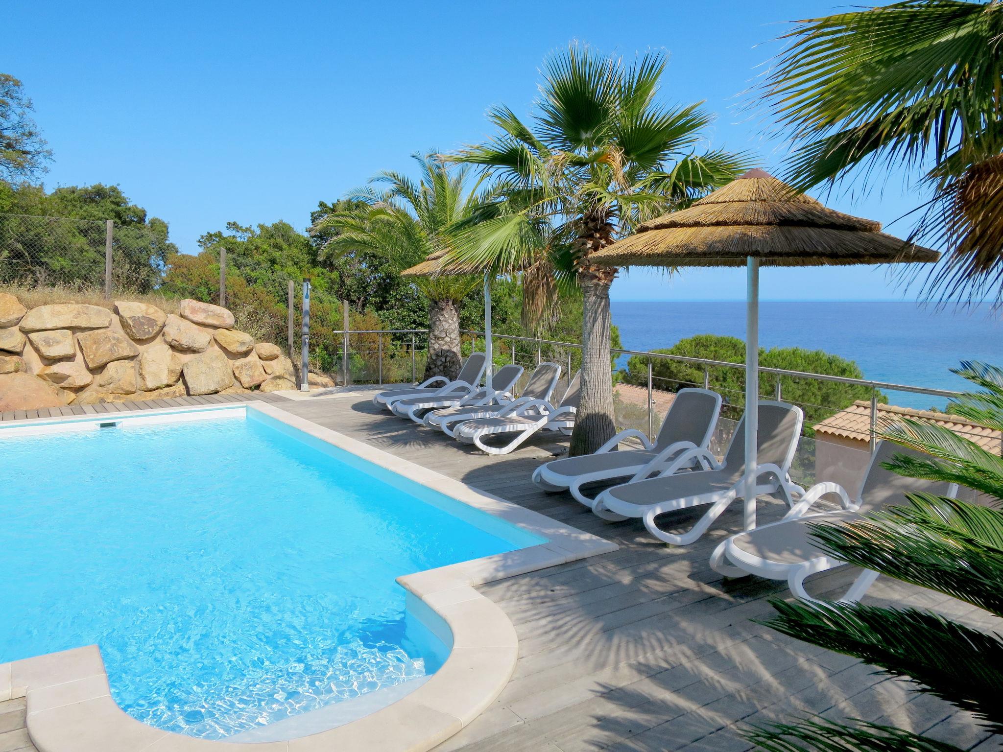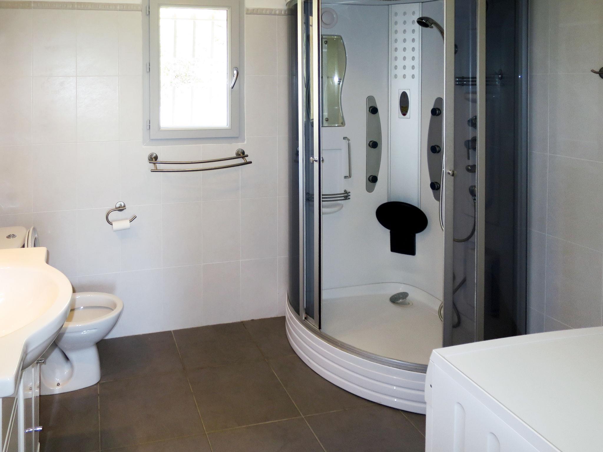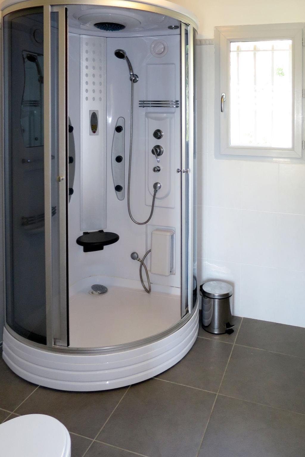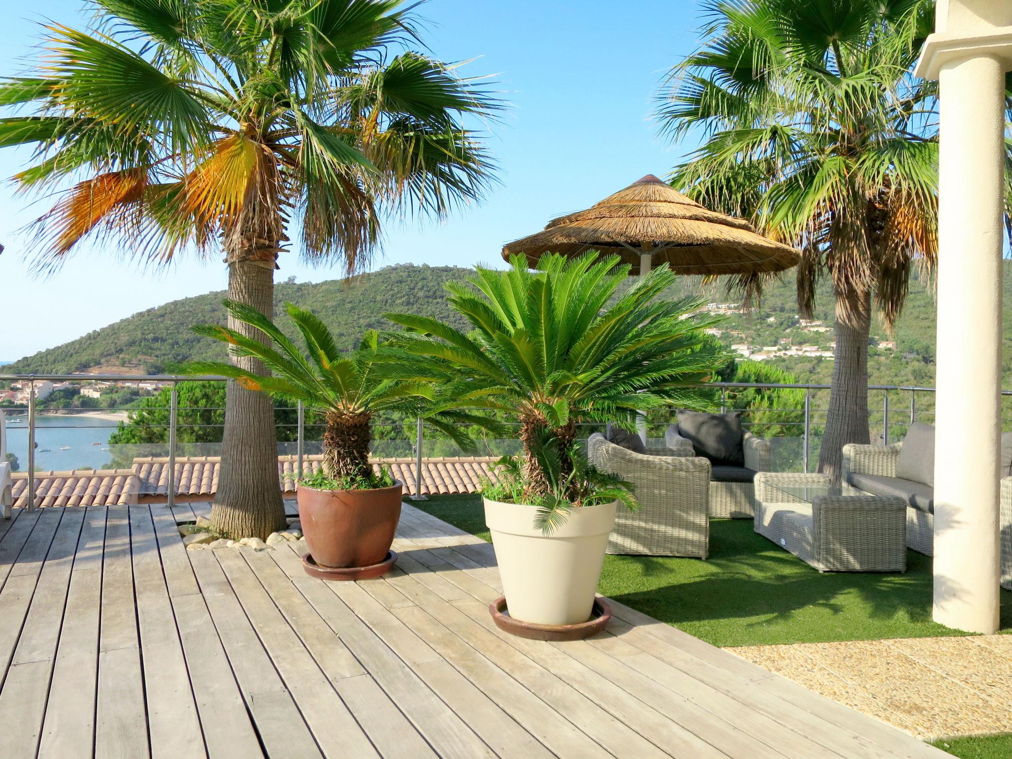 "Villa Ottavi", 5-room house 180 m2 on 2 levels. Spacious and bright, very comfortable and beautiful furnishings: living/dining room with dining table and satellite TV. Exit to the terrace, to the swimming pool. 1 room with 1 french bed (160 cm), shower/WC and air conditioning. Exit to the terrace, to the swimming pool. 1 room with 3 beds, shower/WC and air conditioning. Open kitchen (oven, dishwasher, 4 gas rings, toaster, kettle, microwave, freezer, electric coffee machine, Capsules for coffee machine (nespresso) extra). Sep. WC. Electric heating. Upper floor: 1 room with 1 french bed (160 cm), shower/WC and air conditioning. Exit to the terrace. 1 room with 3 beds (80 cm), shower/WC and air conditioning. Exit to the terrace. Electric heating. 3 large terraces partly covered, large patio partly roofed. Terrace furniture, electric barbecue, deck chairs (10), box-room. Marvellous view of the bay. Facilities: washing machine, children's high chair, baby cot for up to 2 year olds. Internet (WiFi, free). Parking (2 cars). Please note: suitable for families. Non-smoking house. Smoke alarm, fire extinguisher. Offer by a commercial proprietor according to Art. 155, IV, CGI