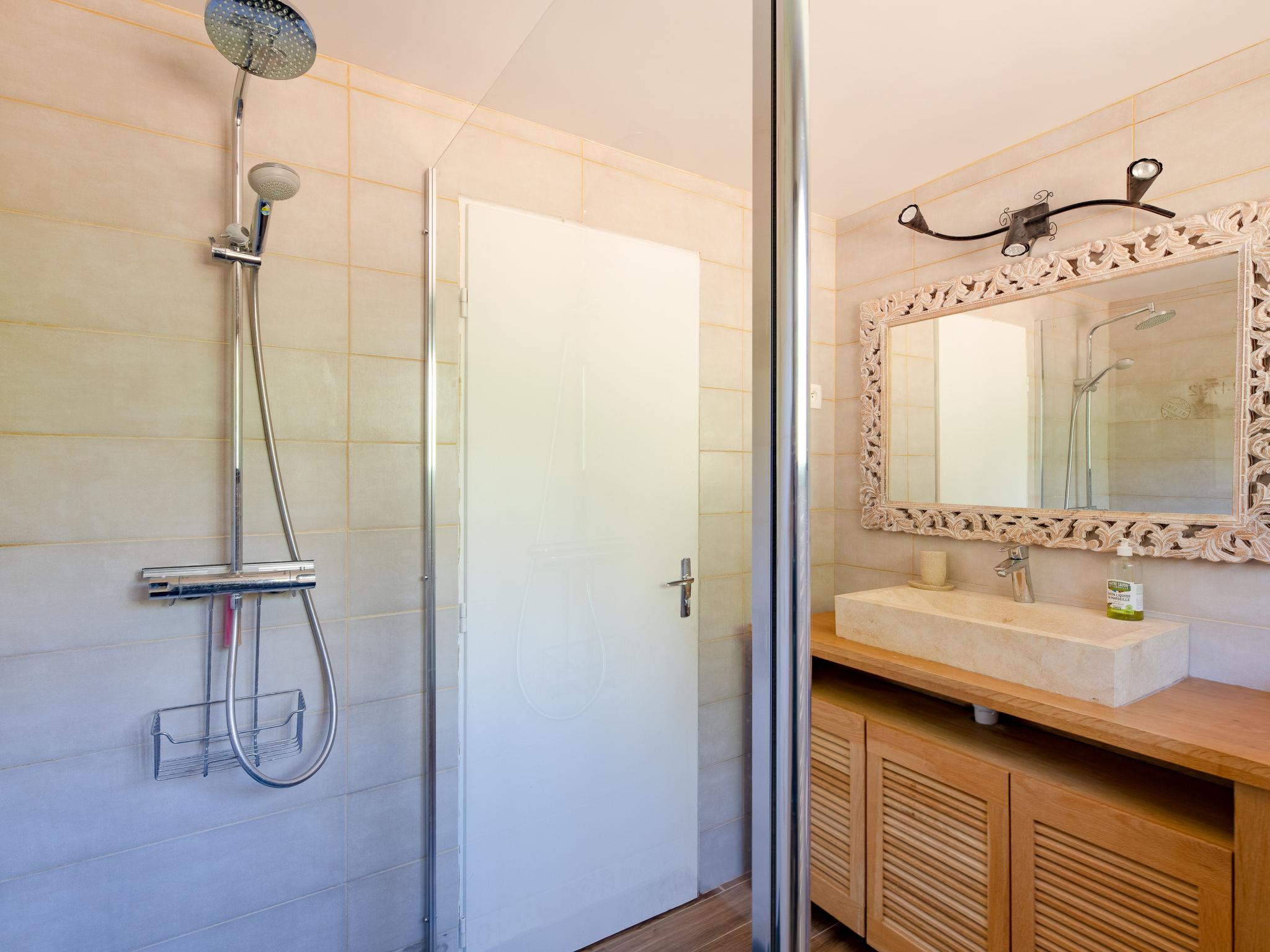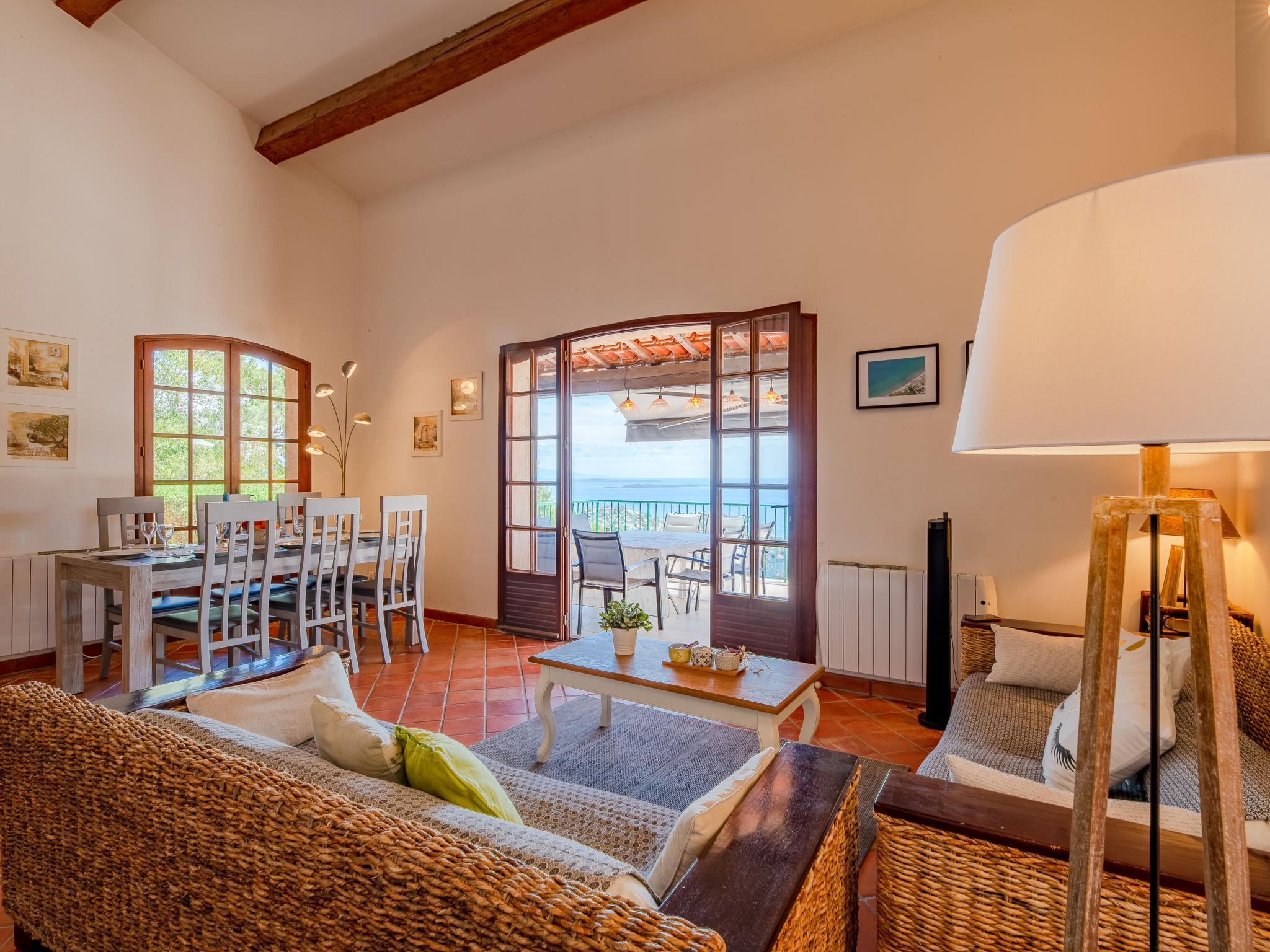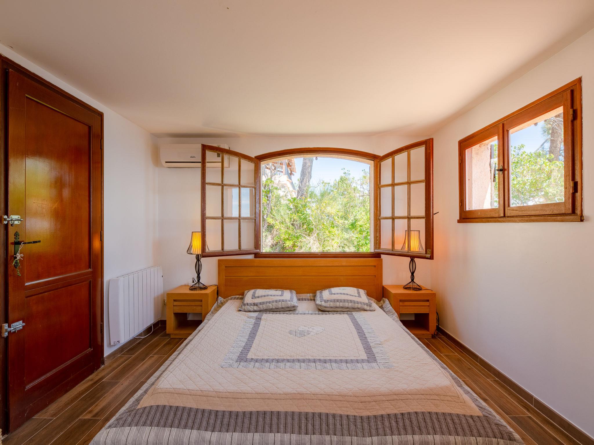 "Ponderosa", 4-room house 175 m2 on 2 levels. Renovated in 2014, comfortable furnishings: living/dining room with dining table and satellite TV. Exit to the terrace. 2 rooms, each room with 1 french bed (160 cm, length 200 cm), air conditioning. Exit to the terrace. Open kitchen (oven, dishwasher, 3 induction hot plates, toaster, kettle, microwave, freezer, electric coffee machine). Shower, shower/WC, sep. WC, double hand-basin. Upper floor: open gallery with 1 french bed (140 cm, length 190 cm). Exit to the terrace. 1 room with 2 beds (90 cm, length 200 cm), 1 french bed (160 cm, length 200 cm), air conditioning. Shower/WC. Electric heating. Terrace 60 m2 partly roofed, terrace 15 m2. Terrace furniture, electric barbecue, deck chairs. View of the sea. Facilities: washing machine, dryer. Internet (WiFi, free). Bed layout is flexible. There are more sleeping options available than the maximum number of people allowed which may, however, not be exceeded. Instead of an enclosed bedroom, some sleeping areas are located in an open-plan area (gallery, alcove, etc.).