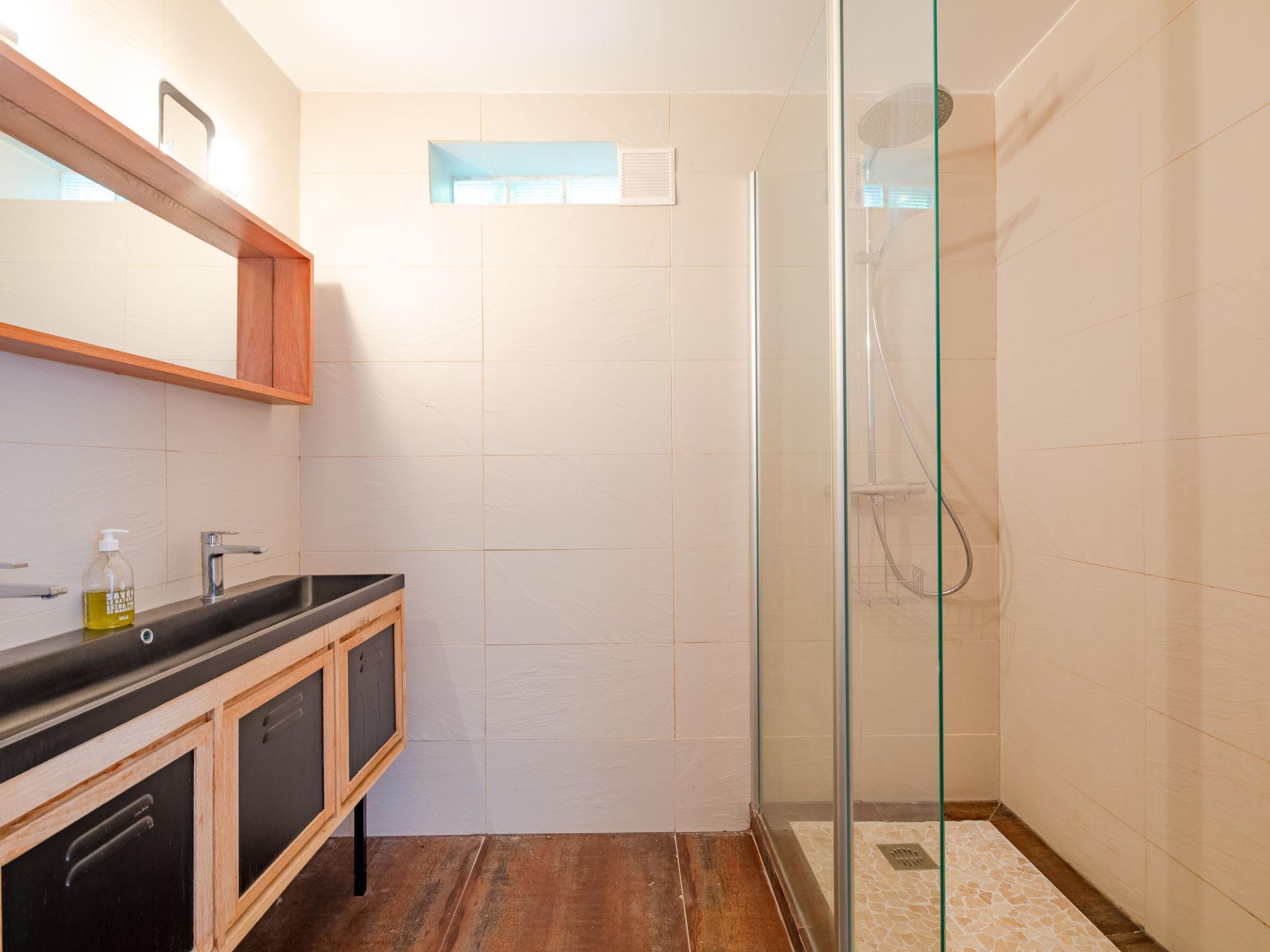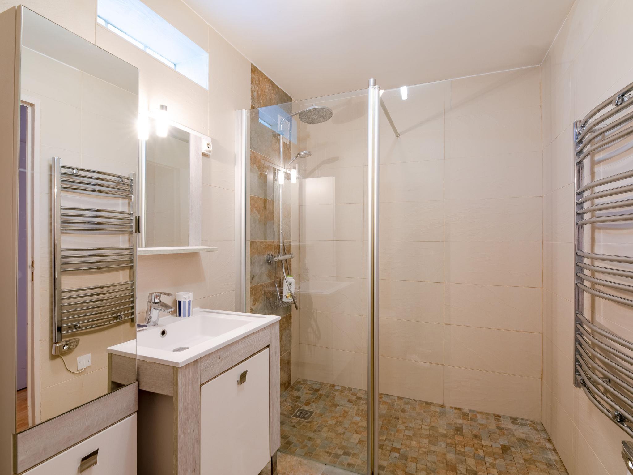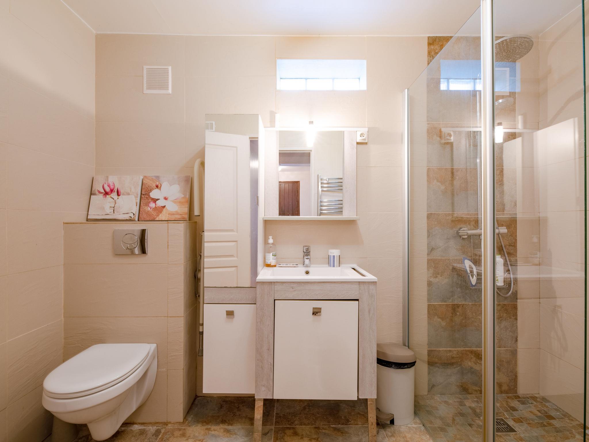 "Ponderosa", 4-room house 175 m2 on 2 levels. Renovated in 2014, comfortable furnishings: living/dining room with dining table and satellite TV. Exit to the terrace. 2 rooms, each room with 1 french bed (160 cm, length 200 cm), air conditioning. Exit to the terrace. Open kitchen (oven, dishwasher, 3 induction hot plates, toaster, kettle, microwave, freezer, electric coffee machine). Shower, shower/WC, sep. WC, double hand-basin. Upper floor: open gallery with 1 french bed (140 cm, length 190 cm). Exit to the terrace. 1 room with 2 beds (90 cm, length 200 cm), 1 french bed (160 cm, length 200 cm), air conditioning. Shower/WC. Electric heating. Terrace 60 m2 partly roofed, terrace 15 m2. Terrace furniture, electric barbecue, deck chairs. View of the sea. Facilities: washing machine, dryer. Internet (WiFi, free). Bed layout is flexible. There are more sleeping options available than the maximum number of people allowed which may, however, not be exceeded. Instead of an enclosed bedroom, some sleeping areas are located in an open-plan area (gallery, alcove, etc.).