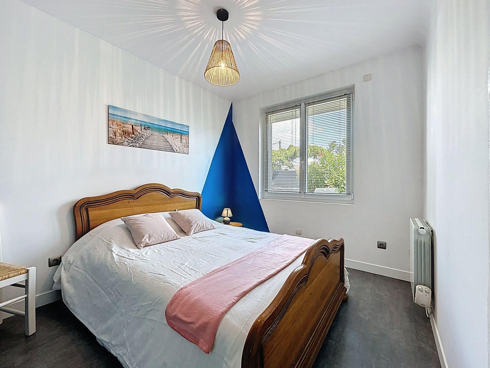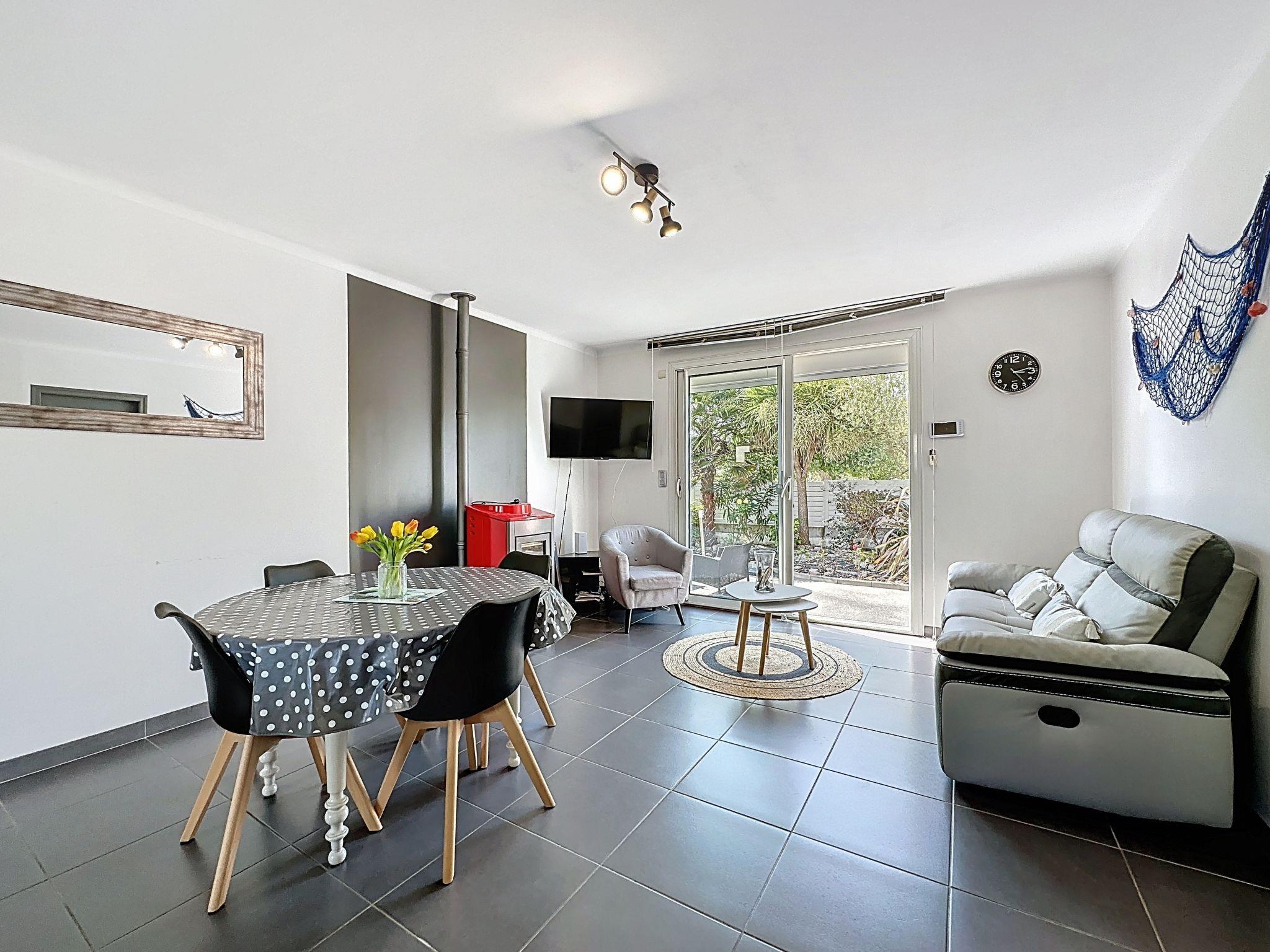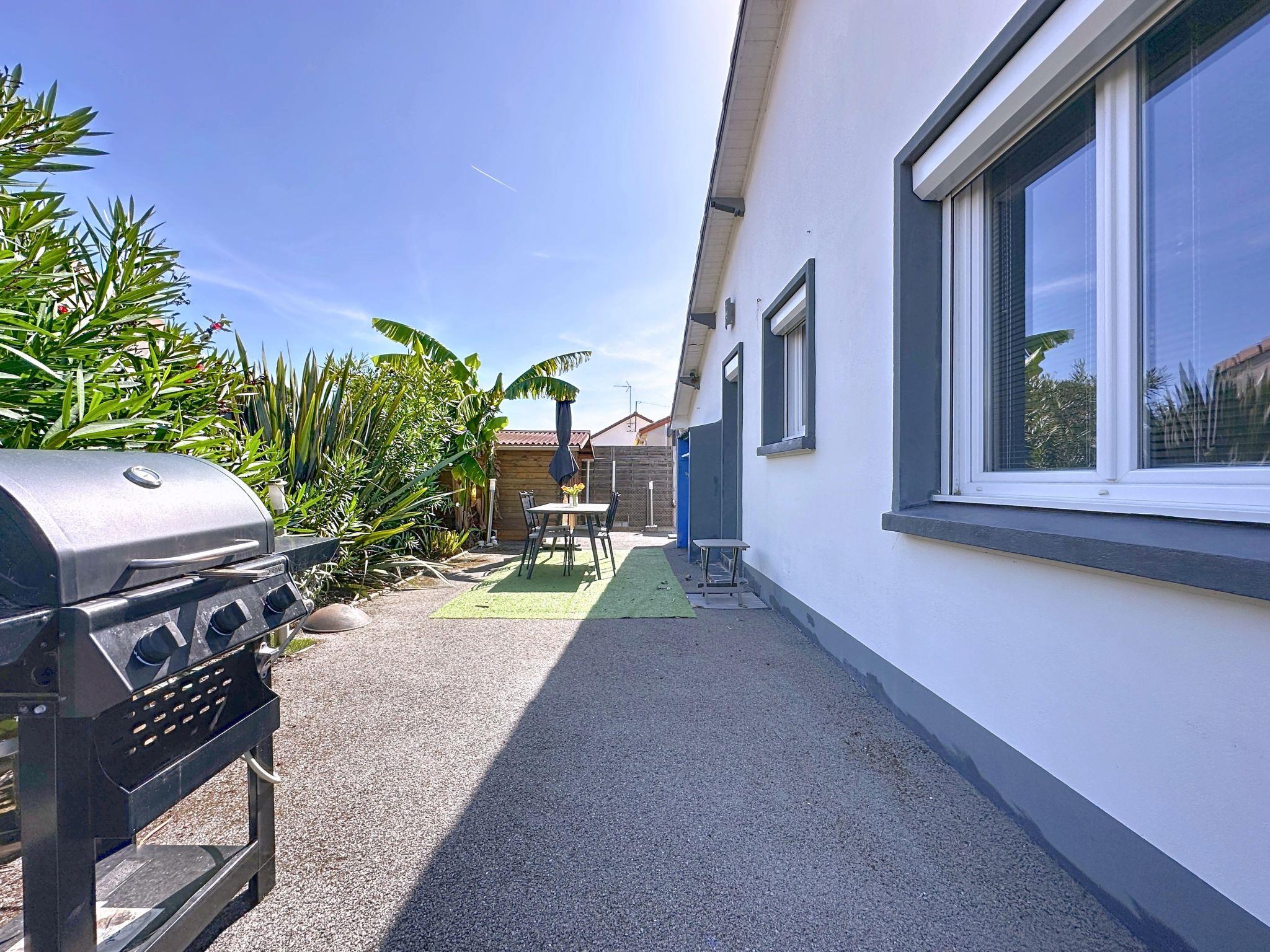 Single-family house "Apsara". In the centre of Tharon-Plage, excellent location: right in the centre but still quiet, 700 m from the sea, 700 m from the beach. Private: property 100 m2 (fenced), parking on the premises. Shop, grocery 400 m, supermarket 2.8 km, restaurant, bakery 400 m, 5 minute walk to the centre, bus stop "Pornic" 12 km, railway station "Pornic TGV" 12 km, sandy beach "La Source" 700 m. Tennis 2 km, riding stable 7 km. Nearby attractions: Biscuiterie Galette Saint-Michel 3 km, Faïencerie de Pornic 7 km, Saint-Brévin 13 km, Légendia Parc 22 km, Les Machines de l'Ile de Nantes 55 km, Ile de Noirmoutier 66 km. Well-known lakes can easily be reached: Lac de Saint-Viaud 21 km. Please note: suitable for families.