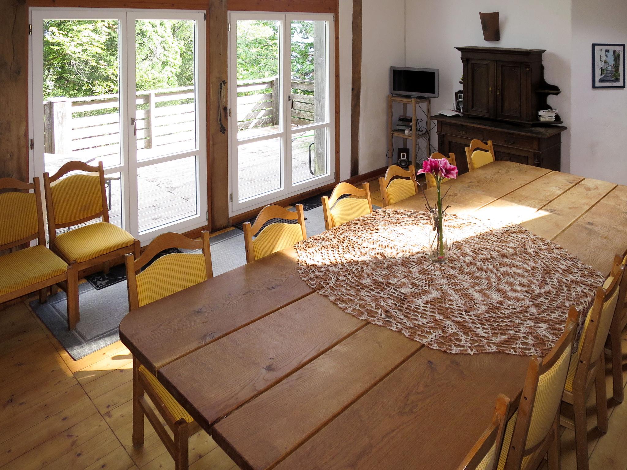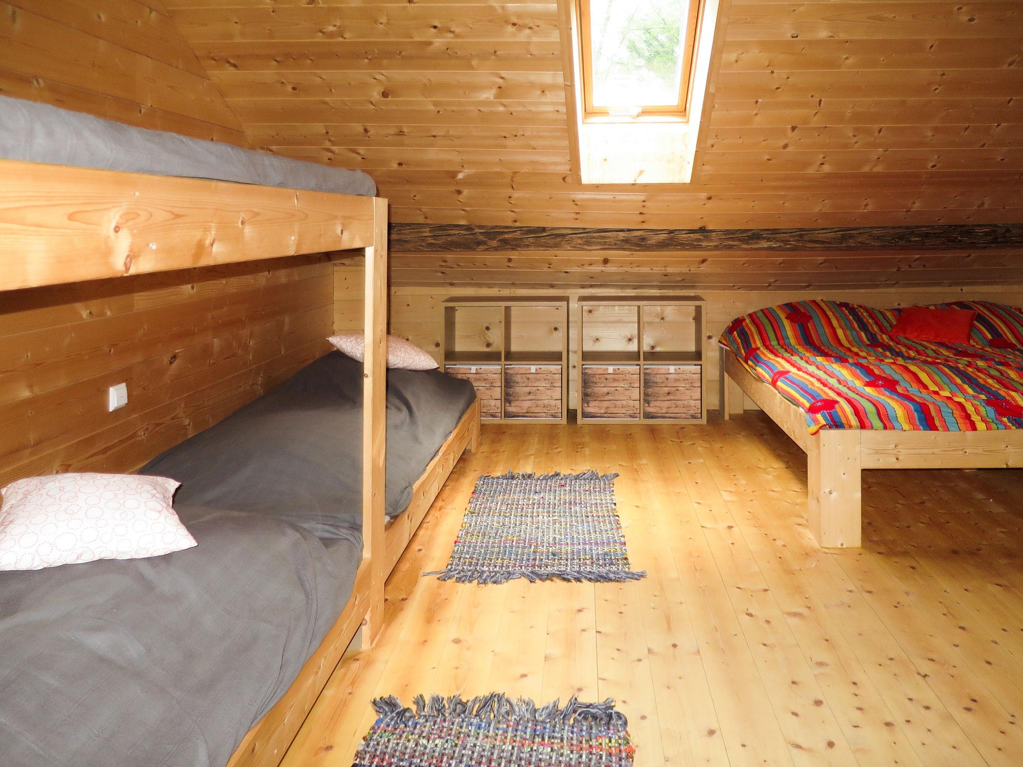 House "Escher", detached. 3.8 km from the centre of Thiéfosse, 42 km from the centre of Épinal, 110 km from the centre of Nancy, in a quiet position on a slope, 6 km from the lake, in the woods. Private: property 350 m2 with meadow. Patio, garden furniture, fireplace. In the house: sauna. Storeroom available. 200 m long bumpy, narrow motor access to the house (via unmade road). Parking (for 5 cars) on the premises. Supermarket 6 km, bus stop "Thiefosse Centre" 4 km. Groups of teenagers on request only. The tap water has no drinking water quality. Important note: Water supply from our own spring. In the event of extreme drought during the season, it may not be possible to guarantee an adequate water supply. In this case, the property will be cancelled by HHD free of charge and any amounts already paid will be refunded. The customer is not entitled to make any further claims in this regard.