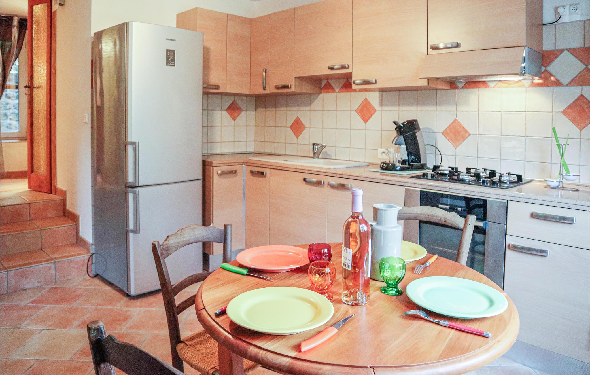 Denne attraktive beliggenhed nær floden inviterer dig til at slentre under kastanjetræerne og plukke blåbær og svampe i sæsonen. Thueyts er en dejlig landsby 23 km fra Aubenas. Det har en betagende udsigt over floden og er ideel til at udforske bemærkelsesværdige steder som Giant's Causeway, en basaltflod, eller Château de Blou fra det 12. århundrede med sine glastage. Fra landsbyen er der flere vidunderlige vandrestier, der er tilgængelige for alle, samt en via ferrata med tibetansk bro og zip-line over vandet. Der er også smukke strande på Ardèche til behagelig badning på varme dage - især den berømte Pont du Diable. Du kan også se frem til Vals-les-Bains med sine termiske bade og kasino. Du kan muligvis se gejseren, der dukker op hver 4. time i hjertet af en park.