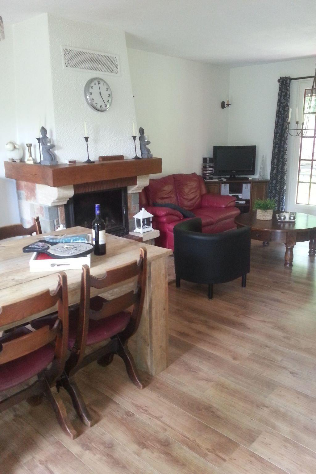 The entire garden is fenced, so children and pets stay on the property. There is a veranda with 2 rocking chairs, a terrace with BBQ, dining table with 6 chairs and a covered terrace with lounge sofa and another dining table with 6 chairs. There is also a sunbathing area by the pool and a poolside terrace with loungers. On the terrace is a barbecue which you can use. Many guests choose to have their evening meal on the terrace with the setting sun slowly disappearing behind the forest in the background. Furthermore, from the terrace you have a view of the heated swimming pool with its spacious sunbeds. For cooler days, there is a covered terrace with dining table and lounge sofa. Children who want to take another dip can do so quietly, while you keep an eye on them while enjoying a drink and a snack. On the other side of the house, the French doors open onto the veranda, from where you have a view of the gigantic garden (3000 m2).