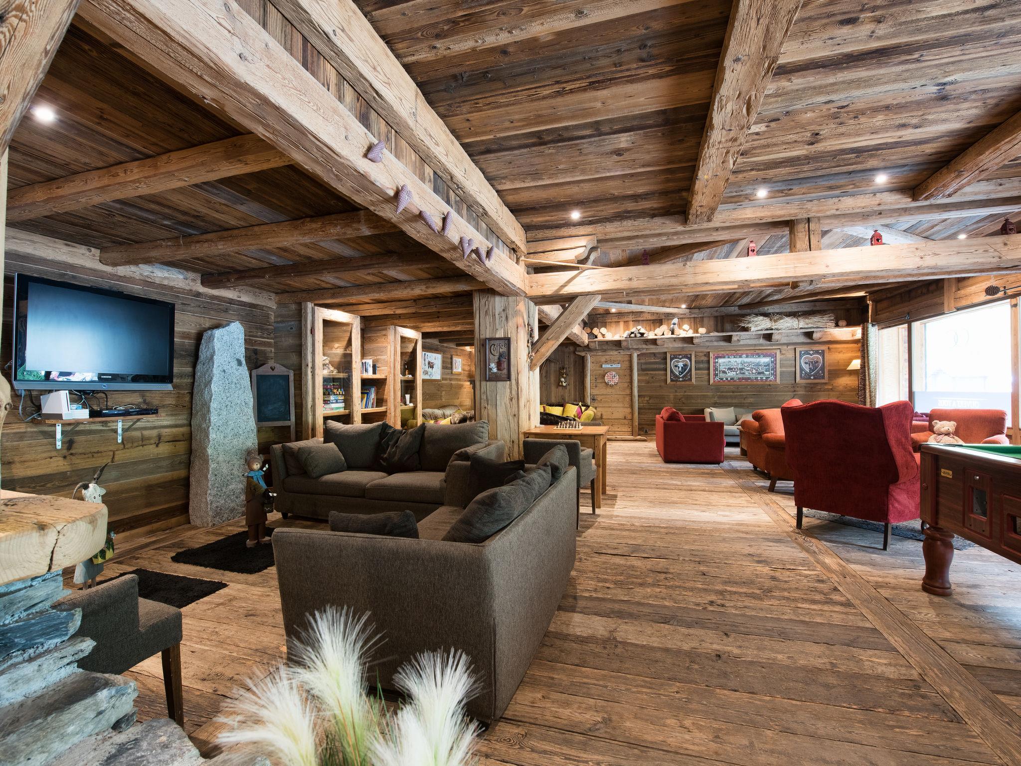 "Le Ferme du Val Claret 4*", 2-room apartment 35 to 45 m2. Comfortable and tasteful furnishings: living/sleeping room with 1 sofabed, 1 pull-out bed, dining table and satellite TV. Exit to the balcony. 1 room with 2 beds. Open kitchen (oven, dishwasher, 4 ceramic glass hob hotplates, toaster, kettle, electric coffee machine, steamer). Bath/WC. Heating. Balcony. Balcony furniture. Beautiful view of the mountains. Facilities: telephone, hair dryer. Internet (WiFi, free). Please note: maximum 1 pet/ dog allowed. Smoke alarm, fire extinguisher.