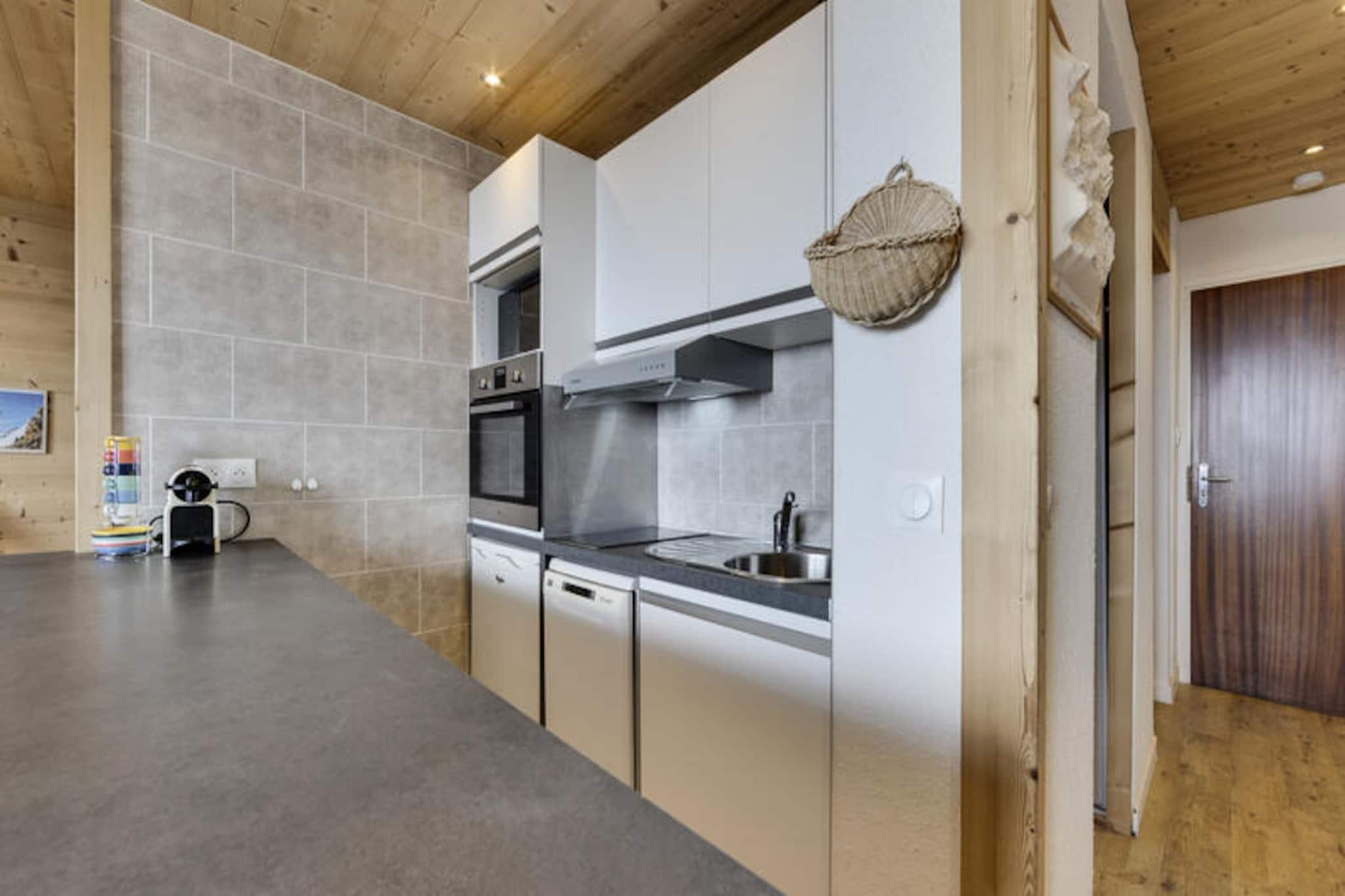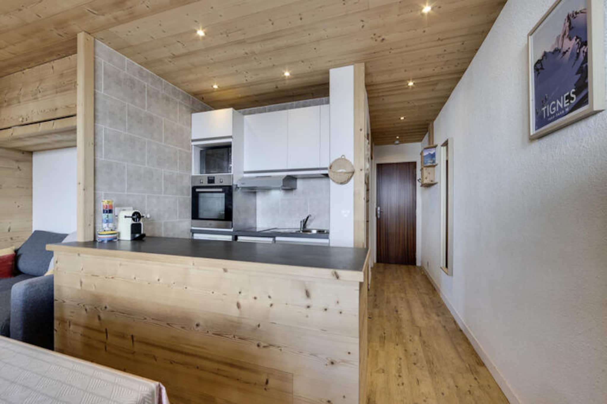 Højt oppe i de majestætiske franske alper, hvor luften er frisk og landskaberne ærefrygtindgydende, ligger Génépi-residensen i Tignes Val Claret. Dette charmerende alpine tilflugtssted tilbyder en perfekt blanding af bekvemmelighed og komfort, hvilket gør det til et ideelt valg for dem, der søger en mindeværdig bjergferie. Forestil dig at træde ud på din vestvendte balkon, nyde de gyldne nuancer af den nedgående sol over de snedækkede tinder og føle naturens ro omslutte dig. Uanset om du er her for vintersport eller sommereventyr, lover denne beliggenhed en uforglemmelig oplevelse. \n\nIndenfor er den 43 m² store lejlighed omhyggeligt designet til at rumme op til seks gæster. Det åbne køkken er udstyret med moderne apparater, herunder ovn, mikrobølgeovn og opvaskemaskine, hvilket gør madlavning til en leg. Stuen har en hyggelig spiseplads, en sovesofa og et fjernsyn, perfekt til at slappe af efter en dag med udforskning. Soveværelset har en dobbeltseng og en køjeseng til to enkeltpersoner, hvilket sikrer afslappende nætter for alle. Et separat badeværelse og toilet bidrager til bekvemmeligheden, mens et skiskab i stueetagen holder dit udstyr sikkert og tilgængeligt. Bemærk venligst, at dette er en ikke-ryger ejendom, og kæledyr er ikke tilladt.\n\nGénépi-residensen er ideelt beliggende kun få skridt fra snefronten og skiskolens mødesteder, med butikker såsom et minimarked, bageri og skiudlejning mindre end 100 meter væk. Om vinteren kan du nyde fordelagtige priser på liftkort til Tignes og Val d'Isère, mens sommeren bringer My Tignes-kortet, der låser op for en verden af ??aktiviteter fra vandreture til vandsport. Parkering er reguleret om vinteren, så sørg for at reservere en overdækket plads på forhånd.\n\nUanset om du snor dig gennem uberørte pister, udforsker alpine stier eller blot nyder den betagende natur, tilbyder Génépi-residensen den perfekte base for dine eventyr. Lad magien i Tignes Val Claret fange dig og skabe minder for livet.
