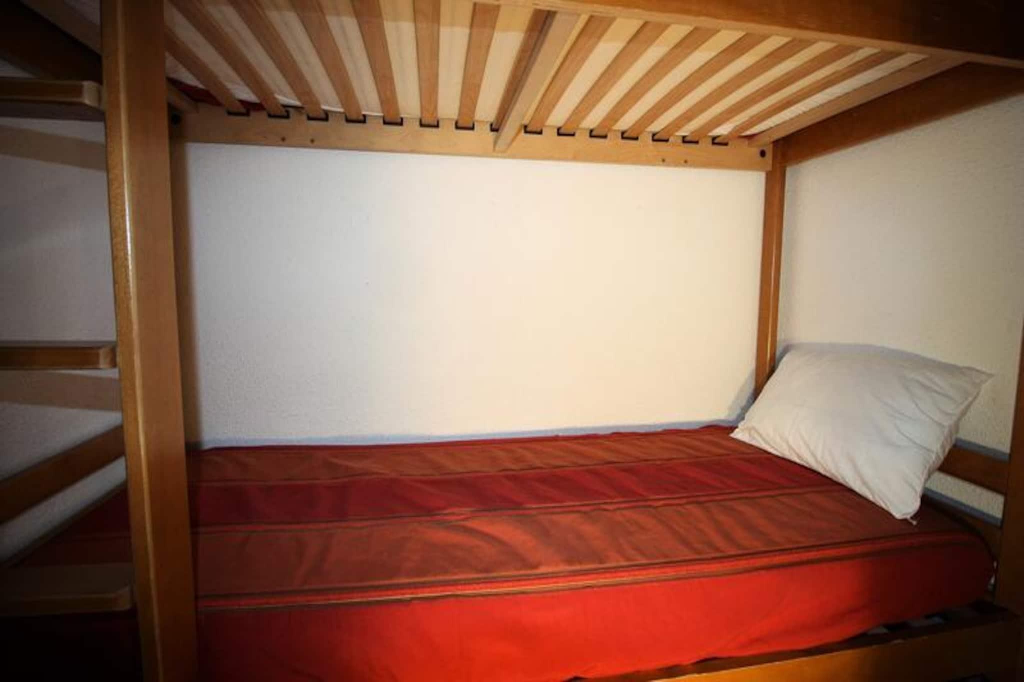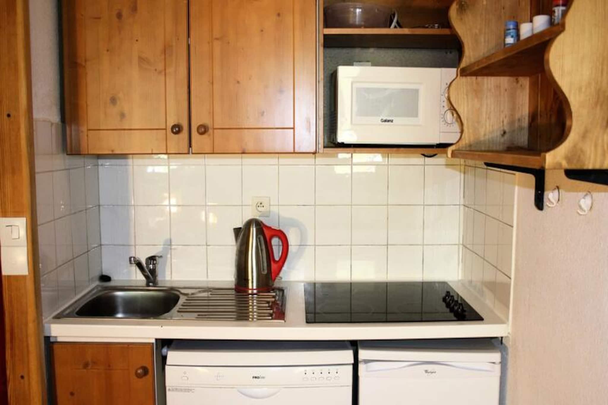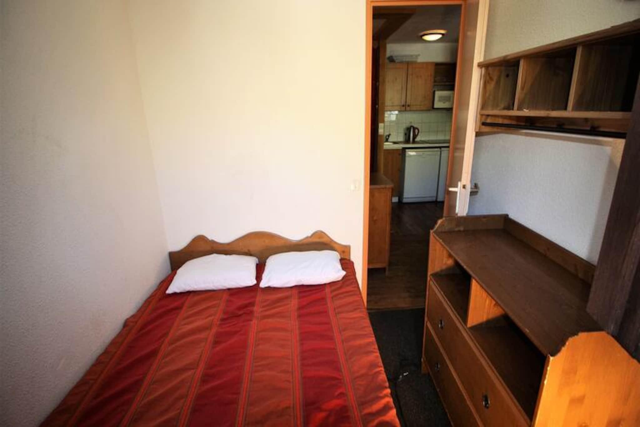 I hjertet af de betagende franske alper tilbyder denne charmerende lejlighed i LE ROND POINT DES PISTES-residensen et hyggeligt tilflugtssted for både skientusiaster og naturelskere. Med sin sydvestvendte balkon kan du nyde den alpine sol og den fantastiske udsigt over de omkringliggende tinder, hvilket skaber den perfekte kulisse for din bjergferie. Uanset om du er her for vintersport eller sommervandreture, lover denne ejendom en uforglemmelig oplevelse. \n\nLejligheden har komfortabel plads til op til seks gæster på tværs af sin gennemtænkte planløsning. En sovealkove med køjesenge, et privat soveværelse med en dobbeltseng og en stue med en udtræksseng sikrer rigelig plads til familier eller grupper. Tekøkkenet er udstyret med moderne bekvemmeligheder, herunder keramiske kogeplader, mikrobølgeovn, køleskab og opvaskemaskine, hvilket gør madlavning til en leg. Efter en dag med eventyr kan du slappe af i den hyggelige opholdsstue med fladskærms-tv eller slappe af på badeværelset med badekar og håndvask. Yderligere bekvemmeligheder inkluderer et separat toilet og private skibokse til problemfri opbevaring.\n\nBeliggende kun få skridt fra pisterne og skilifterne tilbyder boligen uovertruffen adgang til det berømte Paradiski-område. I nærheden finder du et udvalg af butikker, herunder et bageri, supermarked, barer og restauranter, alt sammen inden for 100 meter. Den franske skiskole ligger også bekvemt tæt på, hvilket gør denne beliggenhed ideel for både begyndere og erfarne skiløbere. Om sommeren forvandles området til et paradis for vandrere og cyklister med stier, der fremviser regionens naturlige skønhed.\n\nUanset om du søger spændende alpine eventyr eller fredelige øjeblikke omgivet af majestætiske landskaber, er denne lejlighed din port til det bedste af de franske alper. Book nu og skab minder, der vil vare hele livet.