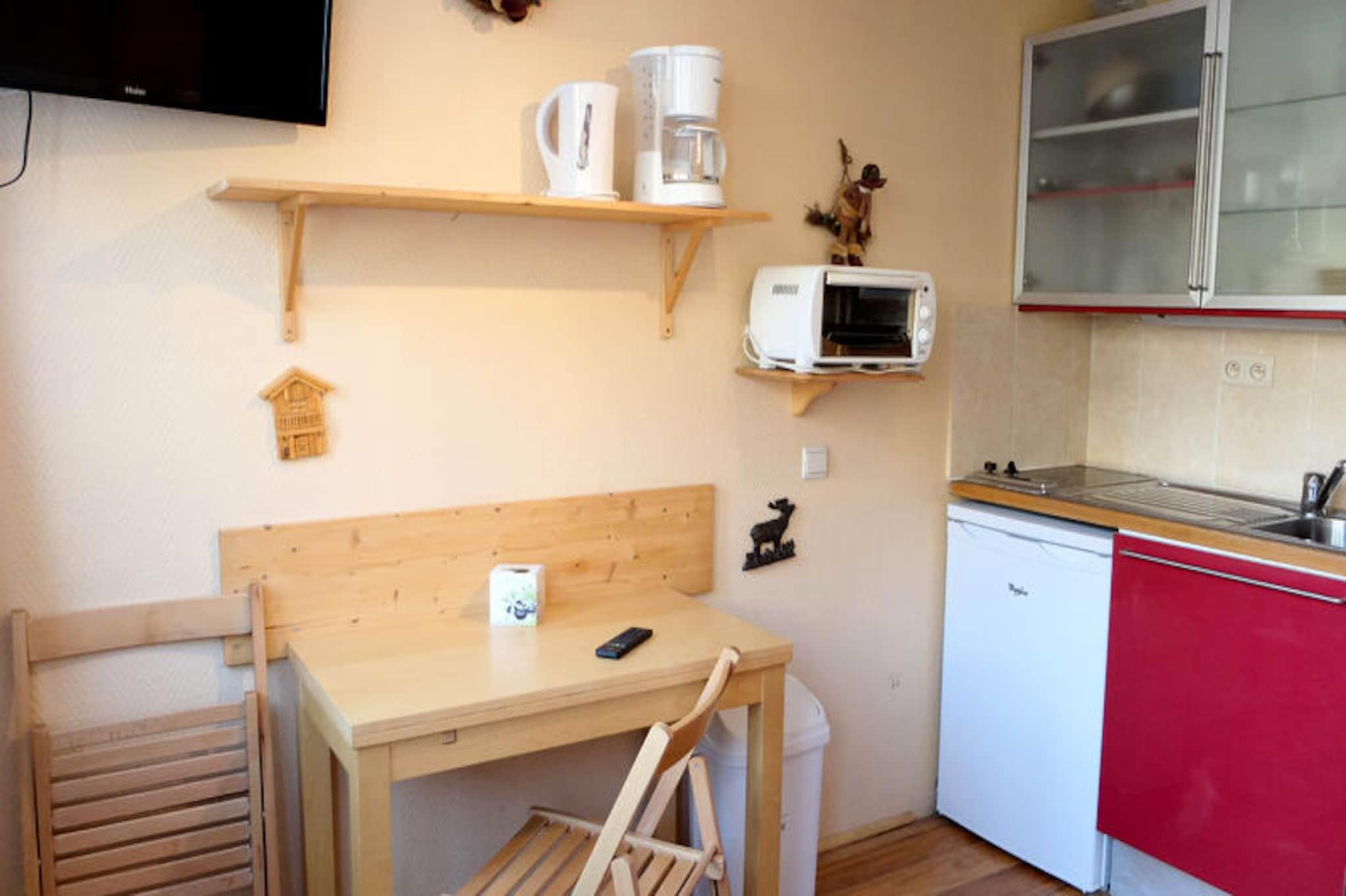 I hjertet af det pulserende Tignes Le Lac tilbyder denne hyggelige studiolejlighed den perfekte base for en uforglemmelig alpin ferie. Beliggende i den berømte 'Le Palafour'-residens, befinder du dig kun få skridt fra skiløjperne, skiskolens afgangssteder og en række lokale faciliteter. Uanset om du er her for at grave dig gennem uberørt sne om vinteren eller udforske de betagende landskaber om sommeren, placerer denne beliggenhed dig i centrum af det hele. \n\nDet kompakte, men gennemtænkte design, 16 m² store studiolejlighed har plads til op til to gæster. Entréen har en enkeltseng, mens opholdsstuen tilbyder en komfortabel sovesofa, der kan laves om til en dobbeltseng. Et veludstyret tekøkken med elektrisk kogeplade, ovn og køleskab giver dig mulighed for nemt at tilberede måltider, og brusebadet med toilet sikrer bekvemmelighed. Residensen tilbyder også et skiskab i stueetagen, hvilket gør det nemt at skifte fra dit hyggelige tilflugtssted til pisterne. \n\nUd over lejligheden fyldes Tignes Le Lac med aktiviteter og attraktioner. Om vinteren kan du nyde direkte adgang til skisportsstedet Tignes-Val d’Isère i verdensklasse, der tilbyder uendelige pister for alle niveauer. Om sommeren låser My Tignes-kortet op for et væld af udendørseventyr, lige fra mountainbiking til paddleboarding på søen. I nærheden finder du en swimmingpool, butikker og restauranter, der sikrer, at alle dine behov bliver opfyldt. \n\nUanset om du er tiltrukket af spændingen ved skiløb, roen i de alpine somre eller charmen ved en livlig bjerglandsby, tilbyder denne bolig et indbydende og bekvemt hjem væk fra hjemmet. Book dit ophold i dag og fordyb dig i Tignes' magi.