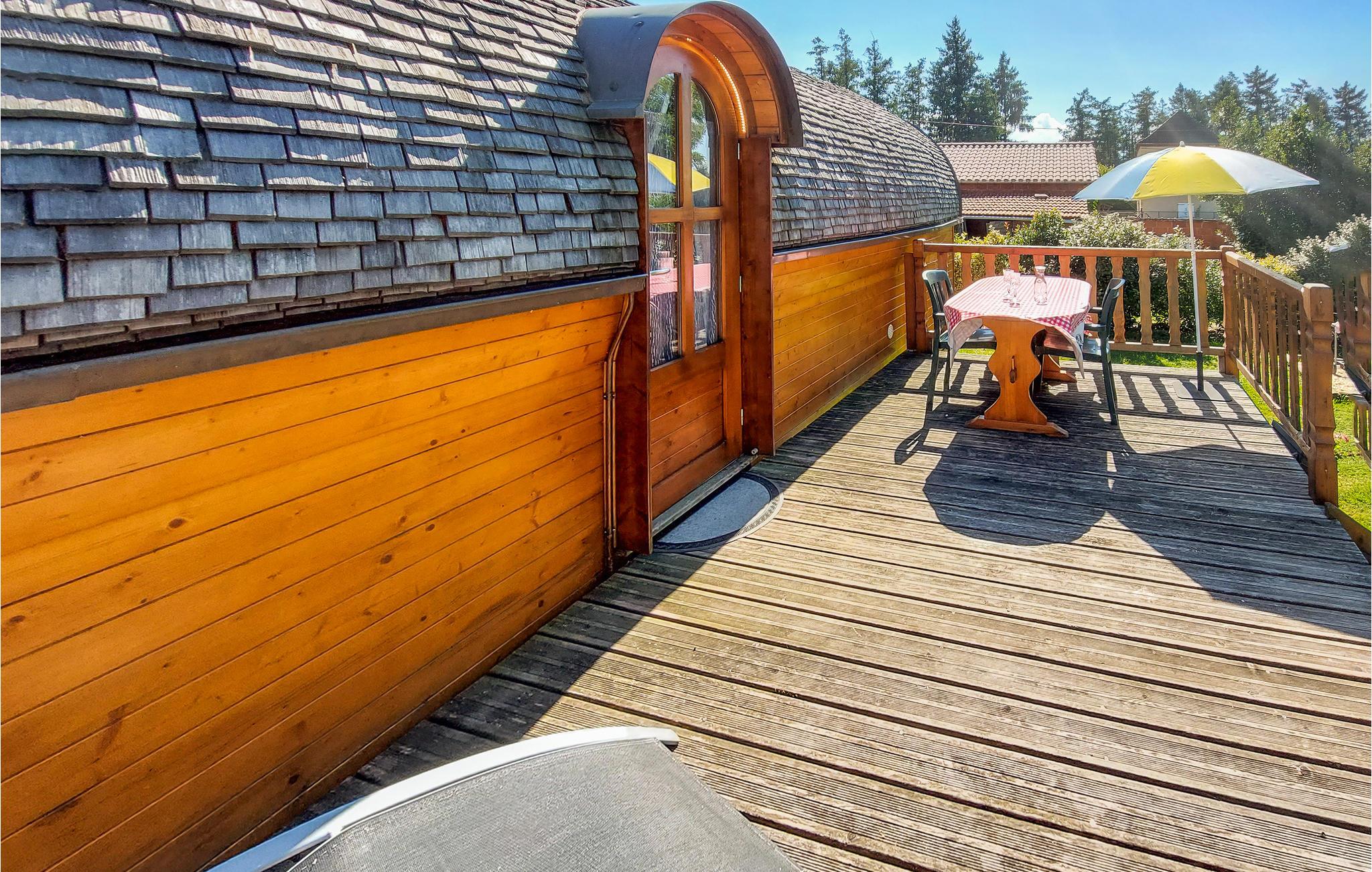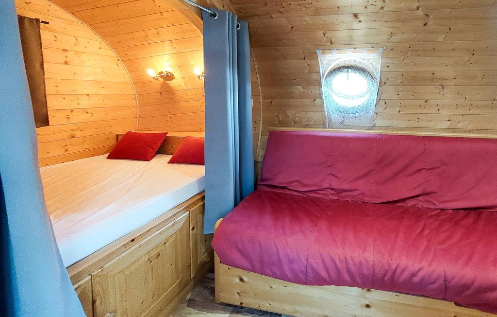 Dette hyggelige feriehus ligger i idylliske, landlige omgivelser. I det indre af det tøndeformede hus finder I et komfortabelt indrettet anlæg med skønne detaljer som de flotte vinduer eller den hyggelige alkove, der skaber en meget stemningsfuld ramme om jeres ferie. At bo her er en oplevelse i sig selv!