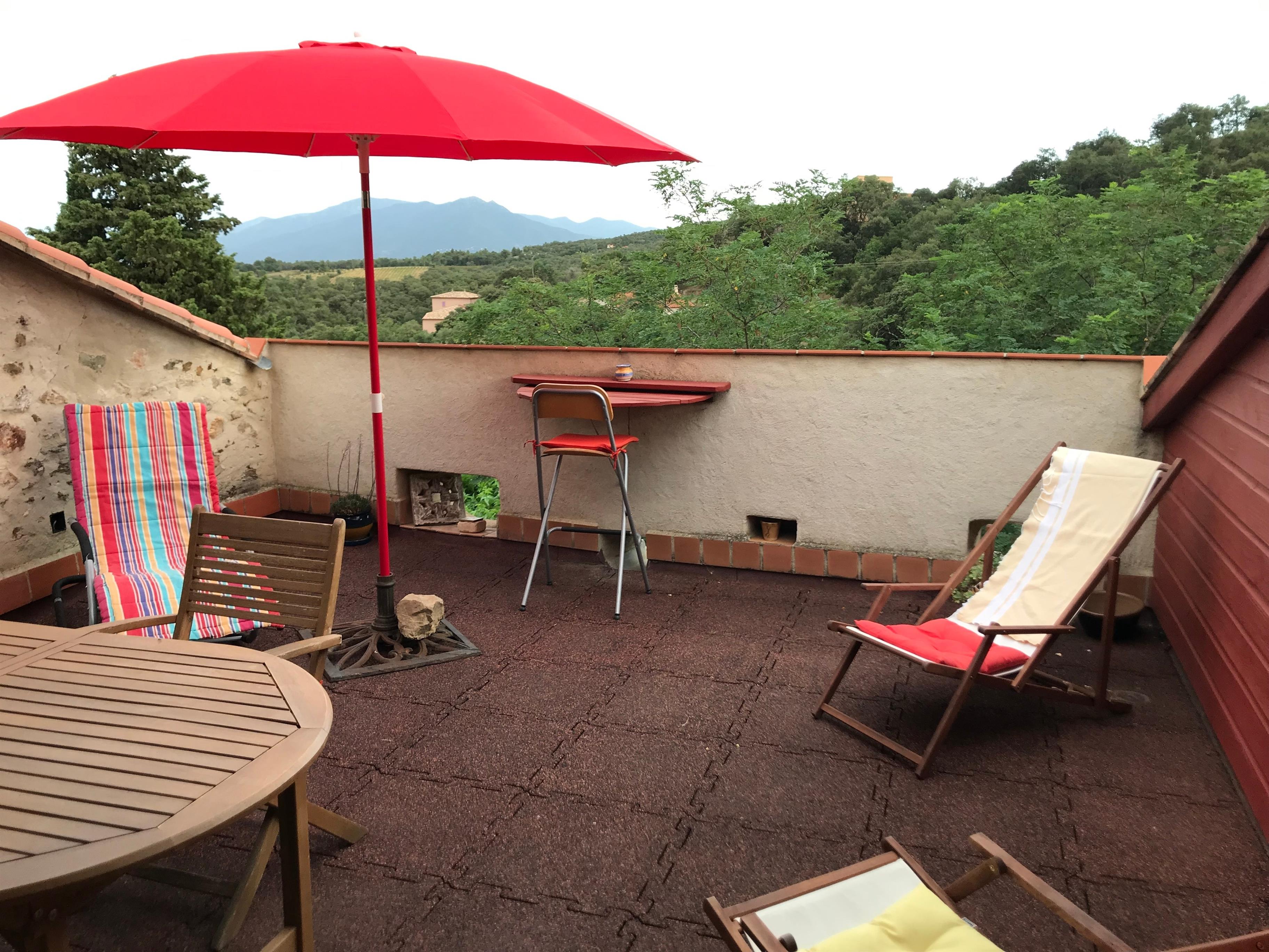Kehren Sie nach einem Urlaubstag am Strand, der Besichtigung eines romanischen Klosters oder einem Museumsbesuch zurück ins zauberhafte Tordères, einer kleinen idyllischen Insel der Ruhe, im Hinterland der Côte Vermeille (Purpurküste), fern vom Touristenrummel. Sie finden das malerisch gelegene, ruhige und romantische Dörfchen zwischen Pyrenäen und Mittelmeer, im Wechsel von Weinfeldern, Mandel- und Olivenbäumen, Pfirsich- und Kirschplantagen, Korkeichenwäldern und südlicher Vegetation. Nach Süden reicht der Blick weit über das von Grün durchzogene Tordères hinaus über die Ebene bis zum Mittelmeer, südöstlich zu den Grenzbergen "les Albères" und weiter zum alles beherrschenden 2785 m hohen Pyrenäengipfel dem Canigou, "heiliger Berg" der Katalanen.