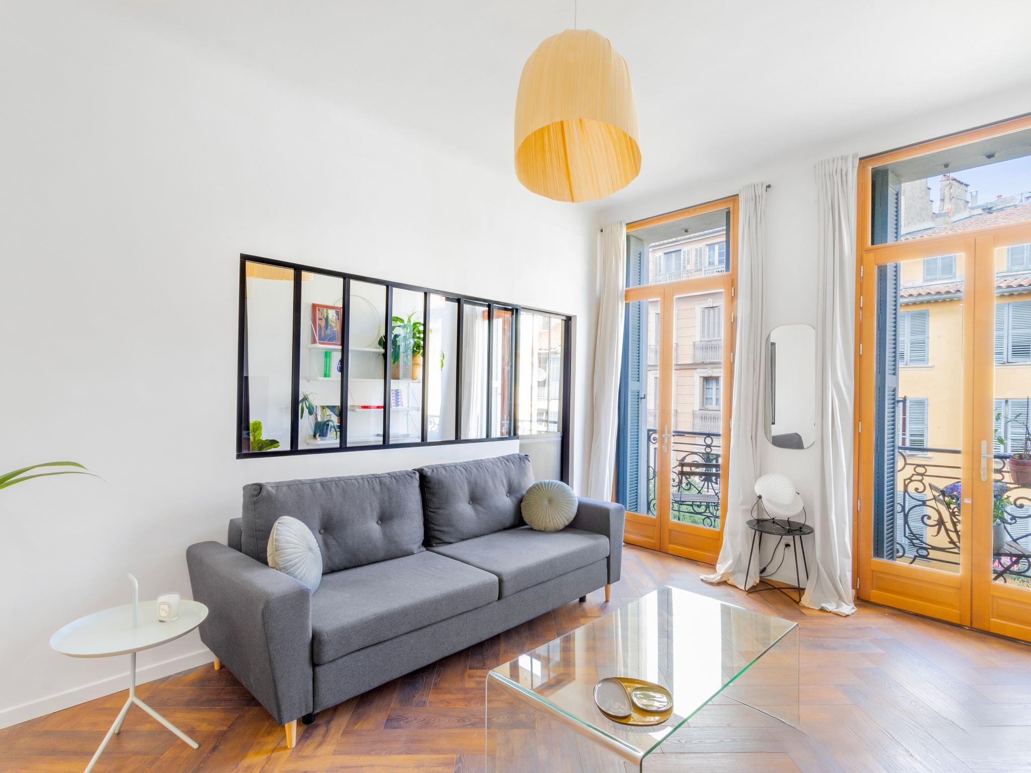 "Lafayette", 3-room apartment 75 m2 on 3rd floor. Living/dining room with 1 sofabed (140 cm, length 190 cm), dining table and TV (flat screen), air conditioning. 1 room with 1 french bed (160 cm, length 200 cm). 1 small room with 1 double sofabed (140 cm, length 190 cm). Open kitchen (oven, dishwasher, 3 induction hot plates, toaster, kettle, microwave, electric coffee machine). Shower, sep. WC. Electric heating. 2 small balconies. Facilities: washing machine, dryer, iron. Internet (WiFi, free). Please note: non-smokers only, no parking. Smoke alarm. Offer by a private individual according to Art. 155, IV of CGI.